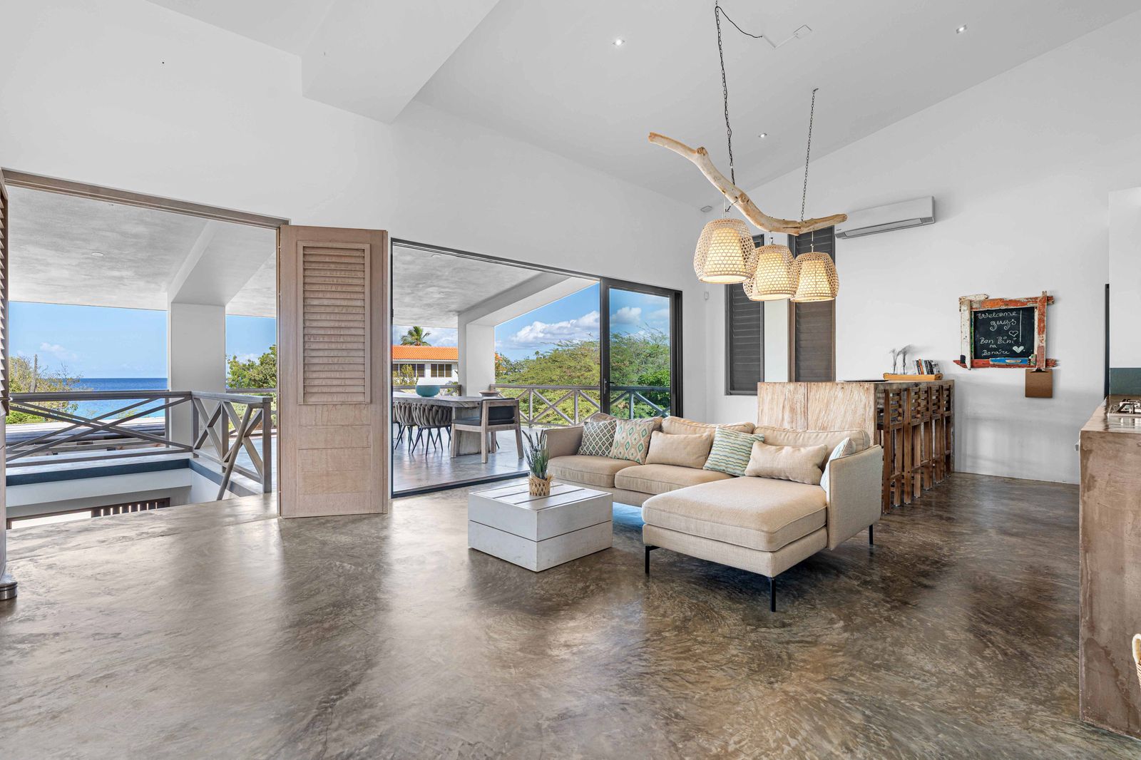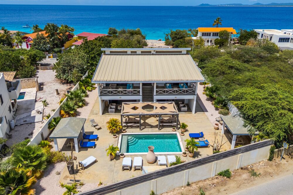 The upper floor features a luxurious 3-bedroom penthouse with spectacular ocean views and a bright, open layout. A perfect place to relax and soak up the best of Bonaire.