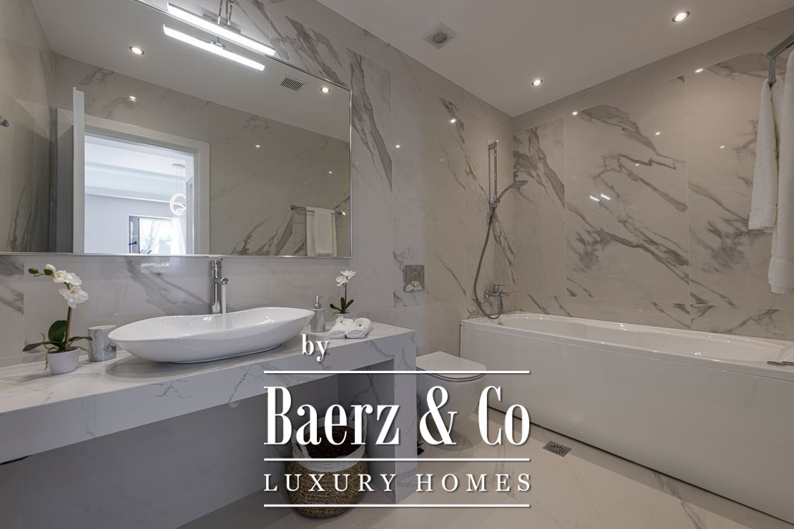This impressive newly built villa of 270 m2 is located inside a privileged 4.500 m2 plot overlooking the sea and the cosmopolitan Porto Cheli. Built on one level, this unique villa consists of a bright elegant living room with a fireplace & spectacular views of Porto Cheli Town, a nicely designed dining area, a charming fully equipped kitchen, a spacious master bedroom with a king size bed, en suite bathroom with a hot tub, a cloakroom with plenty of wardrobe space and a large veranda facing the pool offering magnificent sea vistas. The villa also offers two more bedrooms with double beds, en suite bathrooms and patios, one bedroom with twin beds, en suite bathroom and a patio, an independent guest house with a private entrance with a double bed, en suite bathroom and a patio, a storage room, a laundry room and a guest wc. It is also worth mentioning that the villa is equipped with air-conditioning units, an alarm system & satellite TV. Moving on to the extensive outside space, you will find two outdoor dining areas, a lounge area, a sparkling private infinity pool with plenty of sunbeds, creating a fabulous atmosphere, a pool bar,