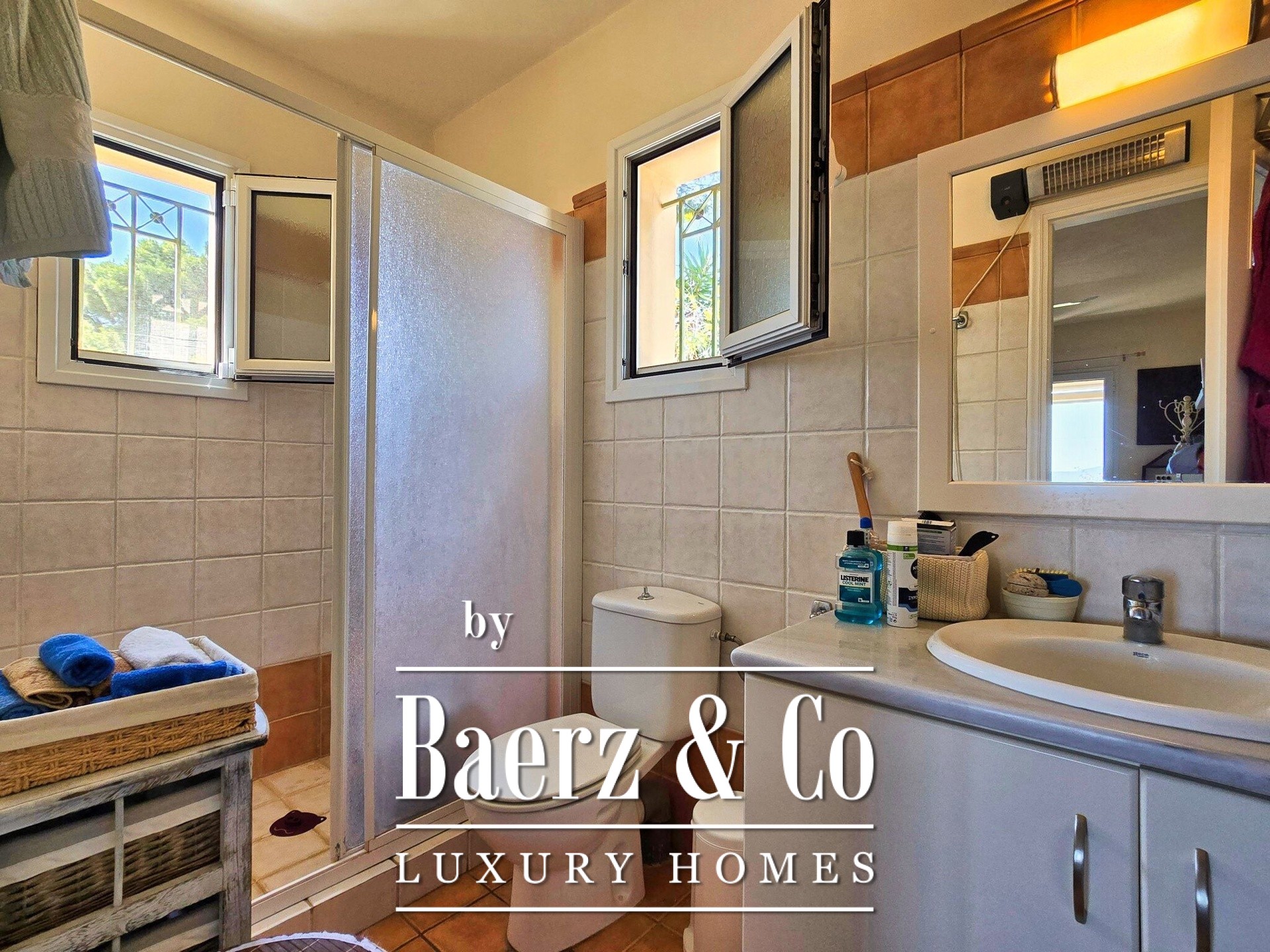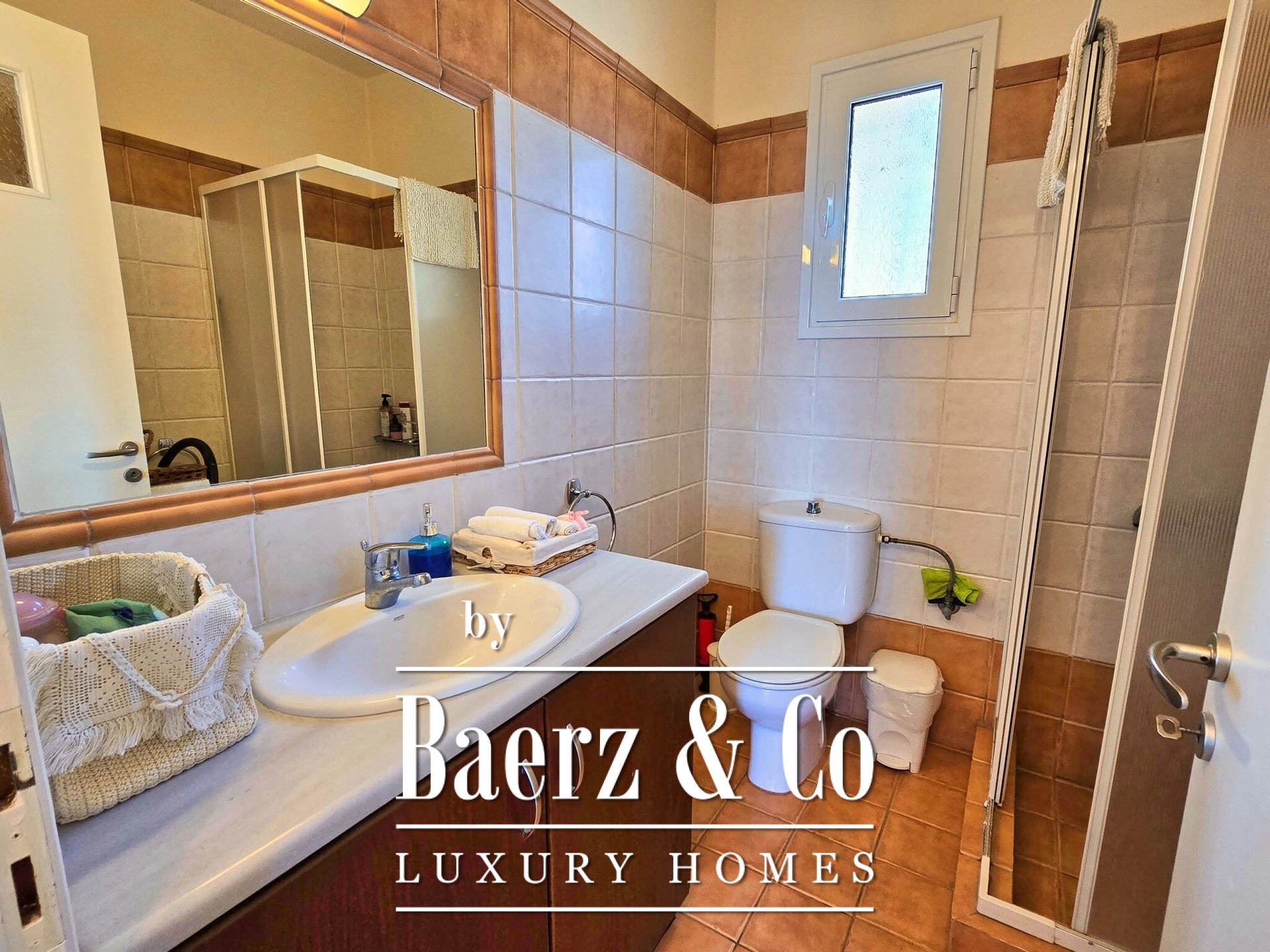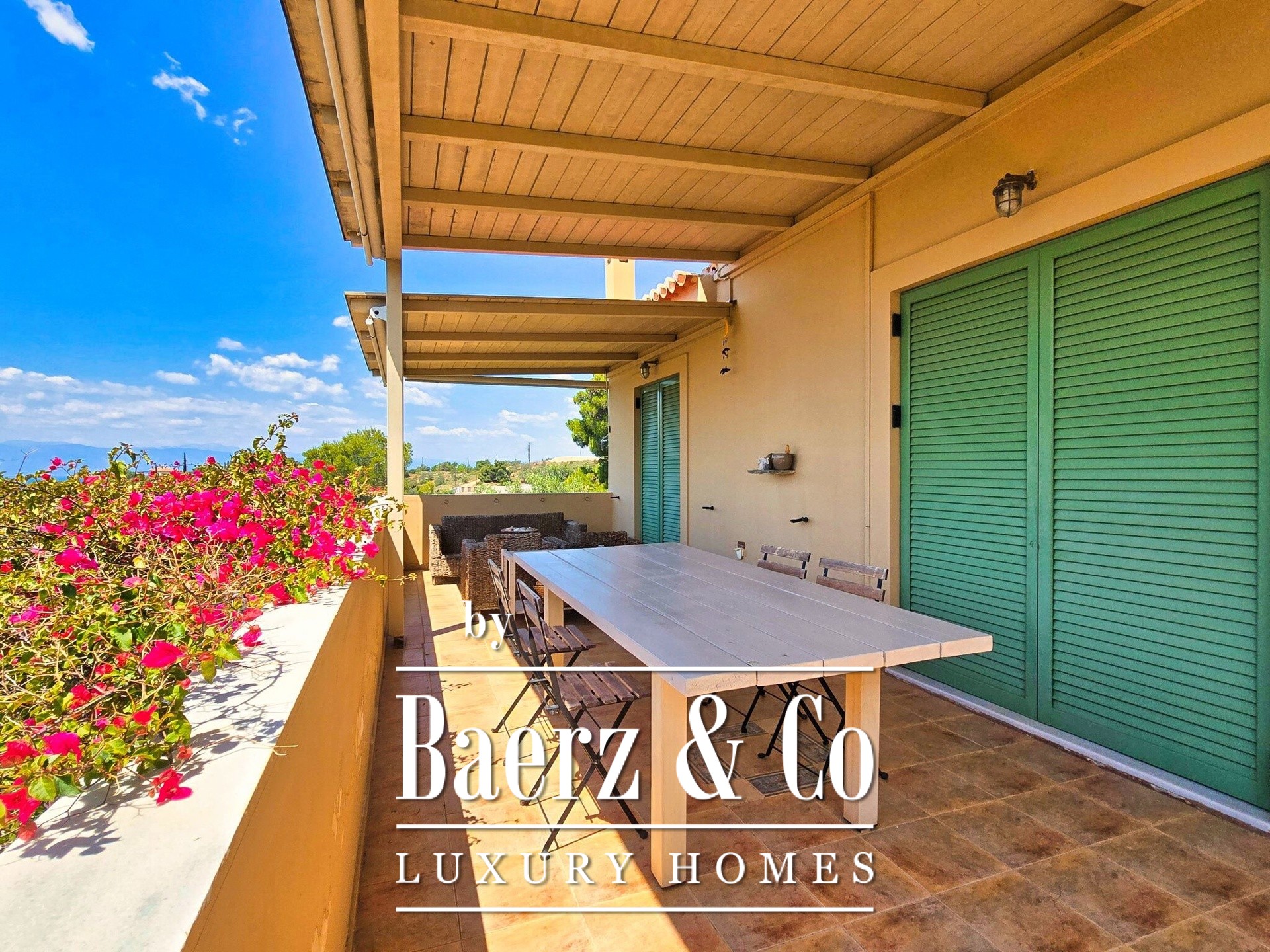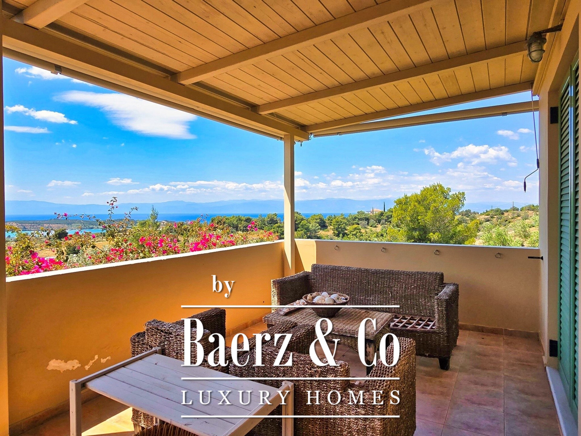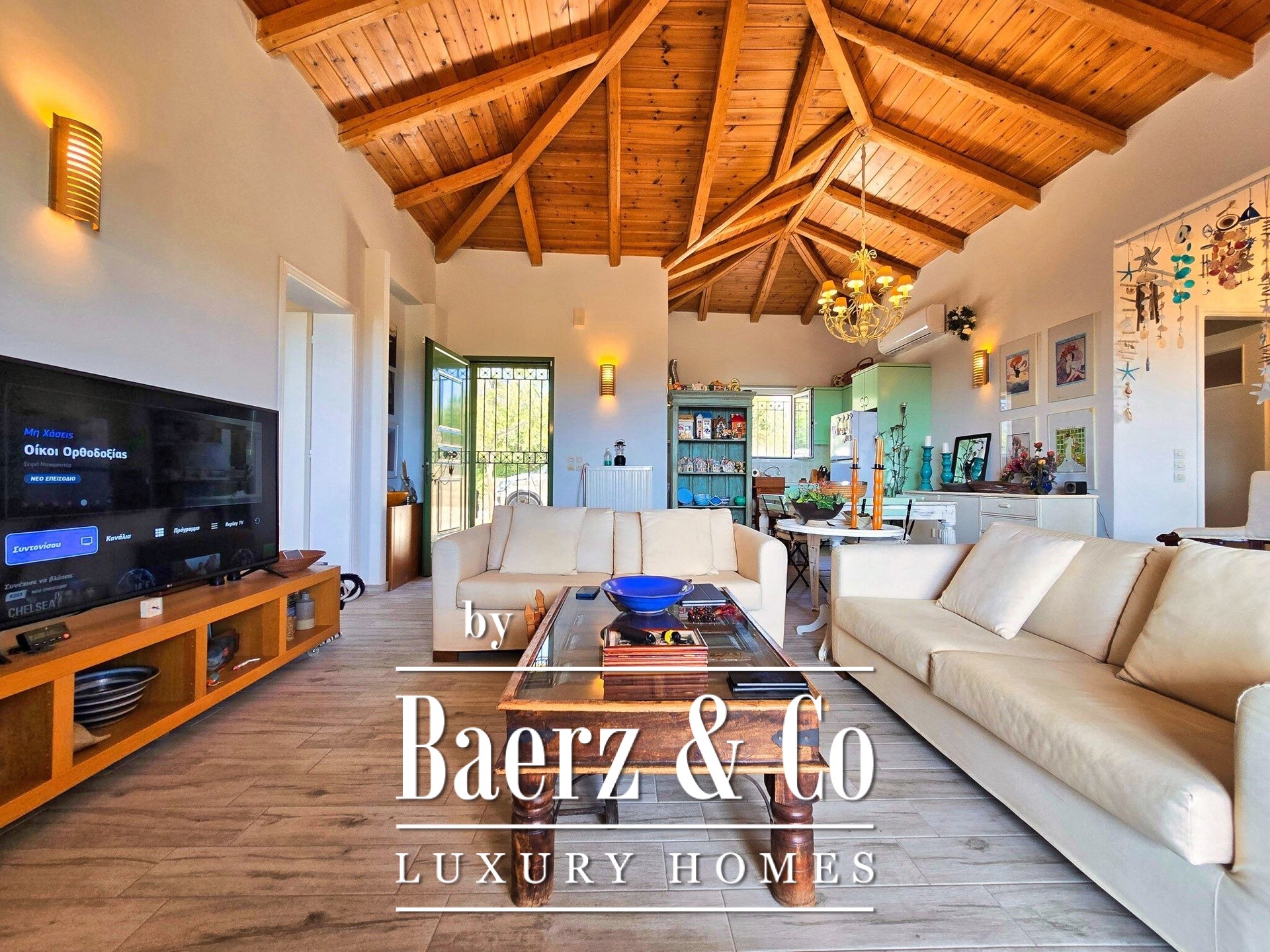 In Ververonda, in one of the most beautiful and quiet areas of Porto Heli, with unobstructed panoramic views of the sea, a ground-floor detached house with a total area of 121.03 sq m is available for sale, within a demarcated plot of 1,500 sq m.