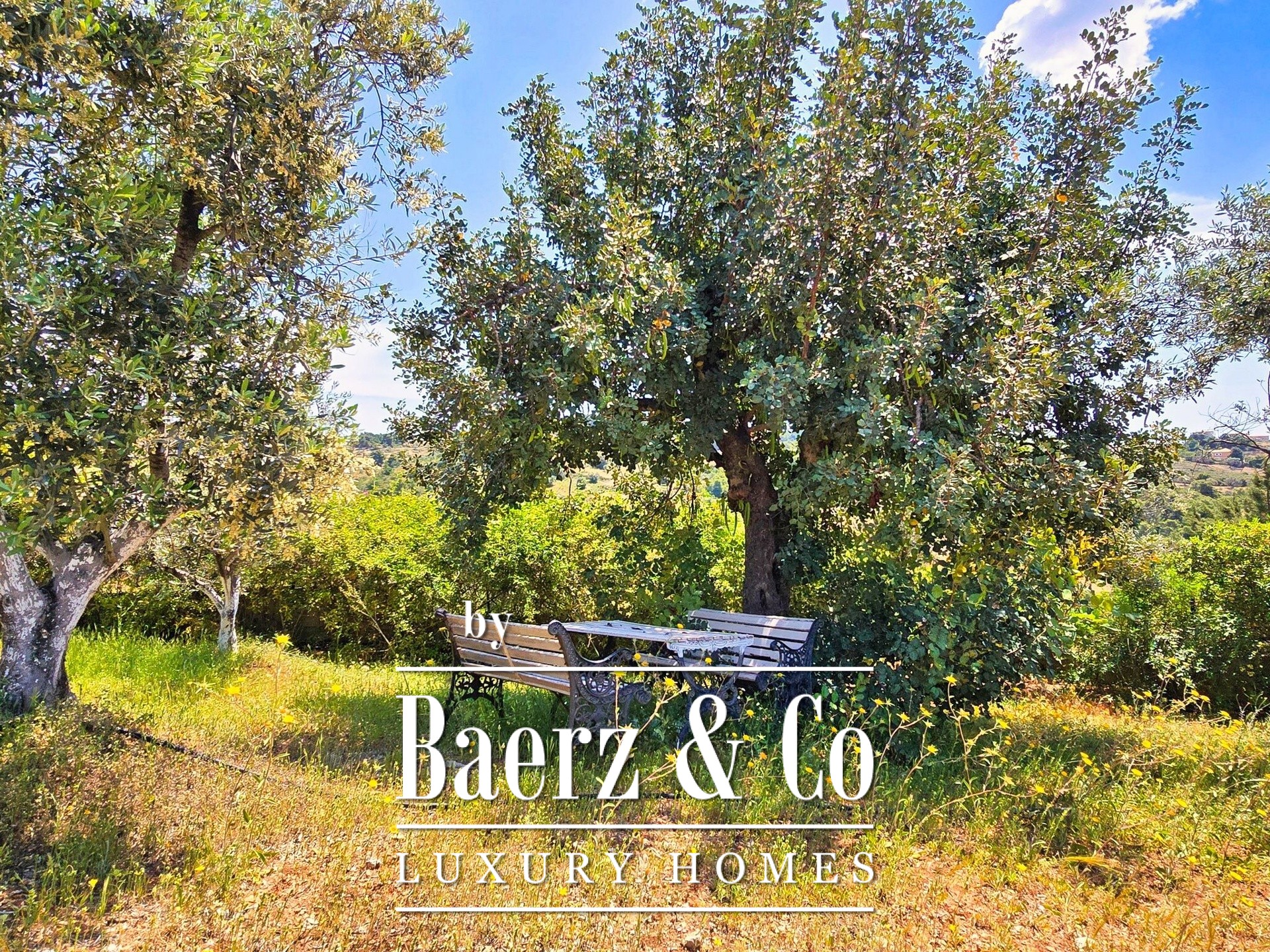 The plot is fenced, planted with olive trees and ornamental plants and landscaped with beautiful outdoor spaces, ideal for enjoying under the natural shade, the tranquility of the landscape and the unique view throughout the day.