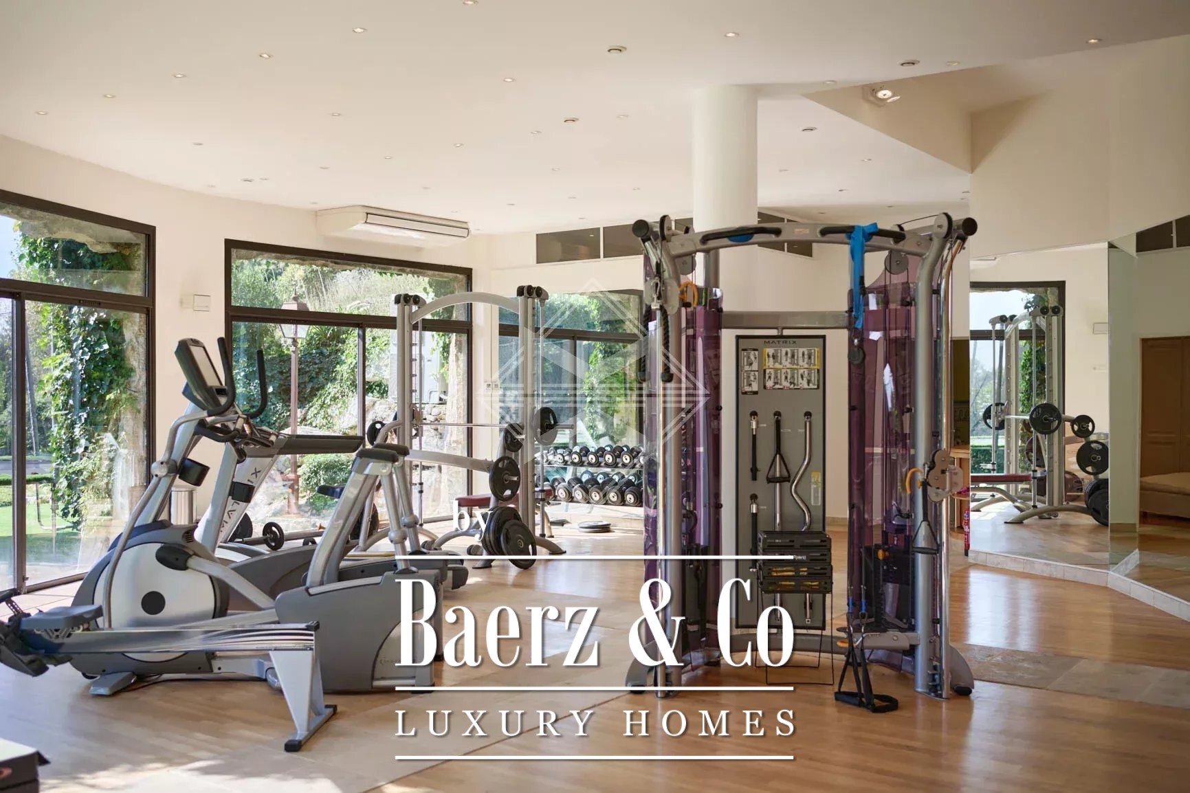 The left wing reveals a chef’s kitchen with pantry, a dining space with a fireplace, a laundry area and discreet staff accommodation. The right wing hosts three en-suite bedrooms including a master suite with dressing room, study and garden access. Upstairs provides three more bedrooms, two bathrooms, balconies and a terrace. On the garden level, leisure and wellness are at the fore: home cinema, spa with jacuzzi, sauna, hammam, music room, wine cellar, cigar cellar and a self-contained guest apartment.