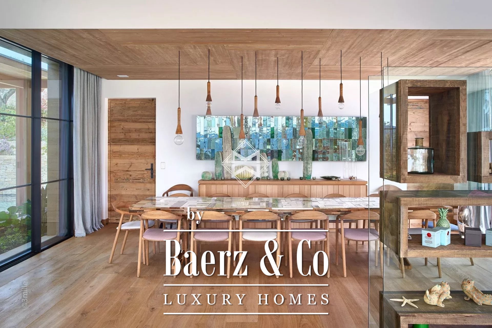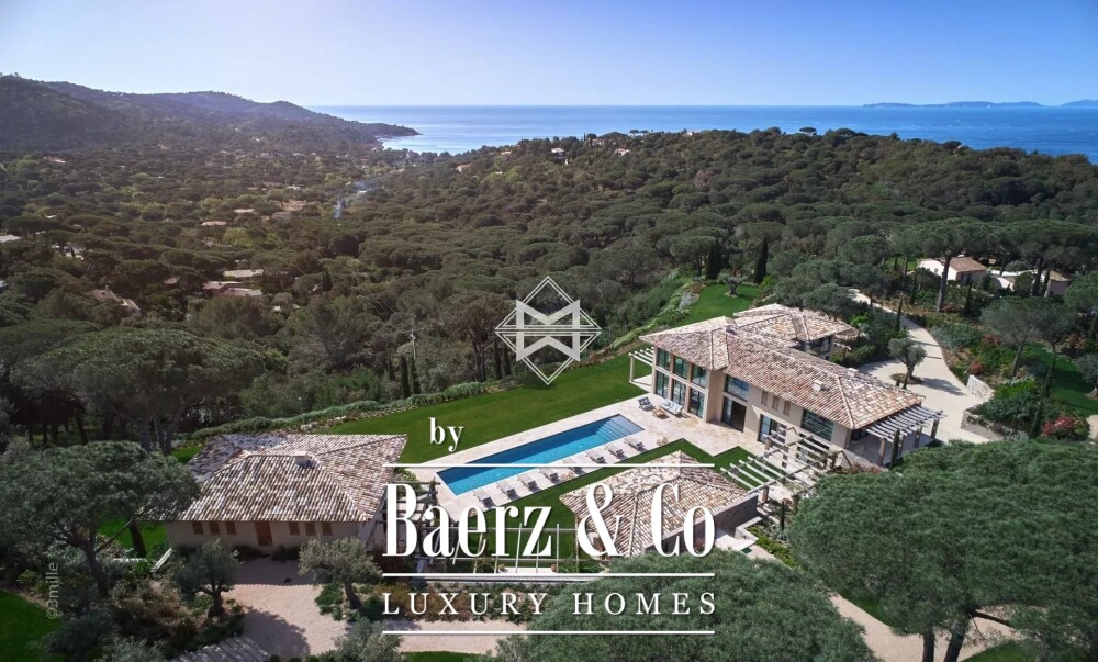 The main residence comprises 802 m² of interiors, offering five luminous suites, complemented by a guest villa with four additional suites and a caretaker’s house with two bedrooms. Every aspect is meticulously designed by a renowned architect, uniting refined modern finishes with subtle Tropezian character. Living spaces extend seamlessly to the outdoors, opening to a heated 20-metre swimming pool, pool house, and a fully appointed summer kitchen.