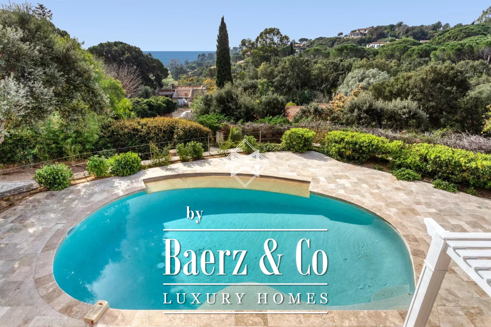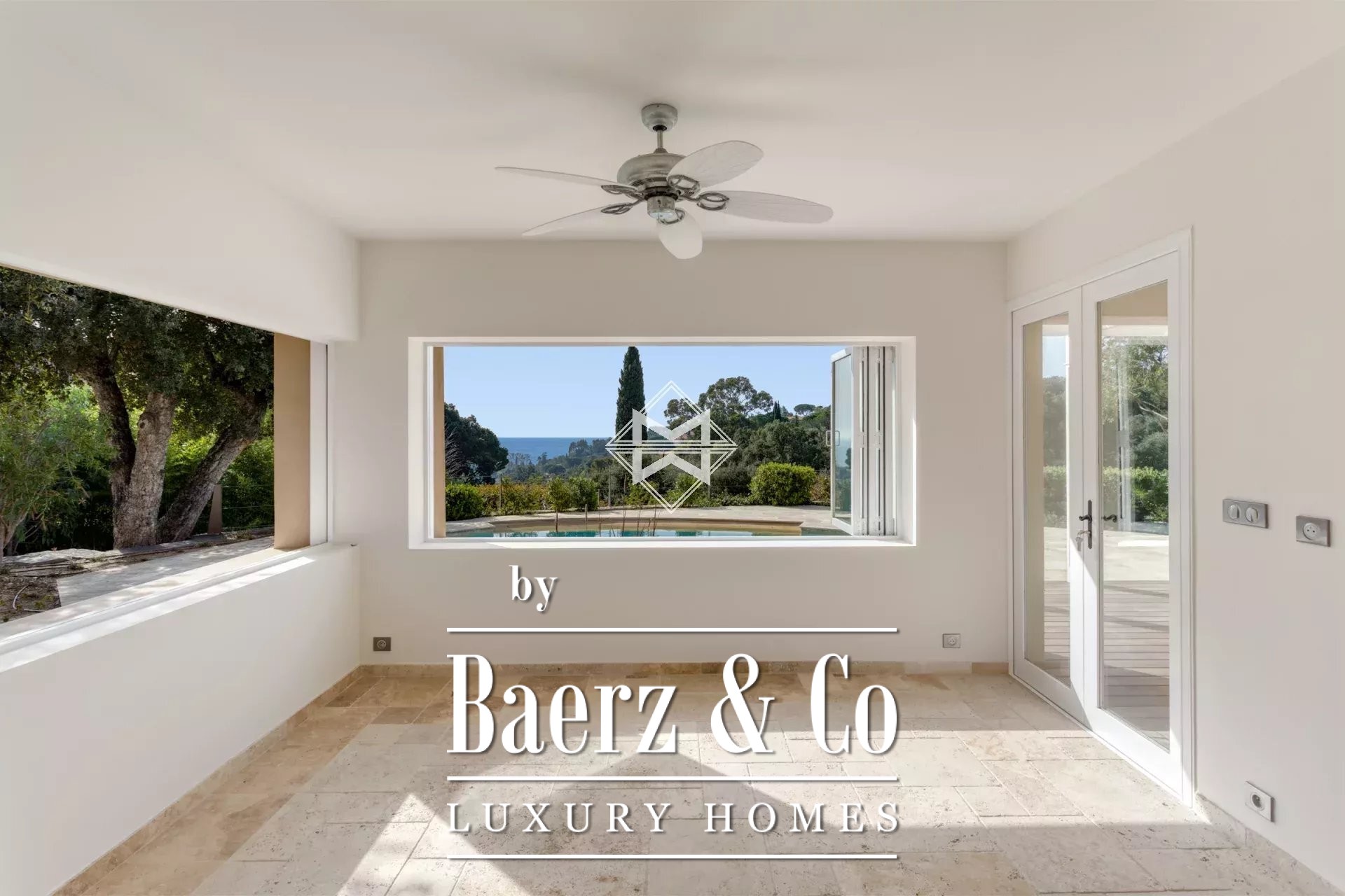 Villa La Croix-Valmer stands just minutes from the Héraclée and Gigaro beaches, marrying renovation with timeless views across the sea and hills. This villa, spanning approximately 200m2, is oriented south to maximize natural light and the tranquil Mediterranean panorama. On the ground level, the living room extends seamlessly onto a substantial terrace and private garden, while a high-end kitchen and laundry space bring functionality and elegance. An en-suite bedroom completes this floor.