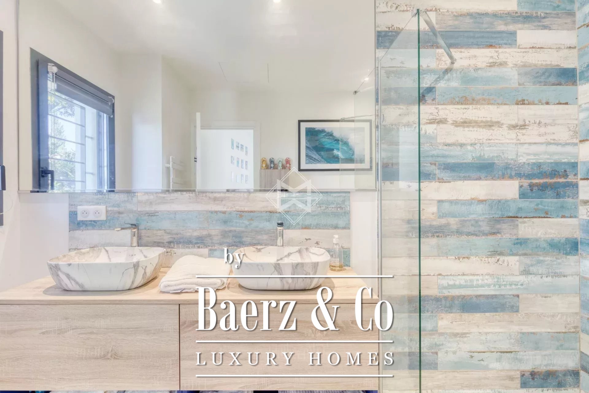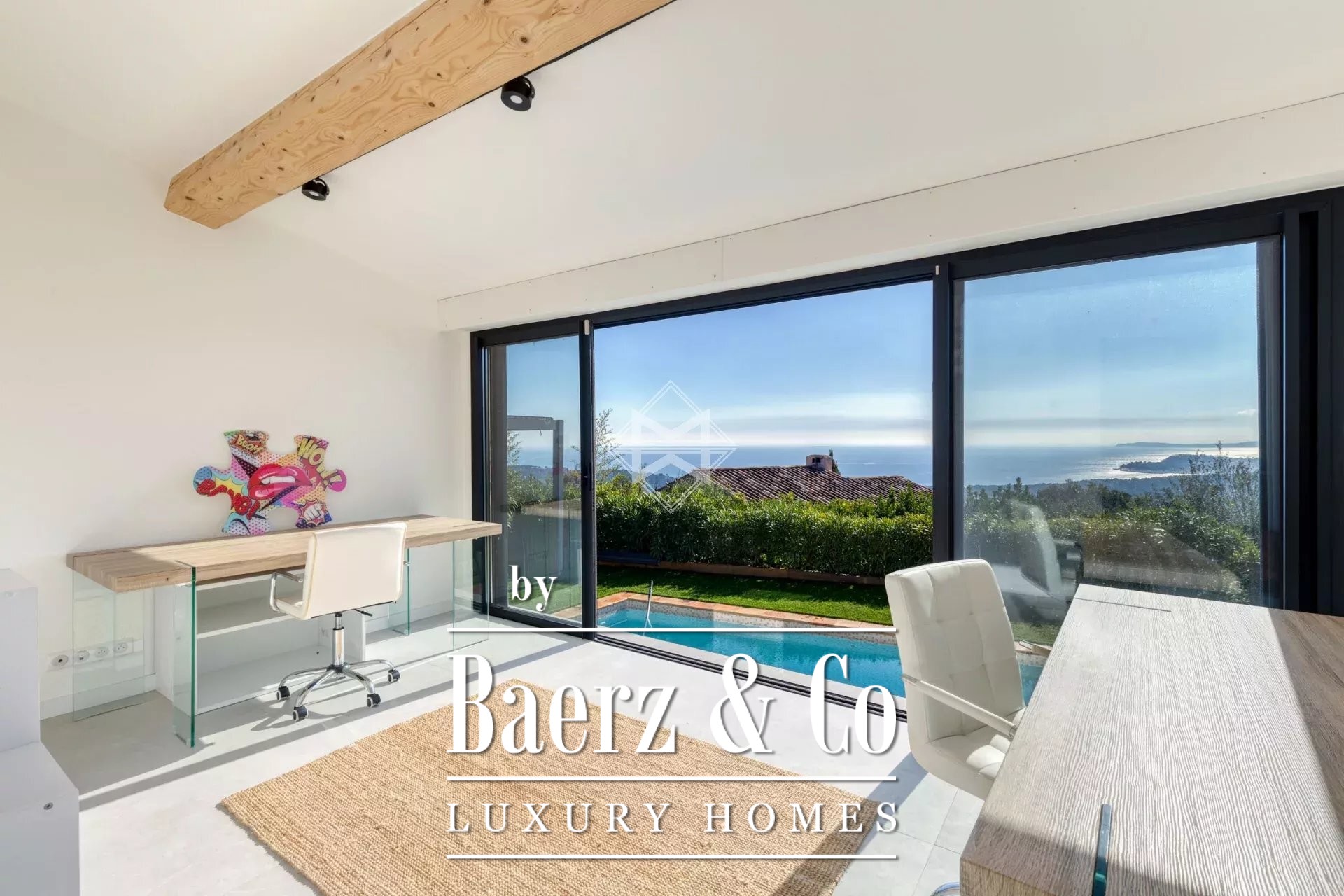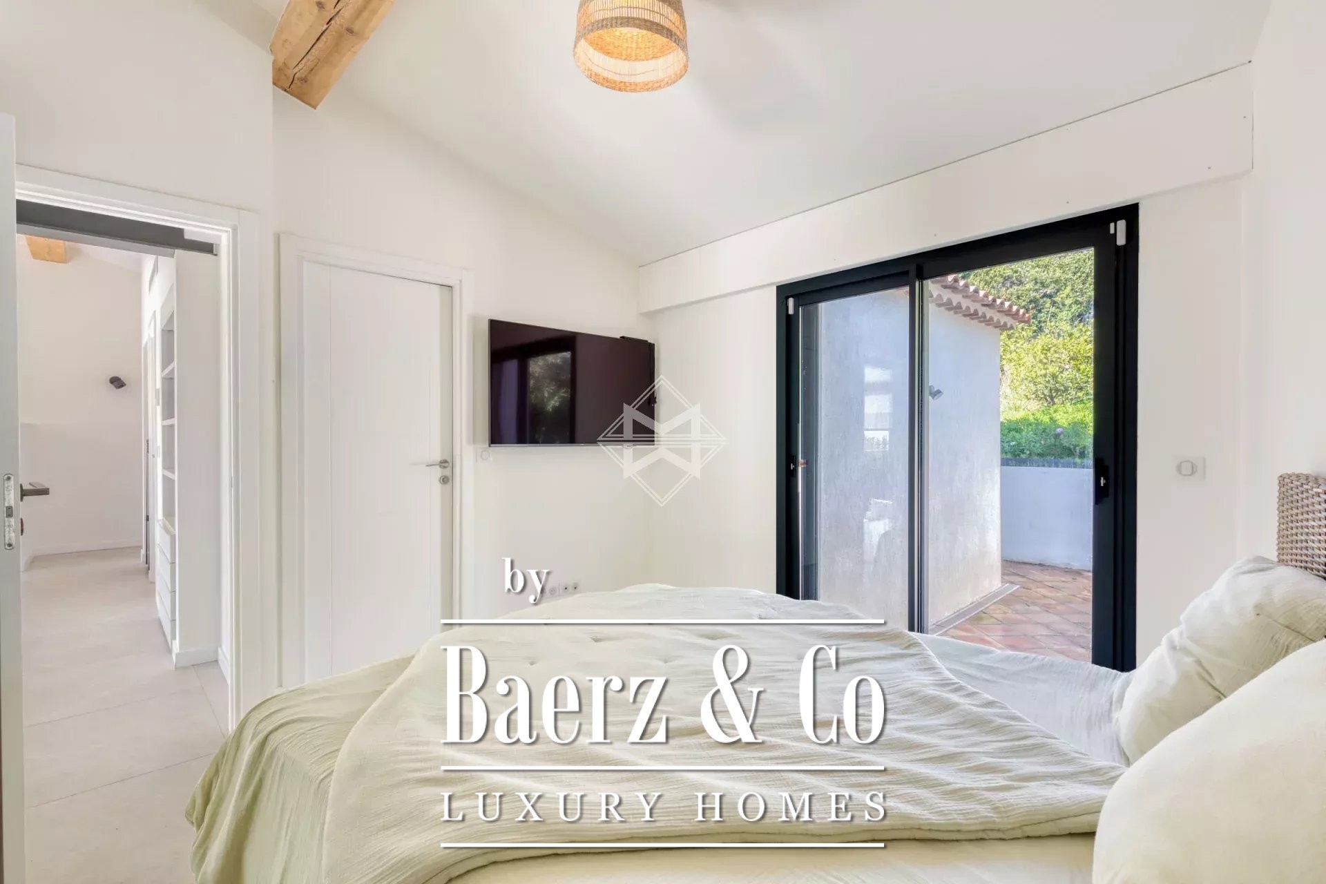 Villa La Croix-Valmer with panoramic sea view awaits in a sheltered enclave, where privacy and south-facing light define each moment. Thoughtfully renovated to a turnkey specification, this 108 m² villa stands at the end of a tranquil cul-de-sac. Its architecture allows sunlight to animate a generous living and dining area with open kitchen, complemented by three bedrooms, including two en-suites with walk-in closets and custom storage.