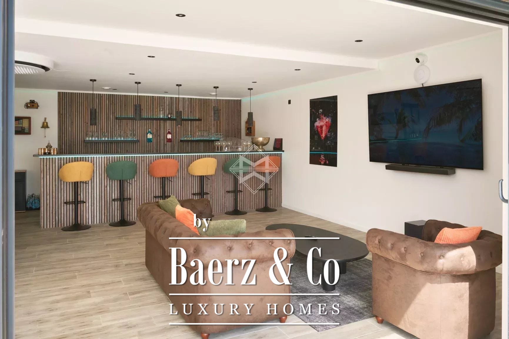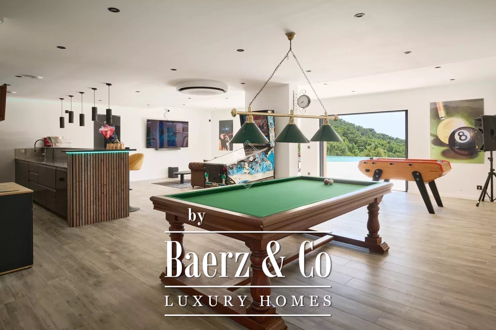 The property offers nearly 370 sqm of living space, with bright living areas and a spacious leisure room (billiards, bar, TV lounge, wine cellar, etc.).