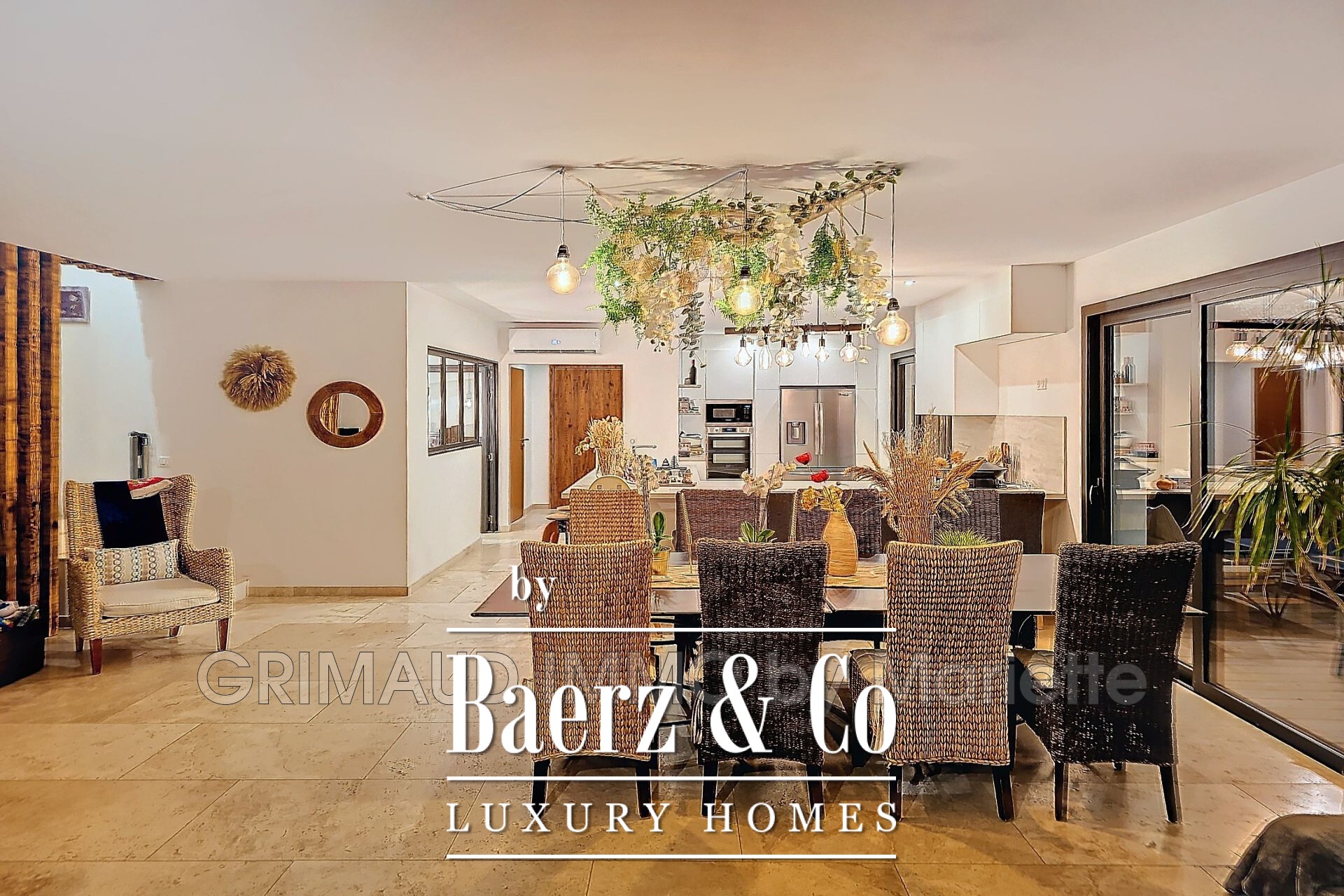 Splendid contemporary detached house, but without the Provençal style, recently built in 2021, located in La Garde-Freinet, offering an approximate area of 210m² set on a 2500m² plot. Spread over two floors, this residence guarantees complete tranquility with a south-facing orientation. Enjoy a spectacular view of a lush garden stretching out from both terraces. The property comprises four bedrooms, one bathroom, three shower rooms, and five toilets. The kitchen, designed with