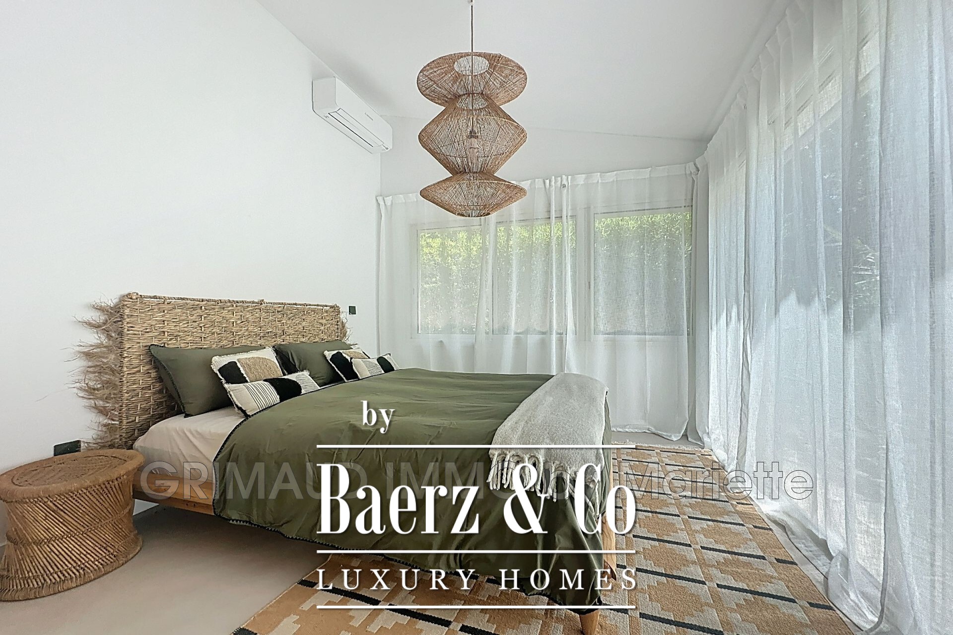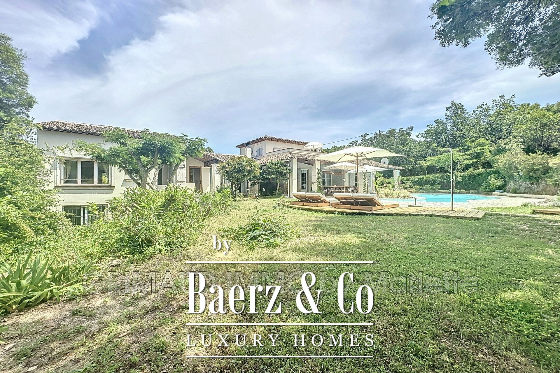 room with wood stove, a bedroom with shower room + toilet, a master bedroom with shower room + toilet, a bedroom overlooking the pool, upstairs a beautiful bedroom with shower room and its Tropezian terrace and exposed beams. An independent apartment with living room, kitchen, shower room + toilet, bedroom on mezzanine. Large garage with cellar and workshop.