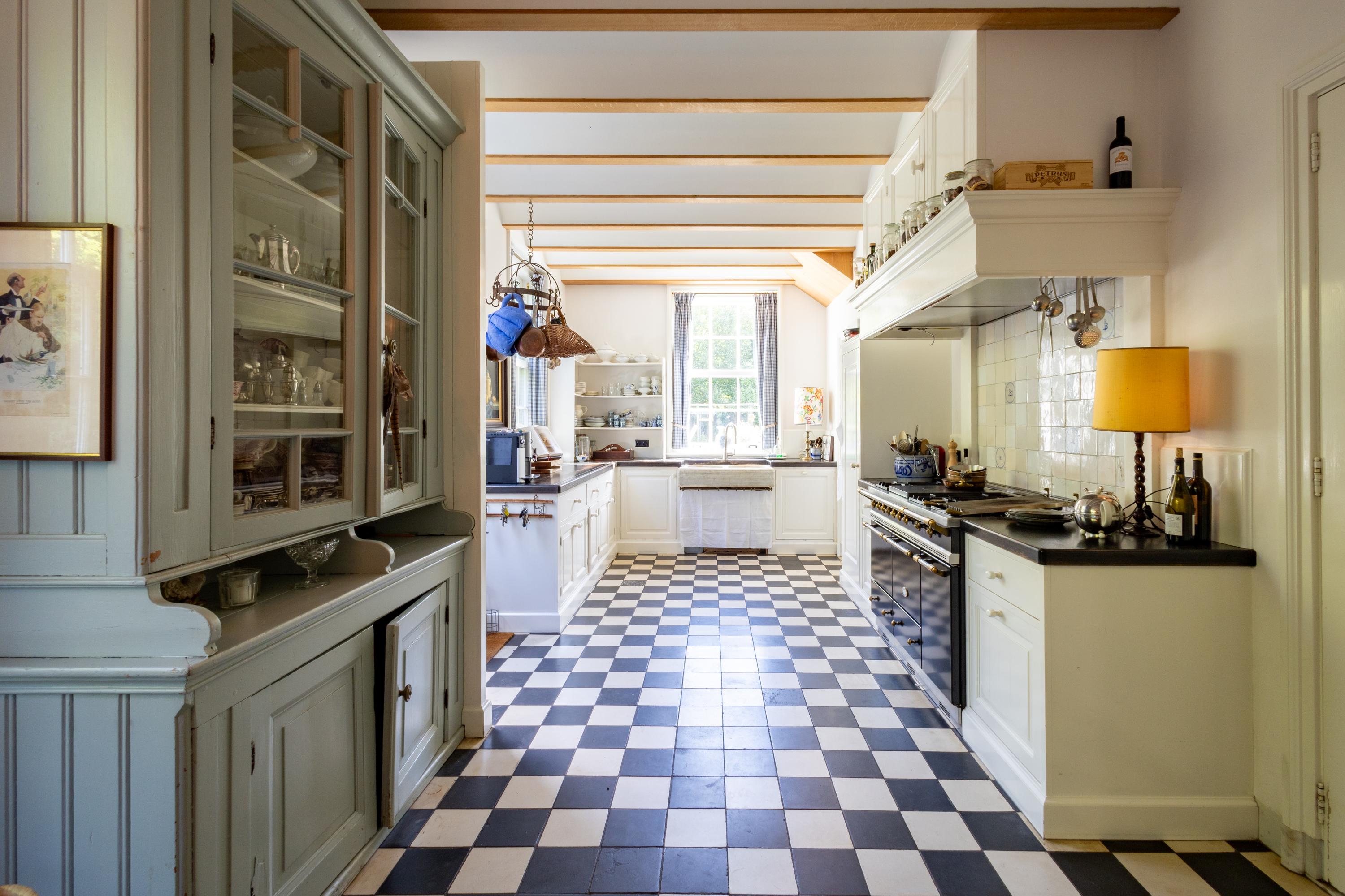 What truly sets this home apart is the soul with which it was built. Designed in 2012 by architect Van Asbeck, the villa owes its unique character to the carefully sourced, reclaimed materials. Parquet floors that once graced historic buildings, centuries-old children’s play tiles incorporated into the skirting and kitchen, doors with a story, roof tiles from a former Utrecht barracks, and even old cheese boards that have found a new purpose. In the kitchen stands a cabinet from an Amsterdam canal house — fitting seamlessly into the home’s atmosphere. Every detail breathes history and authenticity, together giving the house a rare sense of spirit and depth.