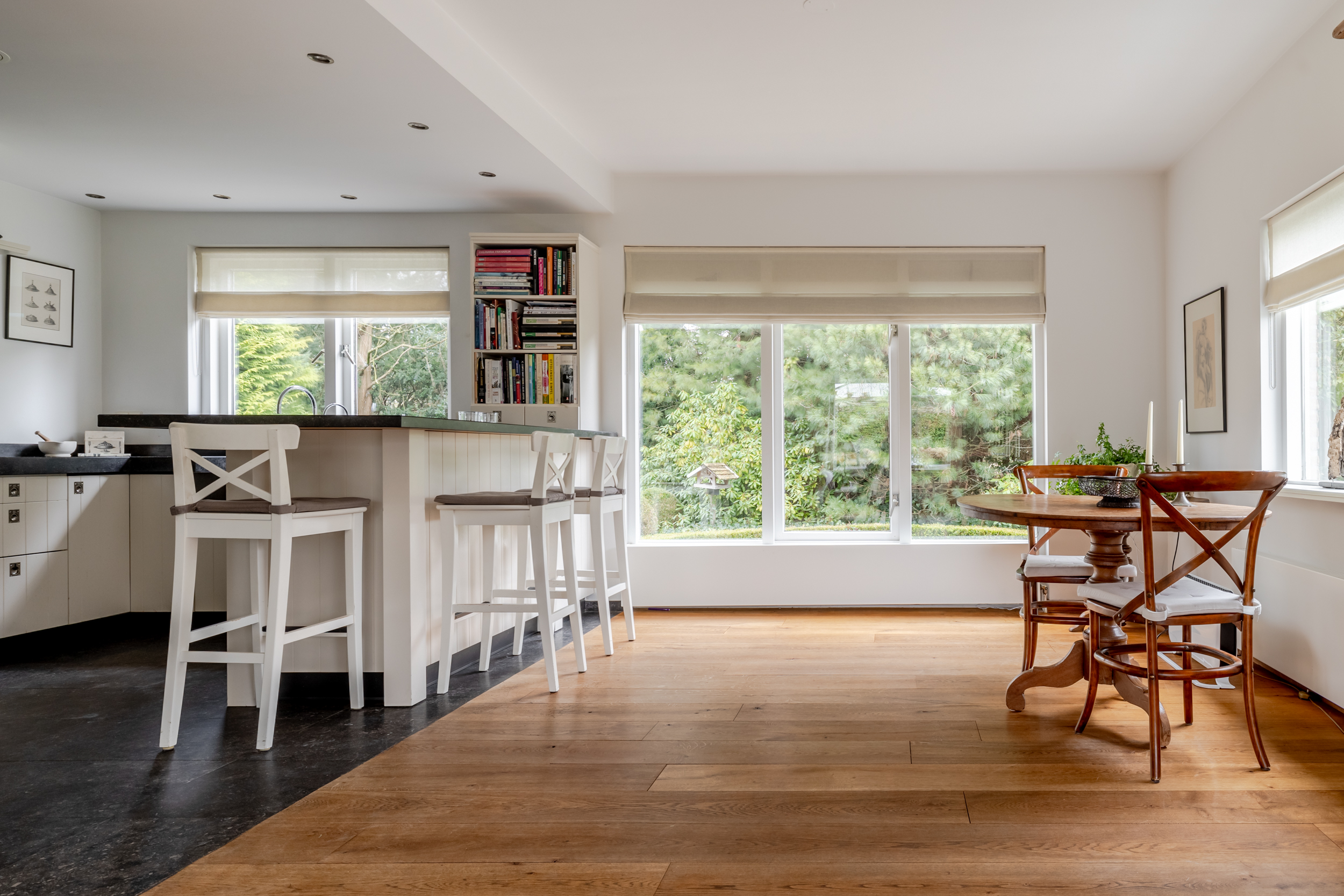This stunning detached villa is beautifully located by the water and features a garden-facing living room and a spacious practice or office space that also opens onto the garden.