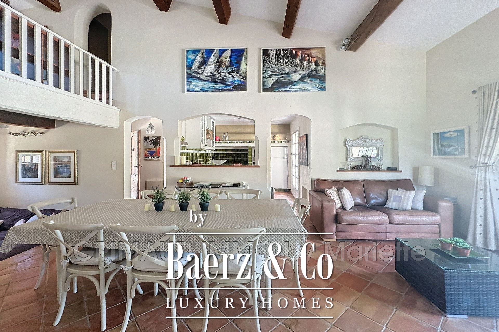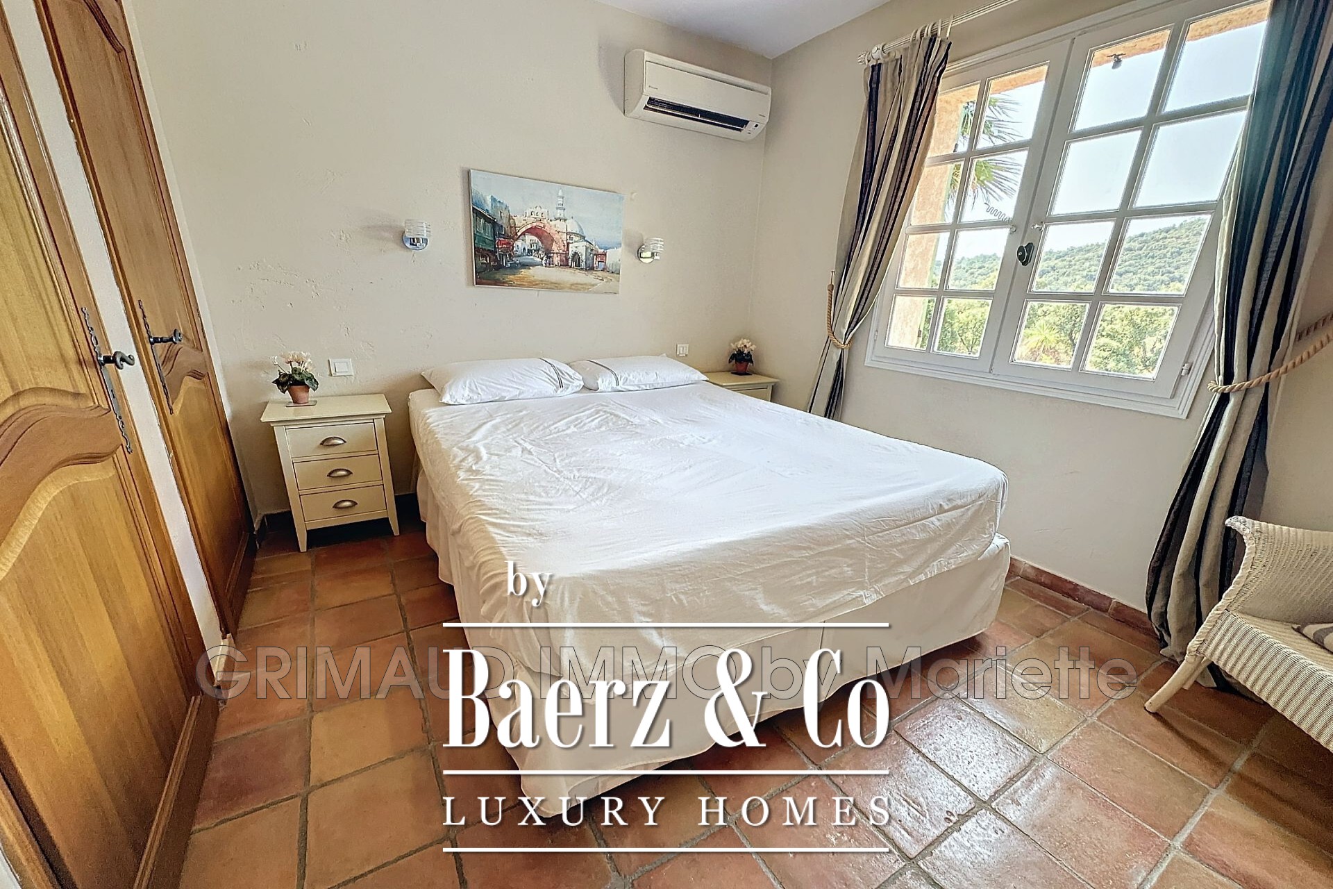 Outdoors, a pool sits amidst mature greenery, inviting unhurried afternoons. A double garage completes the offering. This villa in Le Plan-de-la-Tour balances tranquility and convenience, capturing the essence of a refined French village lifestyle.