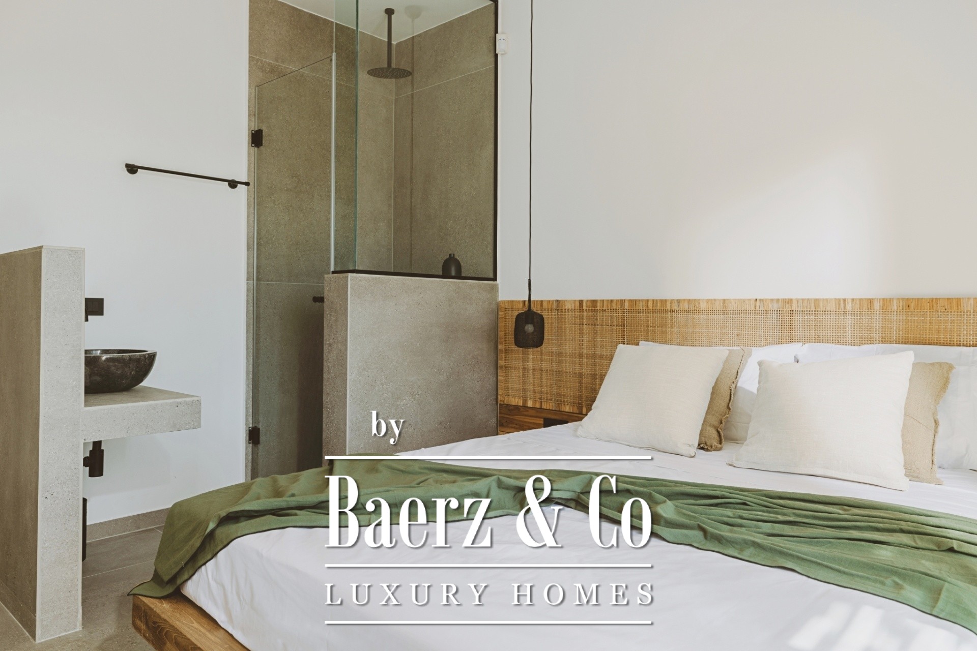On the highest level of the villa, for absolute privacy, lies the stunning master suite. This suite consists of a luxurious bedroom, an elegant bathroom, a spacious walk-in closet, and a private balcony of approximately 50 sq.m. with breathtaking views.