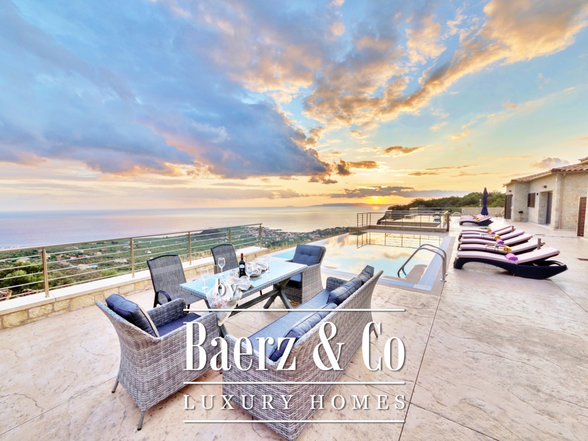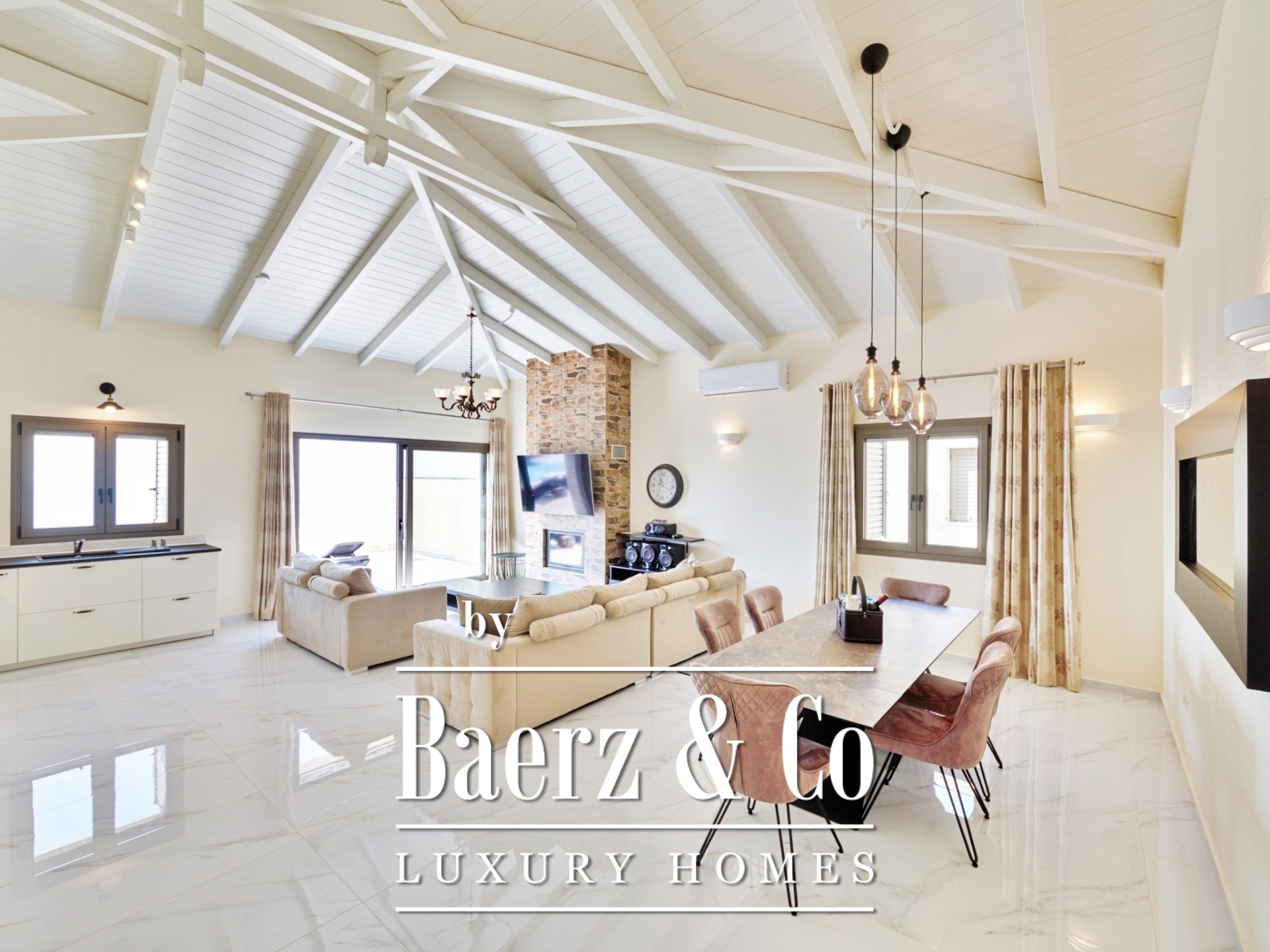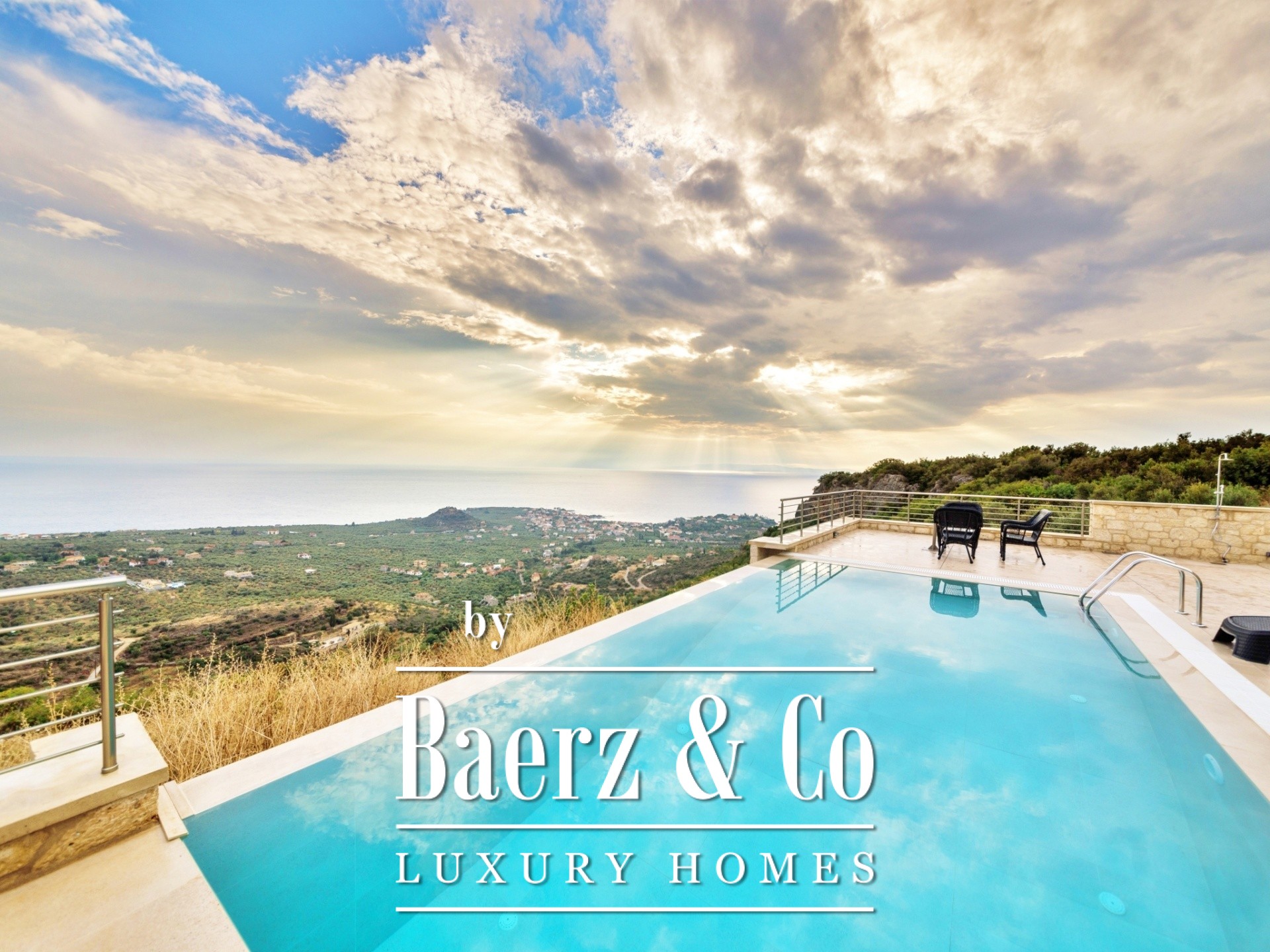 Selected property. Available for sale from our office is a complex of two independent villas with an independent guest house in Neochori of the Municipality of Lefktro. These are two identical villas of 152sqm each and are designed with simple lines and high quality materials. They are located within a plot of 8.012sqm with west orientation and literally on the most beautiful "balcony" of Western Mani. Each villa consists of a living room, dining room, open plan kitchen and 3 bedrooms, two of them with en-suite bathrooms. The aesthetics of the property in combination with the quality materials of construction and decoration give unparalleled harmony with the place. The residential complex is surrounded by olive trees and perched on top of a hill overlooking the