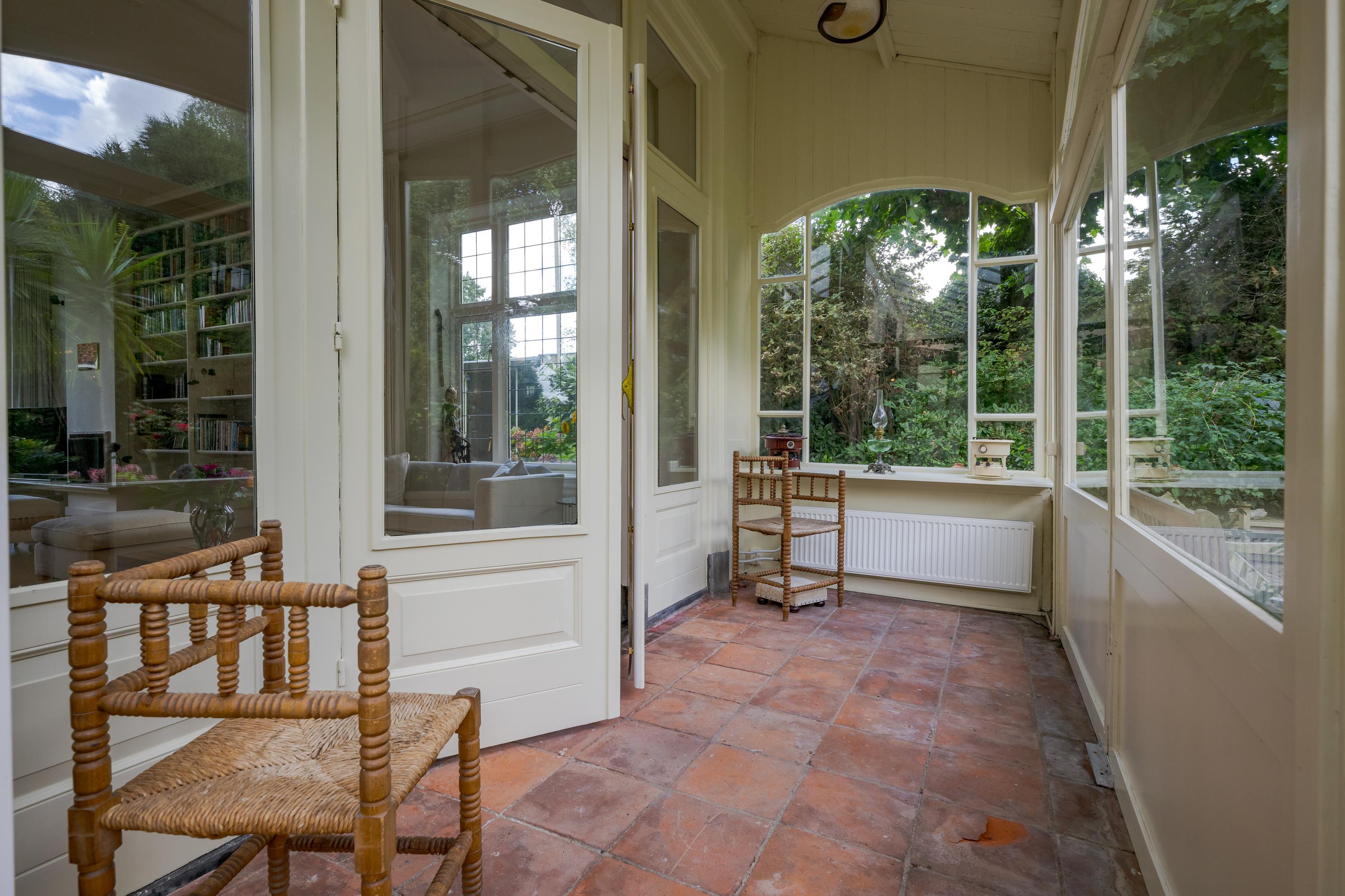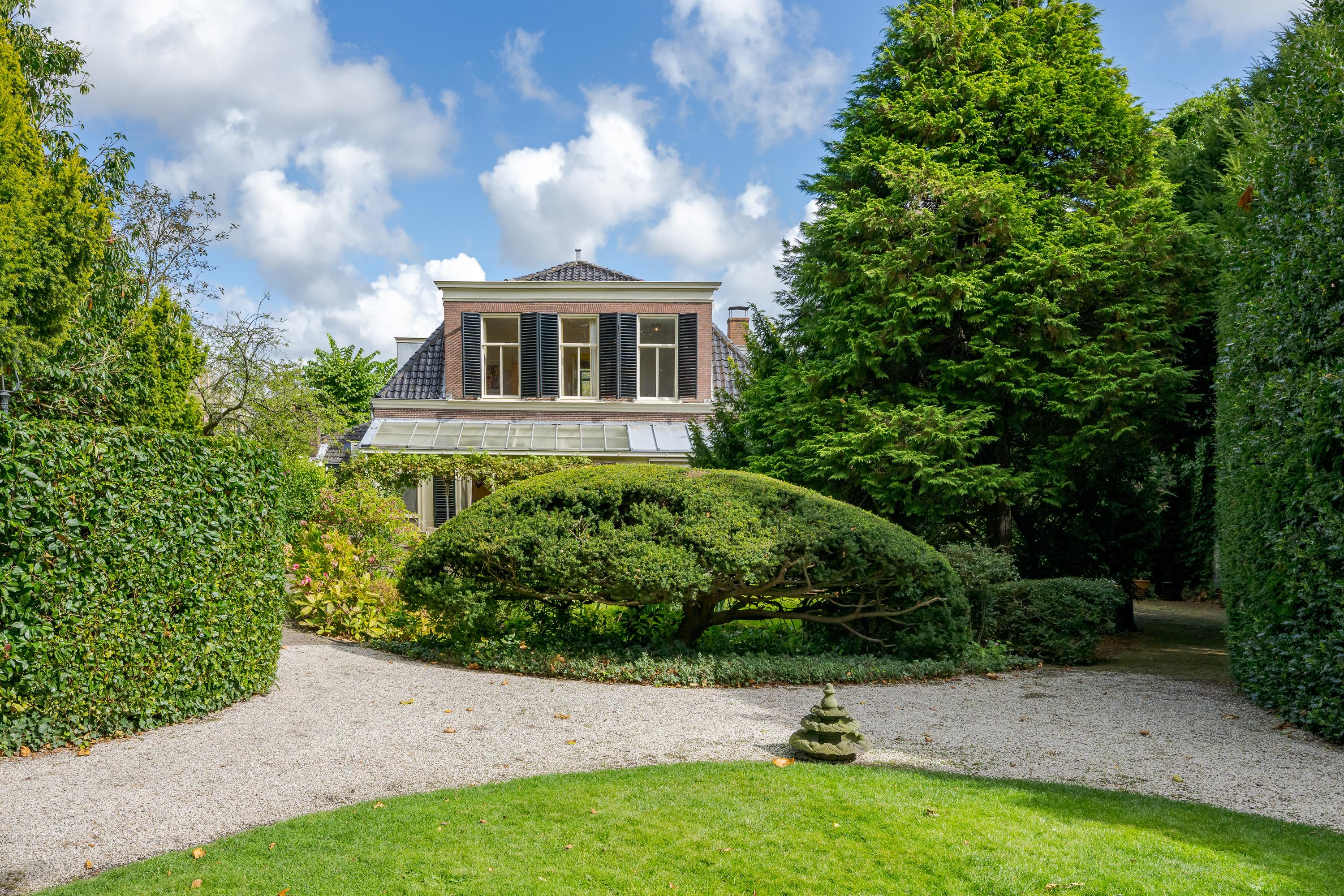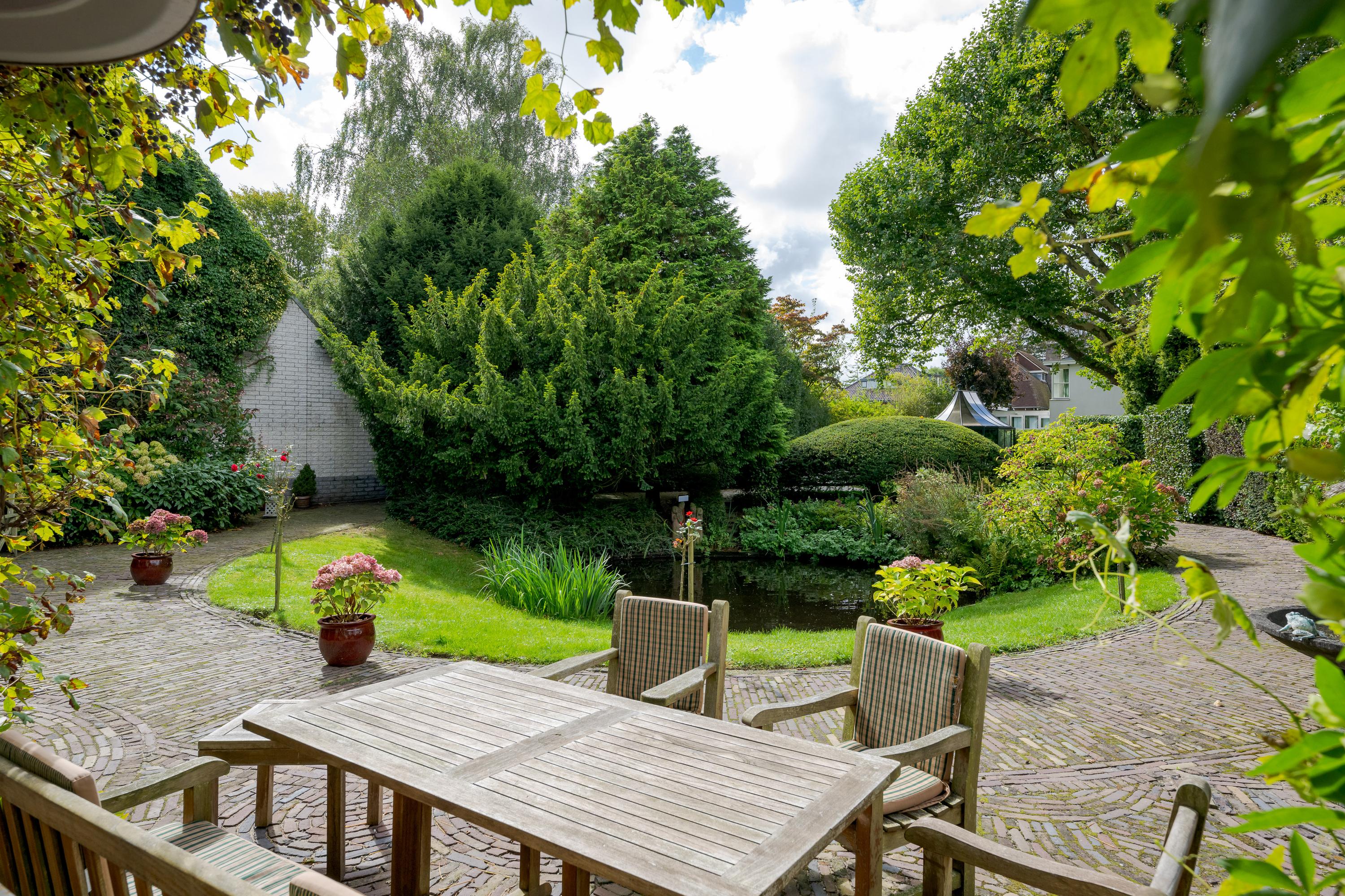 After you have closed the electric gate of the gatehouse behind you, you immediately imagine yourself in a different environment and the peace comes over you. A central lawn with a centuries-old plane tree (1820) forms the heart of the courtyard. Special is the greenhouse with a mandarin tree next to this tree, where you can still sit on a sunny day in the middle of winter. Both to the left and right of the lawn is a gravel path, where you can drive directly to the house if you want. There are now a few corners and seats where you can enjoy the sun or shade at different times of the day. A little further on is a pond that is equipped with a water supply system with Rhine water, with the entrance to the house behind it, flanked on the left by a veranda and on the right by a sunny conservatory. Here too, you can enjoy this large garden all year round.