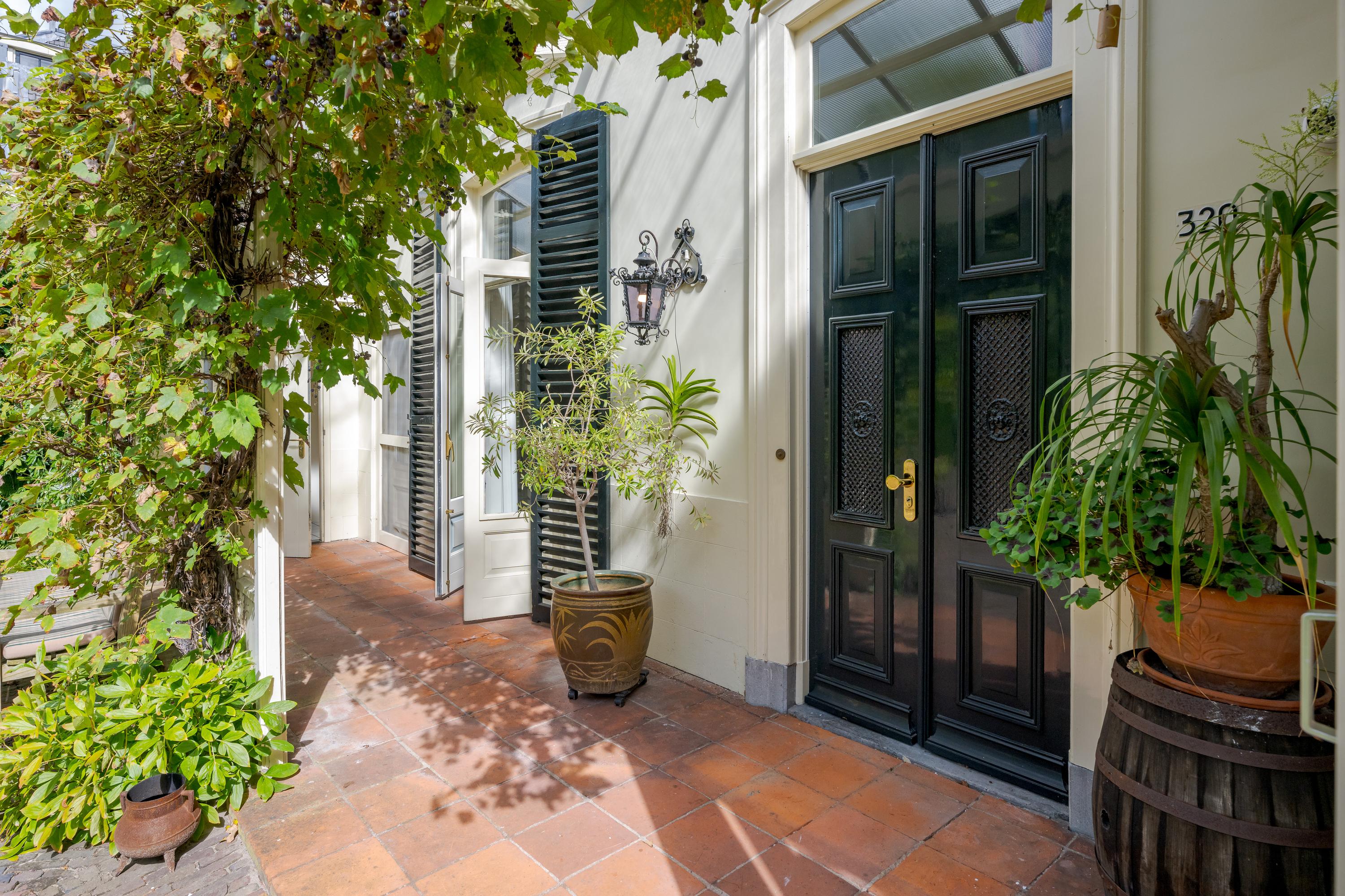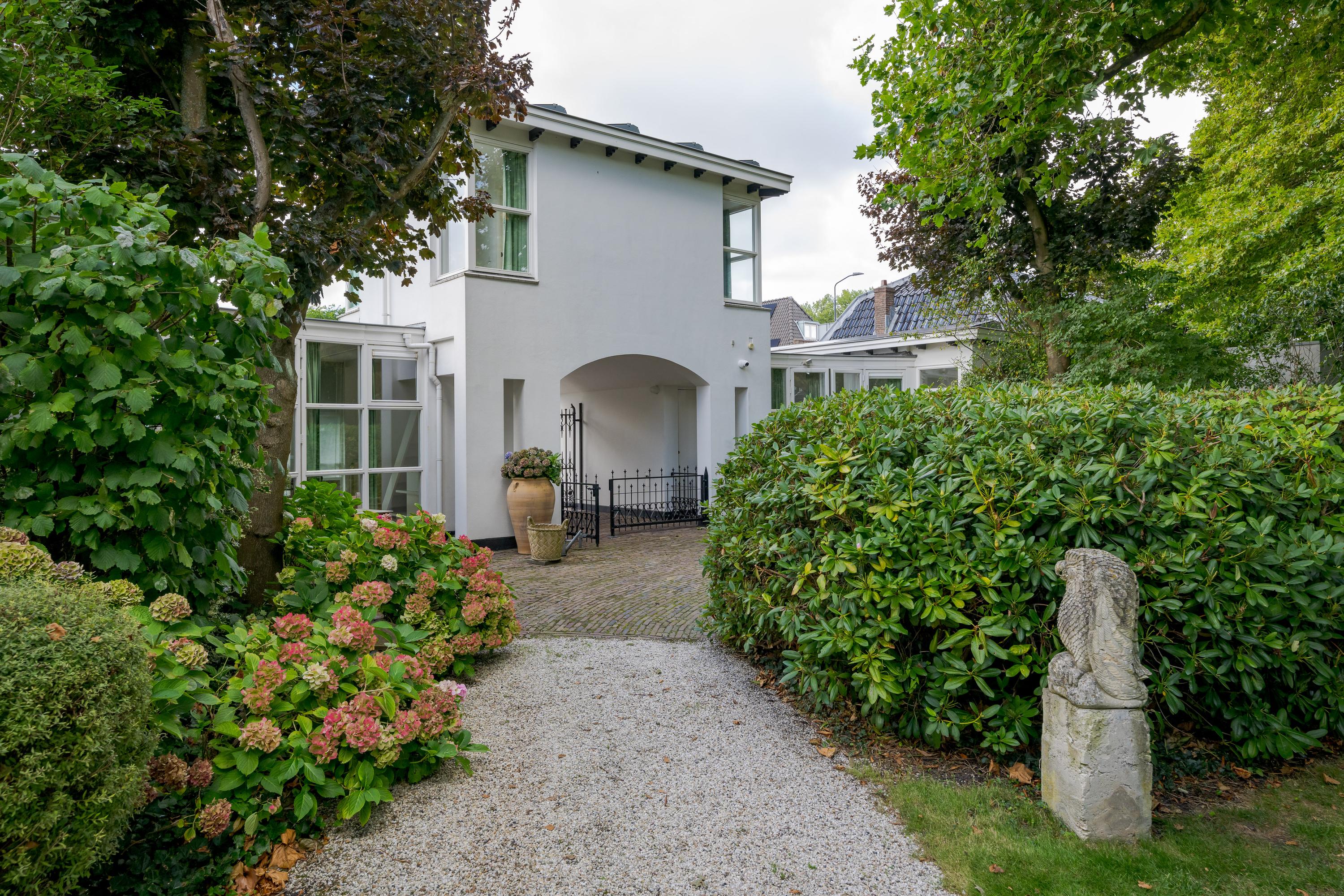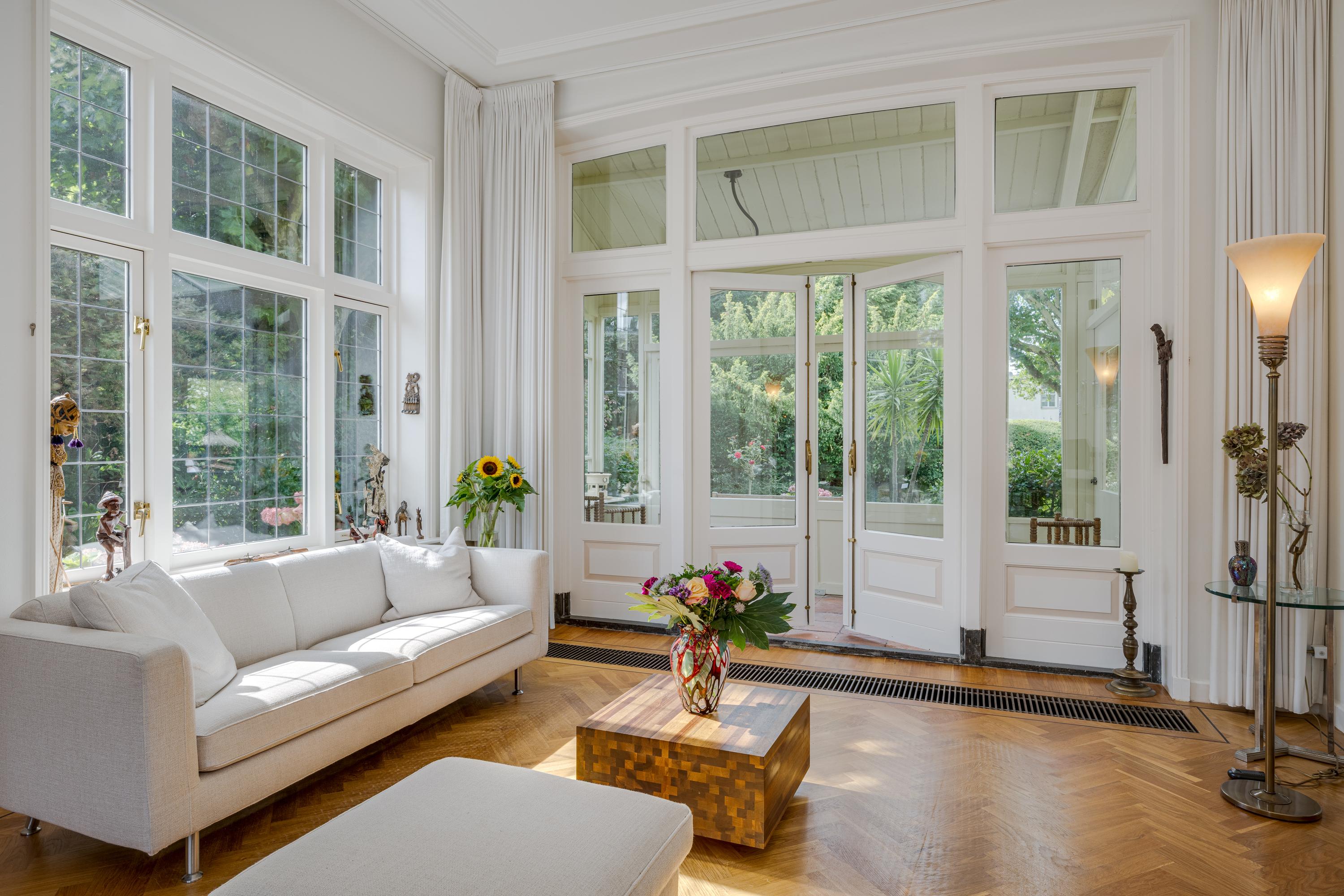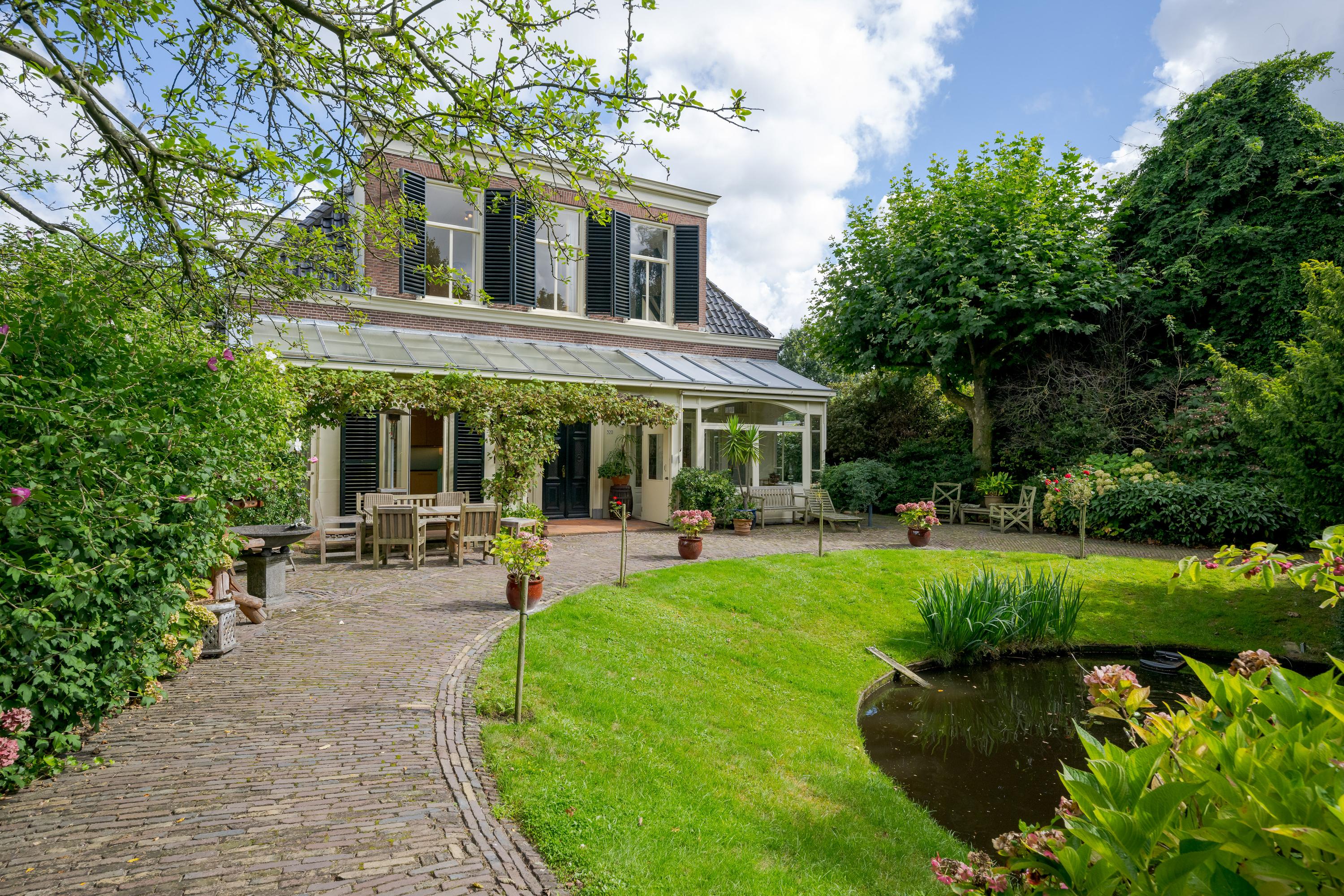 After you have closed the electric gate of the gatehouse behind you, you immediately imagine yourself in a different environment and the peace comes over you. A central lawn with a centuries-old plane tree (1820) forms the heart of the courtyard. Special is the greenhouse with a mandarin tree next to this tree, where you can still sit on a sunny day in the middle of winter. Both to the left and right of the lawn is a gravel path, where you can drive directly to the house if you want. There are now a few corners and seats where you can enjoy the sun or shade at different times of the day. A little further on is a pond that is equipped with a water supply system with Rhine water, with the entrance to the house behind it, flanked on the left by a veranda and on the right by a sunny conservatory. Here too, you can enjoy this large garden all year round.
