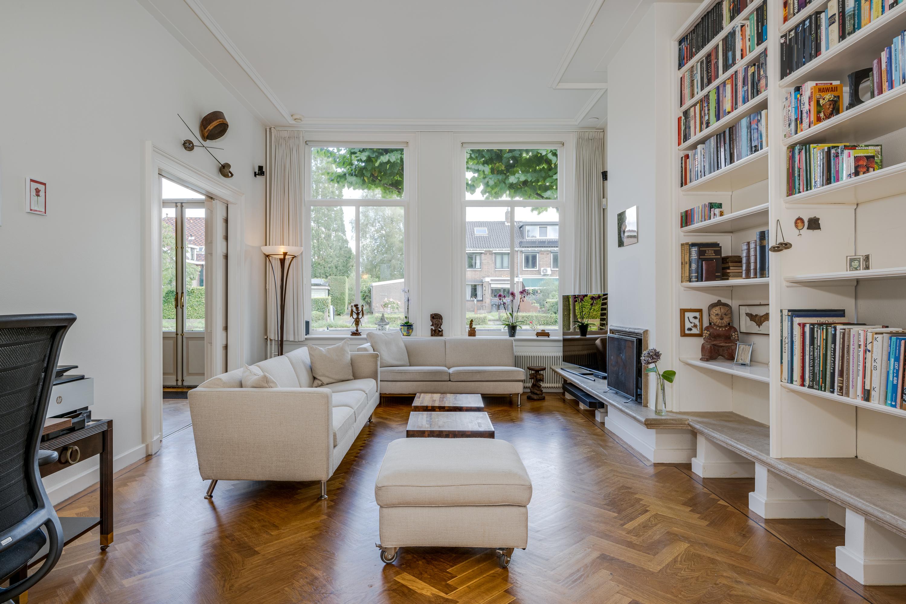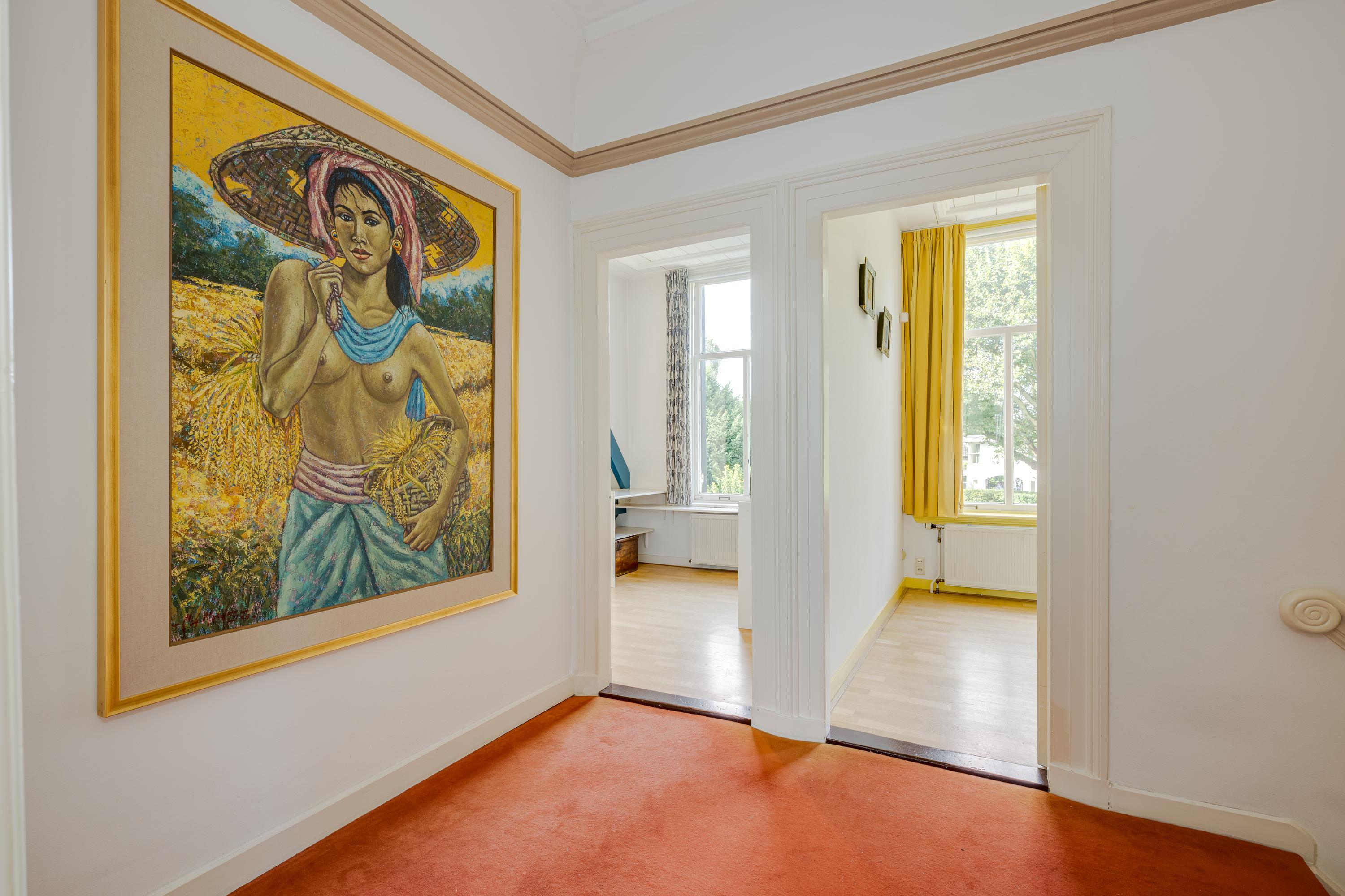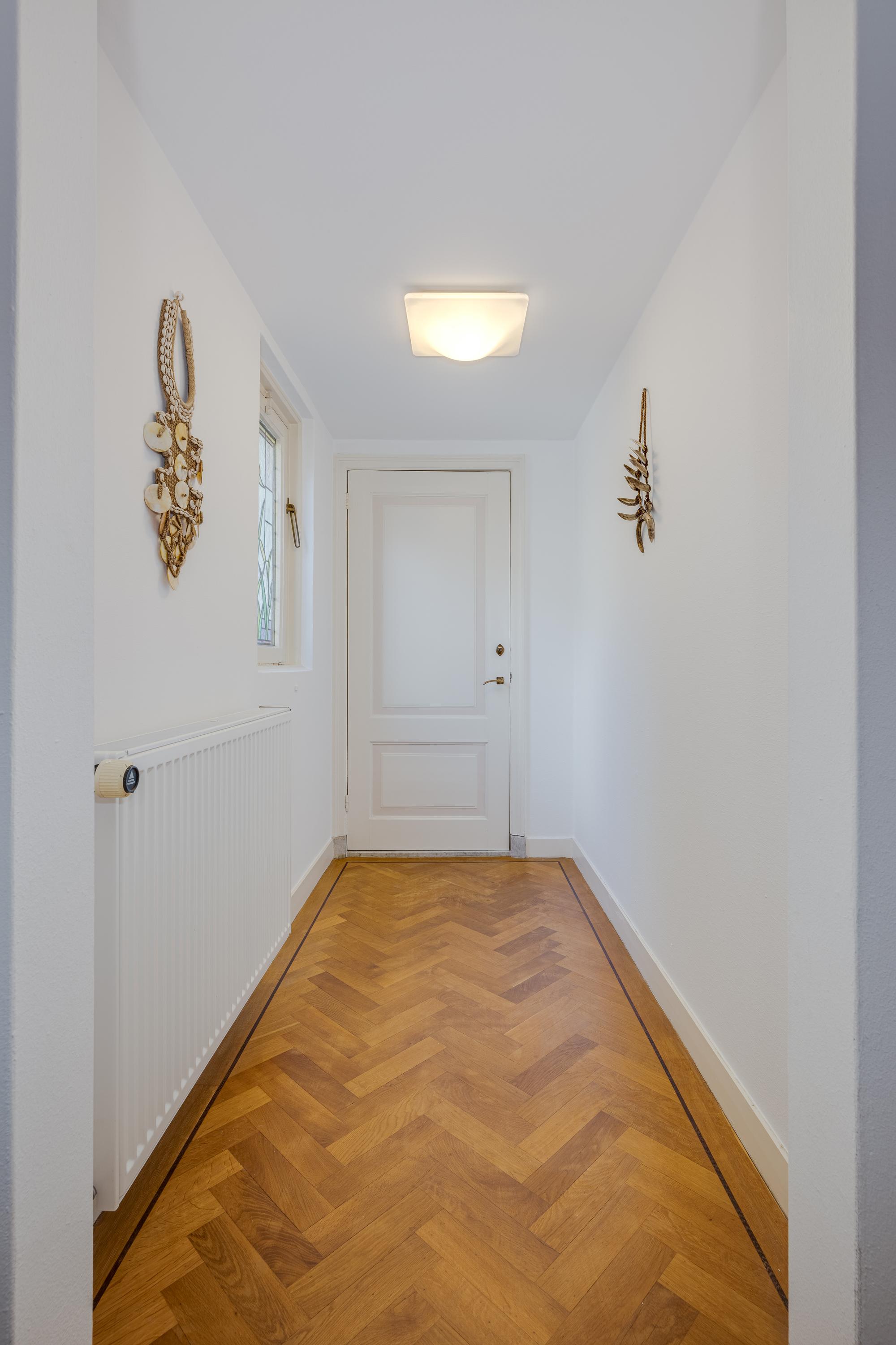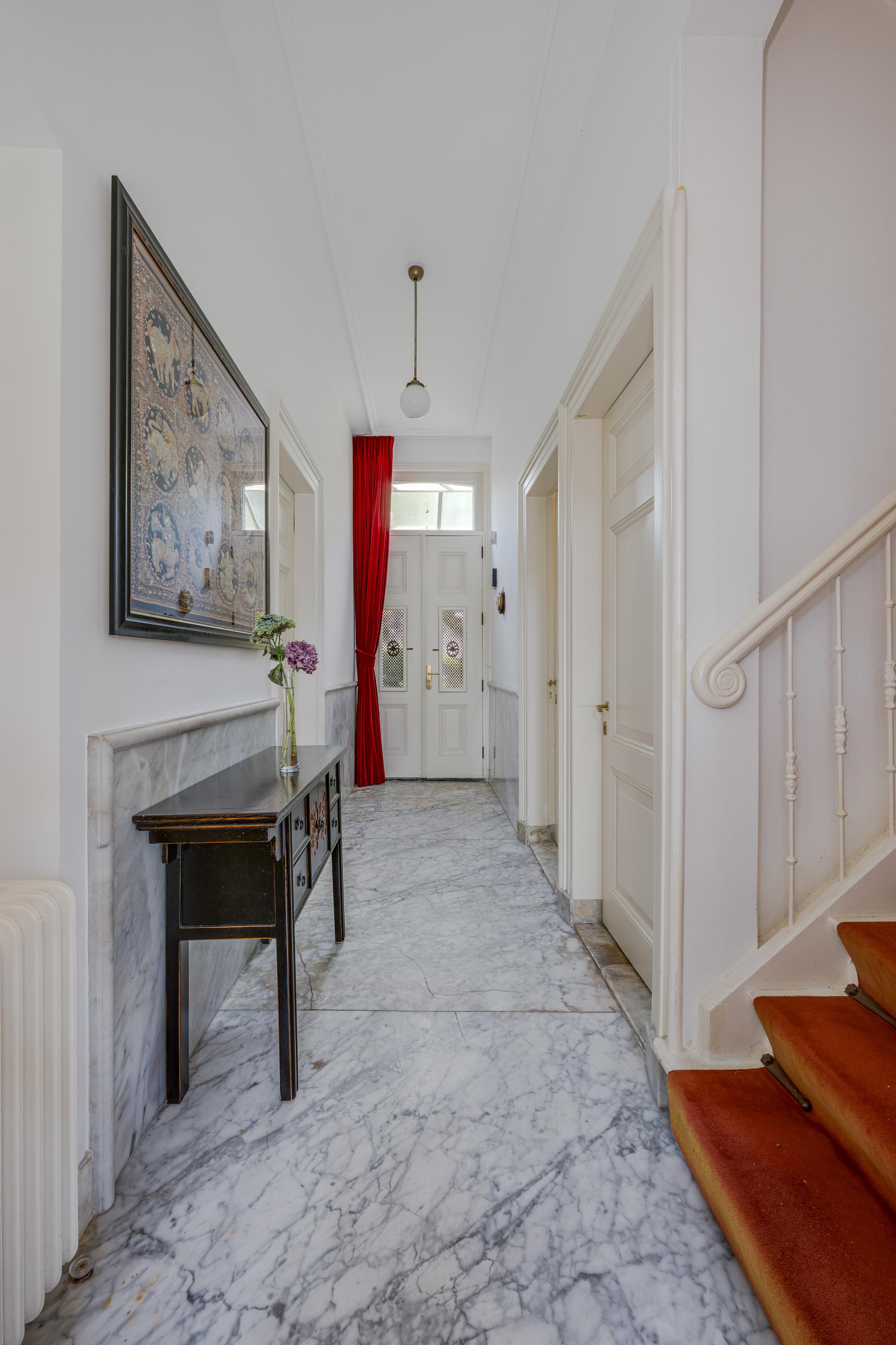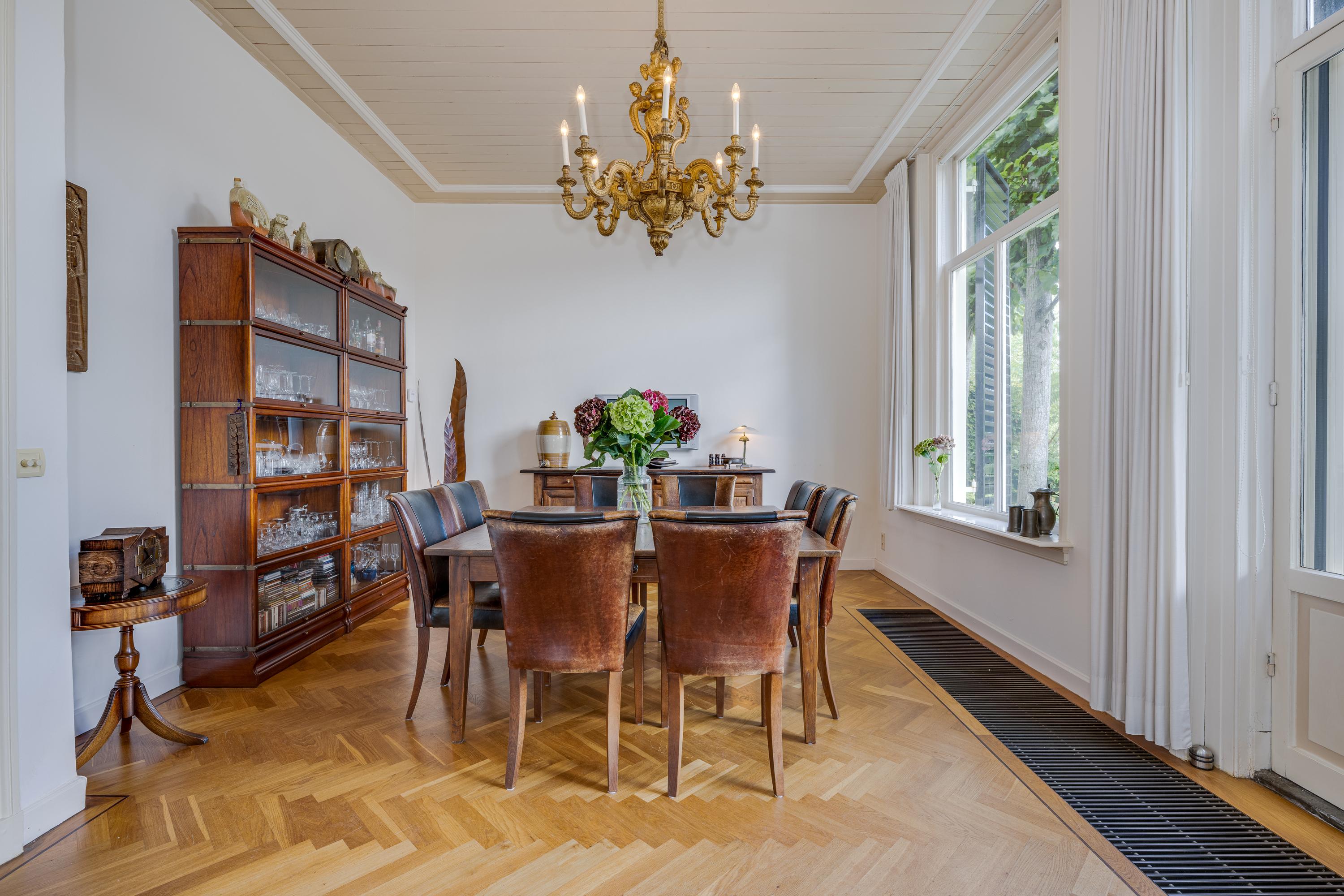 The main building from 1820 is characterised by the classic style elements from that period: a central entrance with two windows with shutters on either side and on the first floor the beginning of the roof with a central facade with three windows with shutters. The characteristics characteristic of this construction period are also present inside; high stately ceilings and windows on all sides provide beautiful light at any time of the day. On the ground floor there is an L-shaped living room en suite, fireplace with a conservatory on the garden side and a view of the Rhine on the water side. The central hall runs from front to back and has French doors to the garden with terrace on the water side. On the left side of the hall are the kitchen with utility room with a passage to the barn, the spacious basement and the formal dining room with again a beautiful view of the Rhine and the passing boats.