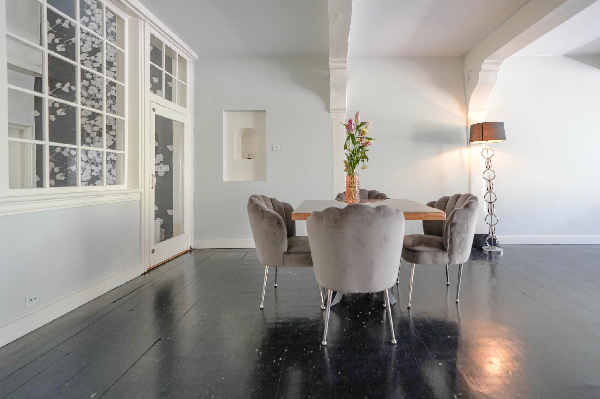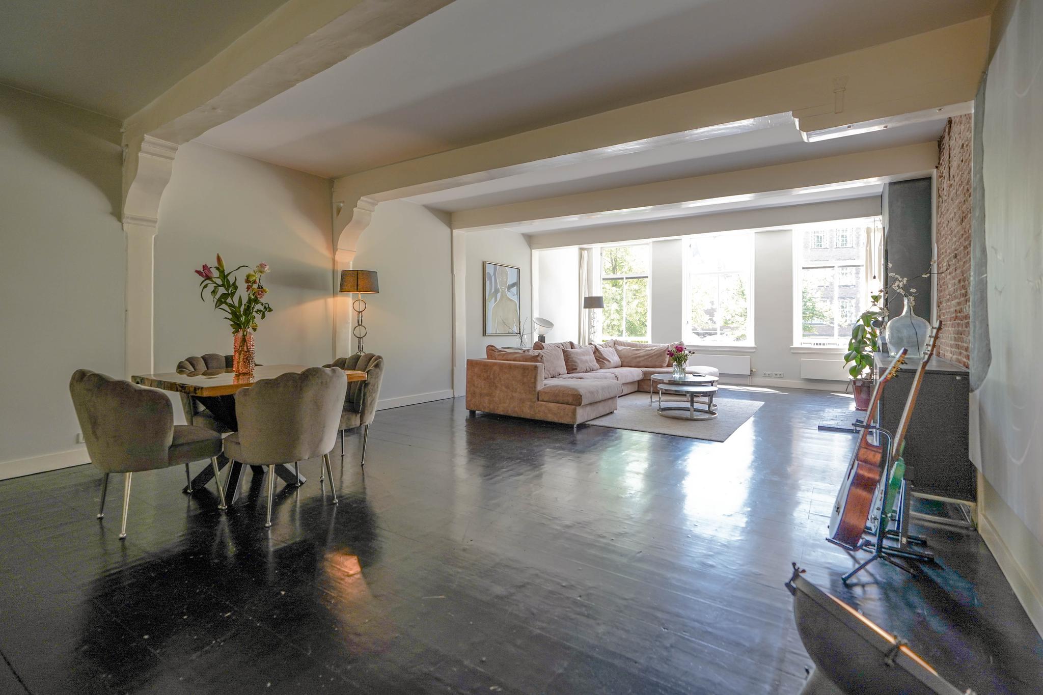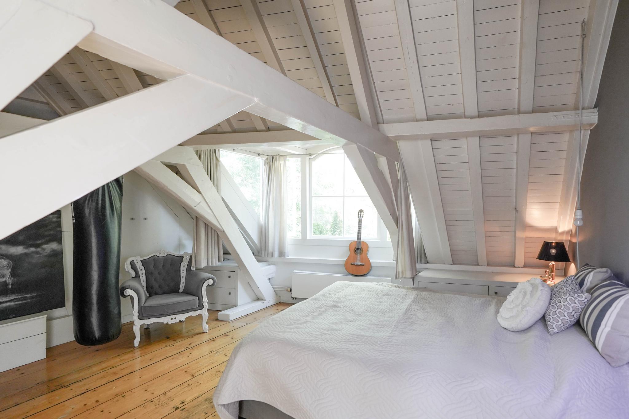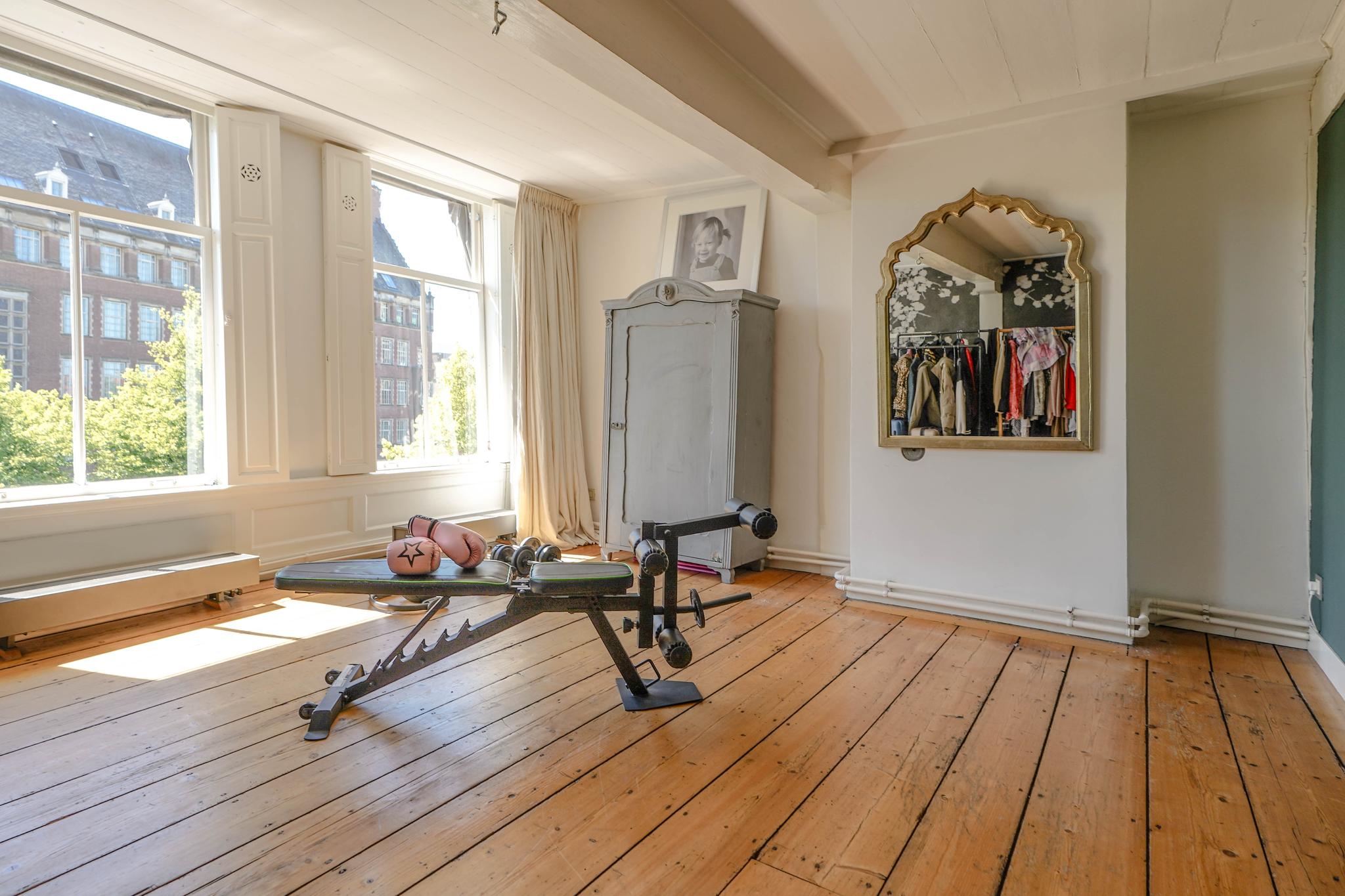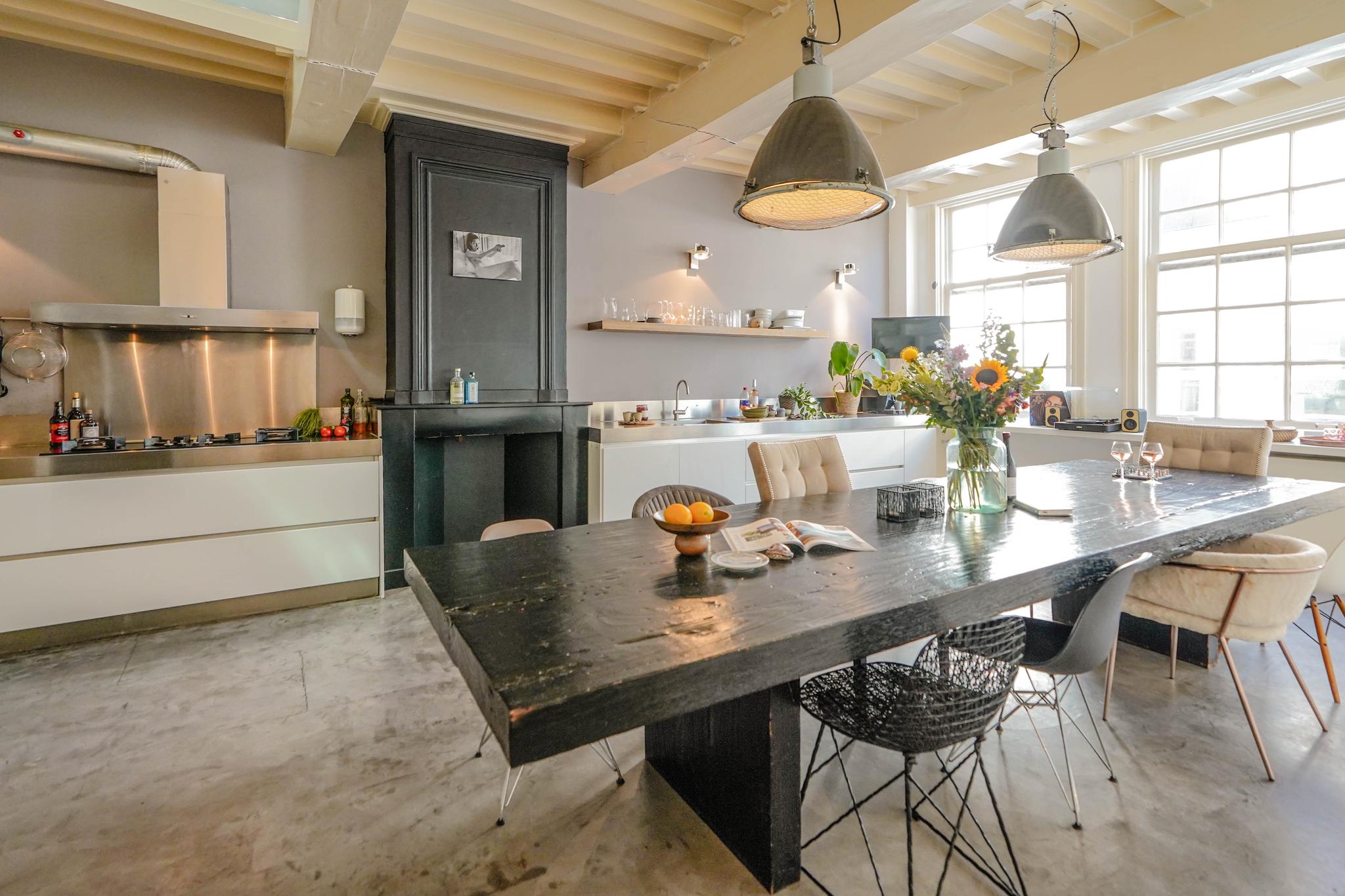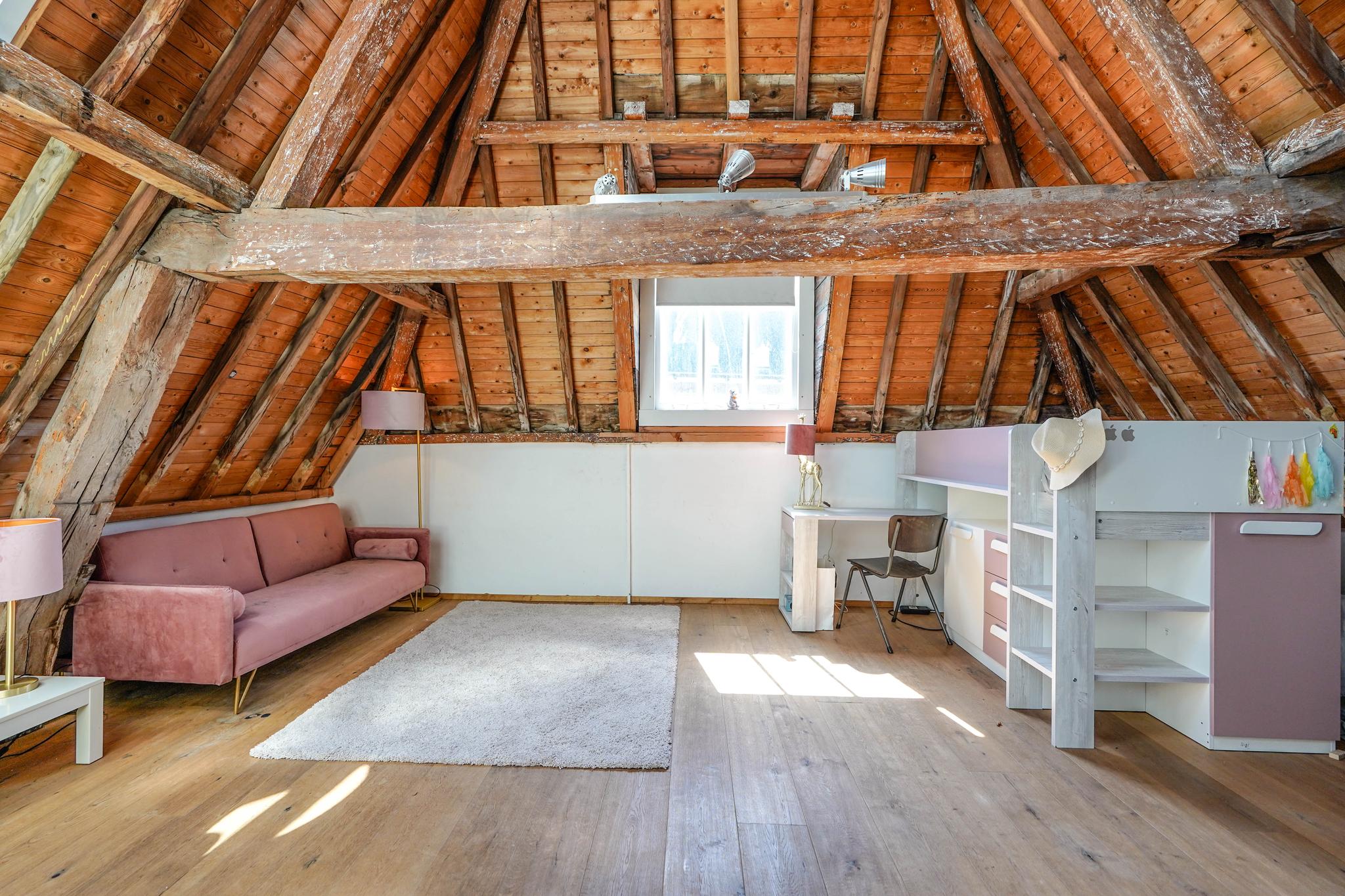The front house is the original main house. In addition to the currently rented ground floor with shop, you will now find the living room of no less than 70 m² on the 1st floor from which you overlook the Rhine and the Stadhuisplein. At the rear is the kitchen/diner with space. A lot of space. With 50 m², long worktops and a dining table that seats 12, this is now the heart of the house. From here there is also one of the passages to the back house along the courtyard, which provides a lot of light. The sleeping floors are one floor higher. Here the house has been peeled back to the structure with the beautiful wooden siding roof in full view. High Velux windows have been installed between the tracks, providing beautiful light at any time of the day. At the front you will find three bedrooms, a bathroom and, above all, plenty of storage space with fitted wardrobes and a linen room, spread over two floors. At the rear, the master bedroom with ensuite bathroom covers the entire roof with a ridge of no less than 8 meters high.