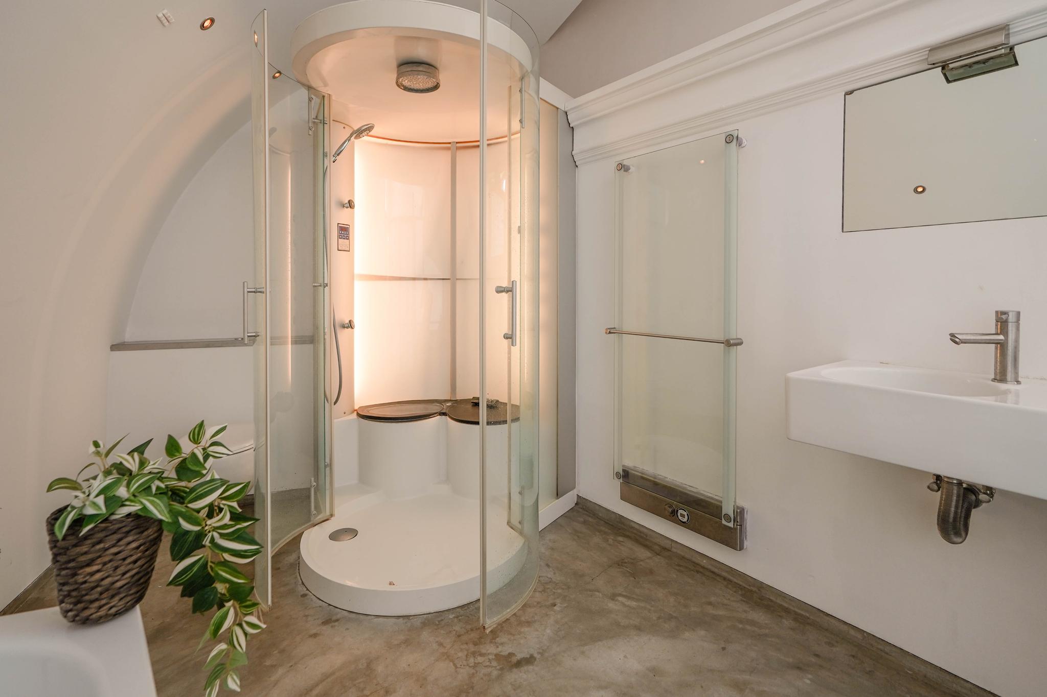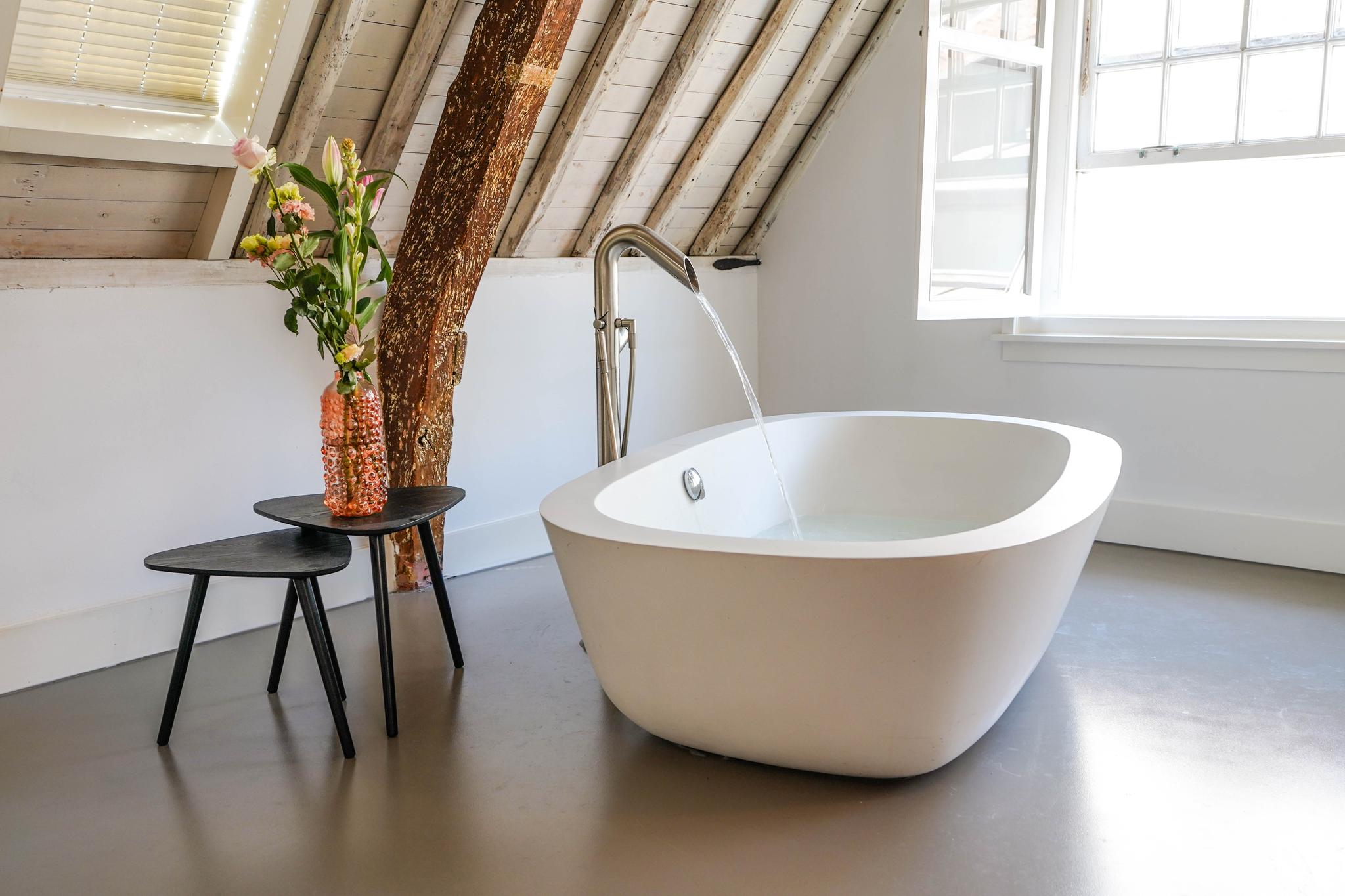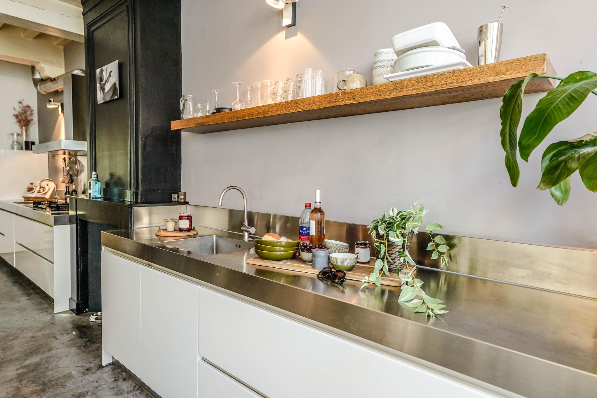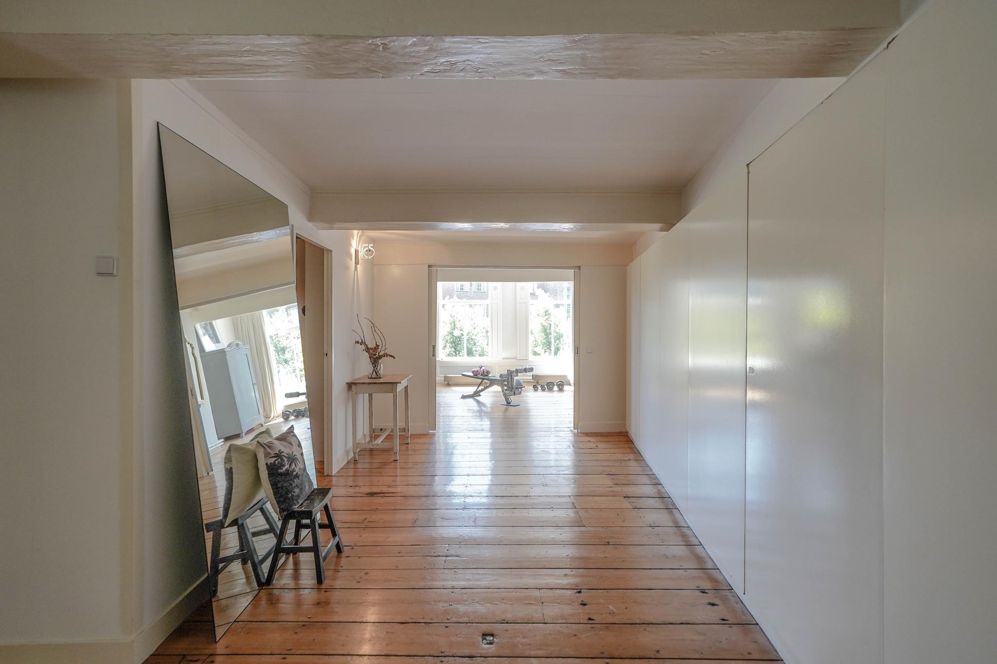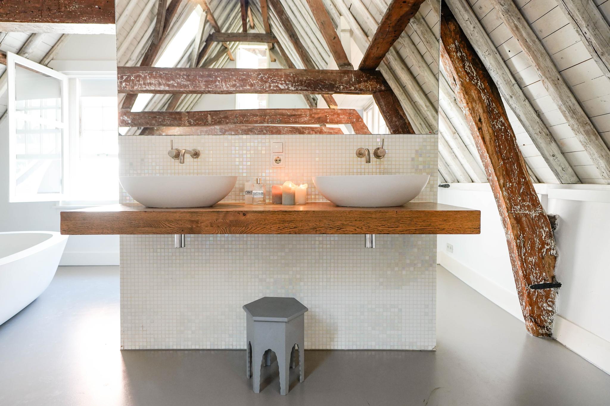 The front house is the original main house. In addition to the currently rented ground floor with shop, you will now find the living room of no less than 70 m² on the 1st floor from which you overlook the Rhine and the Stadhuisplein. At the rear is the kitchen/diner with space. A lot of space. With 50 m², long worktops and a dining table that seats 12, this is now the heart of the house. From here there is also one of the passages to the back house along the courtyard, which provides a lot of light. The sleeping floors are one floor higher. Here the house has been peeled back to the structure with the beautiful wooden siding roof in full view. High Velux windows have been installed between the tracks, providing beautiful light at any time of the day. At the front you will find three bedrooms, a bathroom and, above all, plenty of storage space with fitted wardrobes and a linen room, spread over two floors. At the rear, the master bedroom with ensuite bathroom covers the entire roof with a ridge of no less than 8 meters high.
