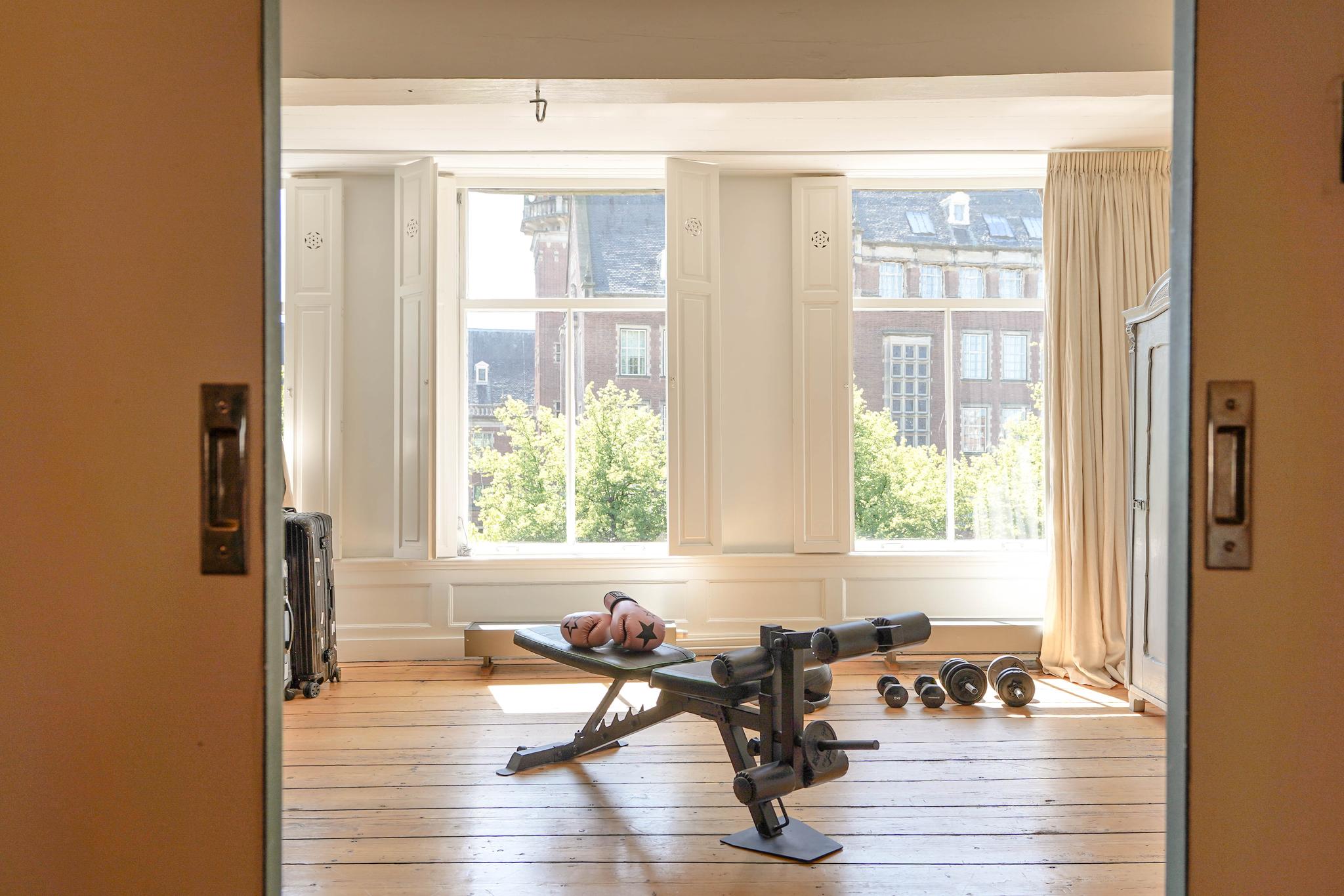 The rear house is oriented towards the garden and the castle hill. From the various rooms you can see the Burggraaf's old home through beautiful high windows: an 800-year-old oasis of greenery in the middle of the city center. Here the current owner has a garden room on the ground floor with an extra kitchen. You also need this, because having to go through the entire building every time for a snack or drink when you're sitting in the garden is a bit much to ask. There are quite some distances you can cover here. There is now a second living room on the 1st floor. with high ceilings, a fireplace and the best view of the Castle. It could also make a lovely office or library. Upstairs is a separate guesthouse with private bathroom and toilet. An aupair could also have a very nice place here.