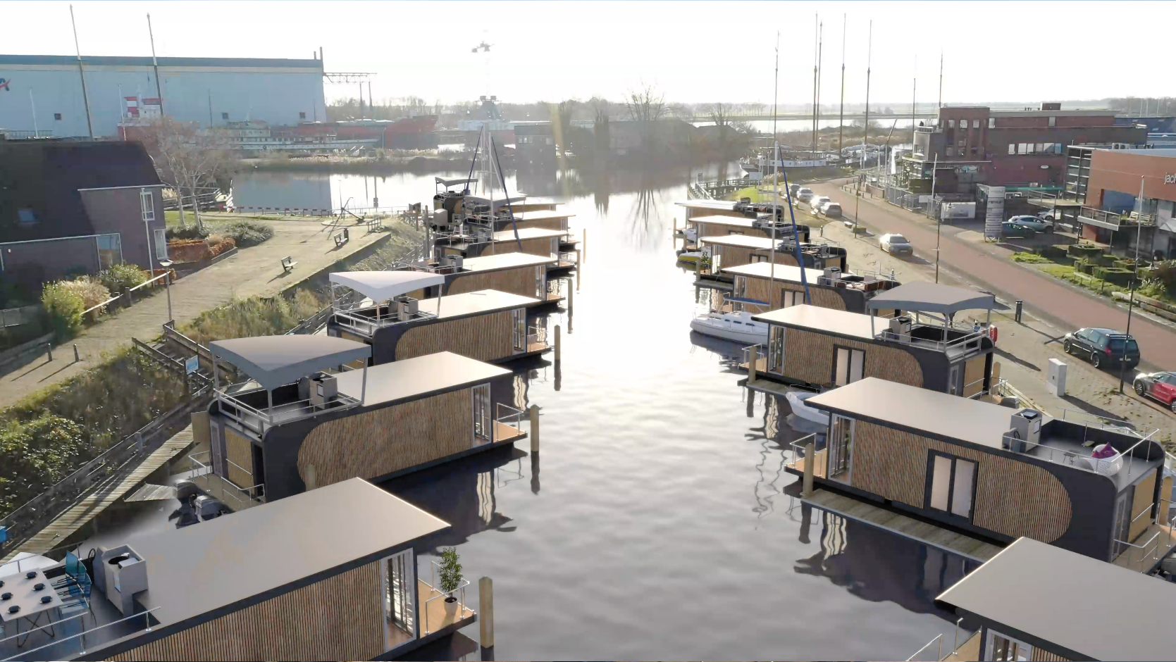 For an impression of the houseboat and the new marina layout with houseboats, see both videos.