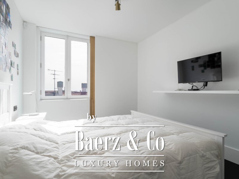 Inside the apartment, the floor of the social areas and bedrooms is solid wood painted in black. All bathrooms have marble stone finishes and underfloor heating. All rooms also have integrated air conditioning and wardrobes.