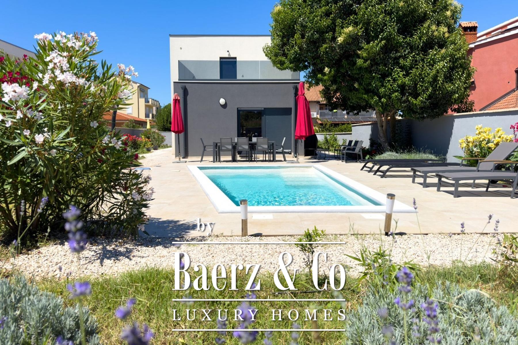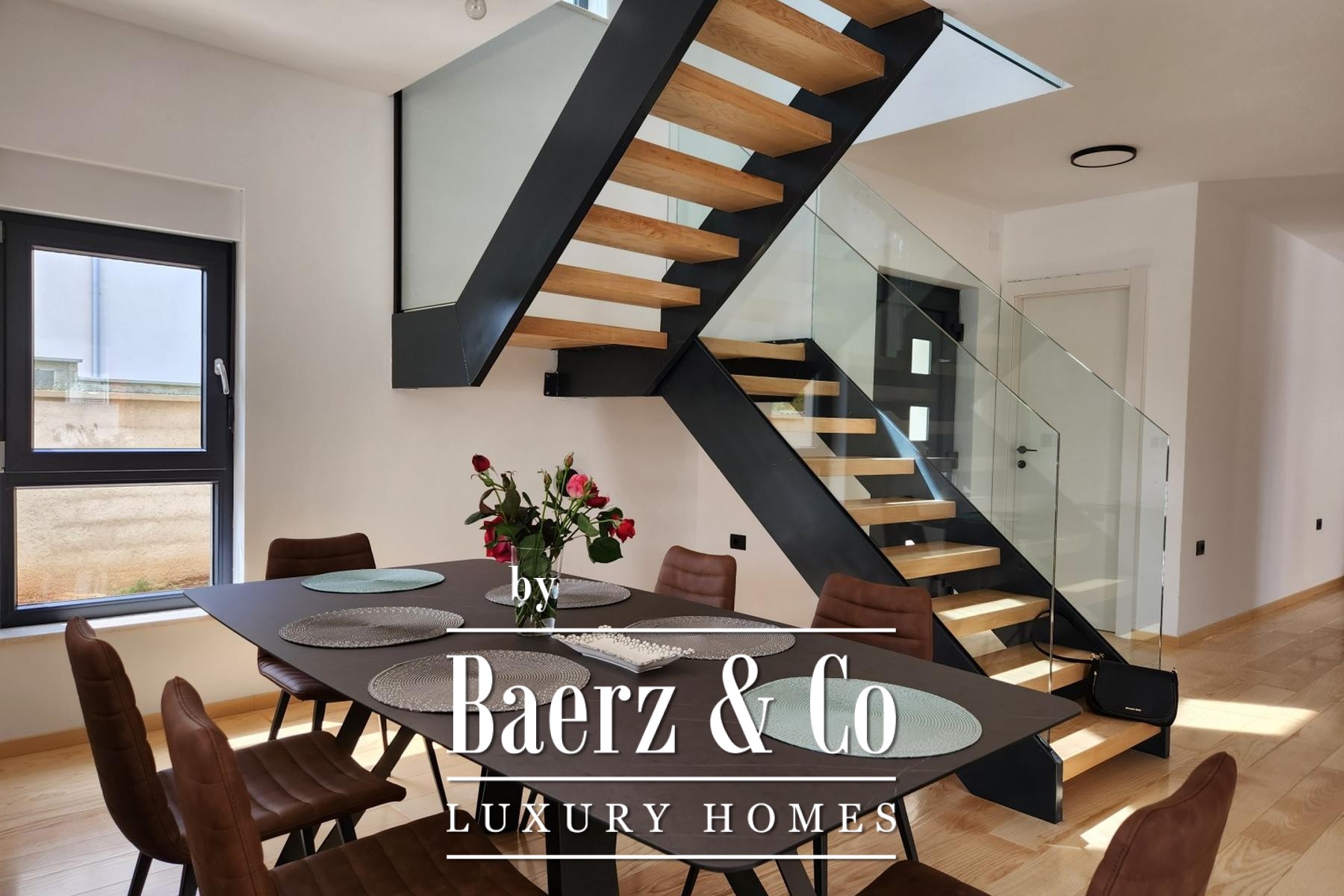 Townhouse Ližnjan offers a refined contemporary living experience on Croatia’s southern Istrian peninsula. This 180 m² townhouse is defined by its clear architectural lines and thoughtful layout, set discreetly within a 550 m² landscaped garden. The sunlit southern terrace frames a generous swimming pool and an outdoor grill, ideal for quiet leisure or understated social gatherings.
