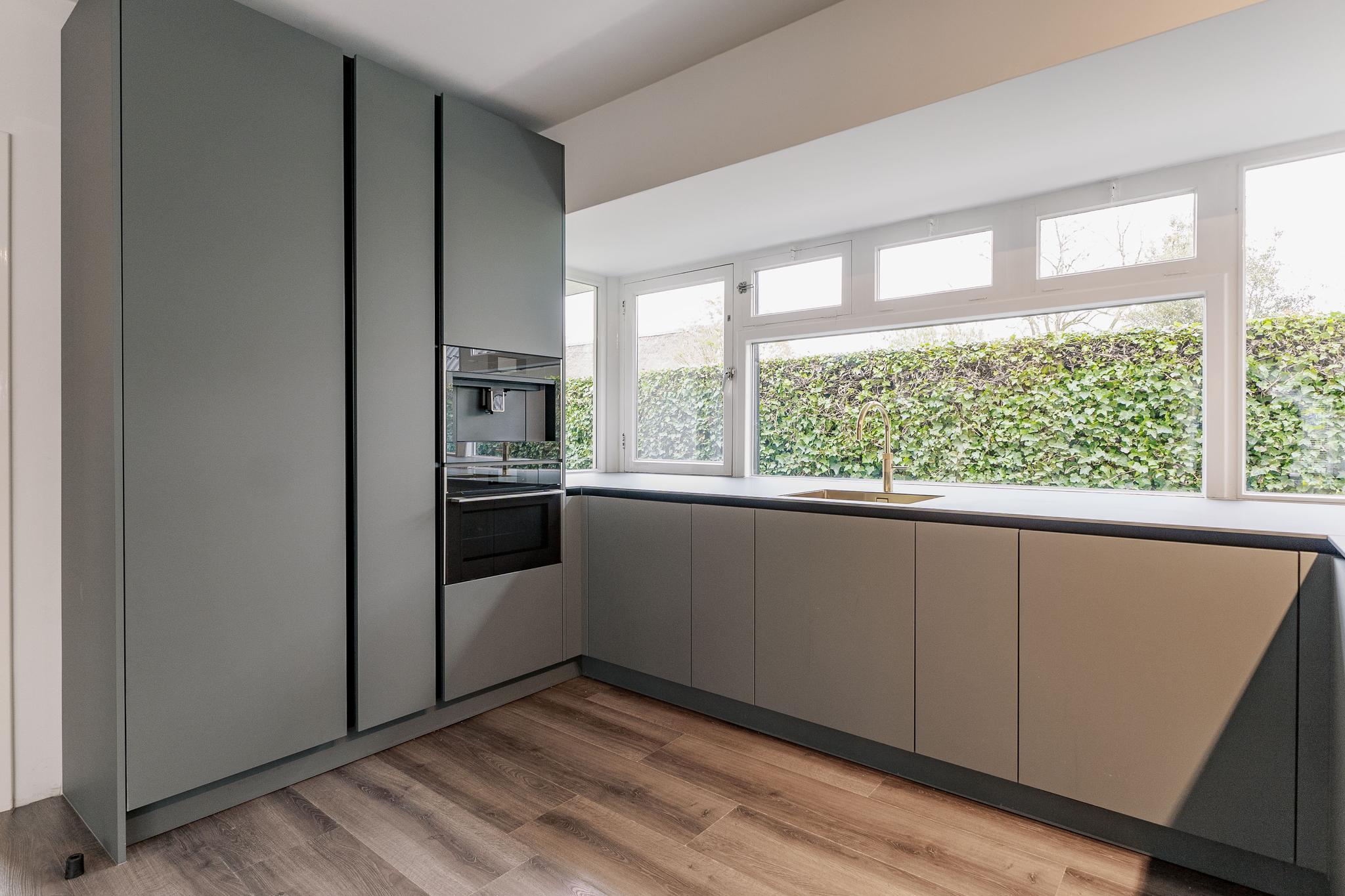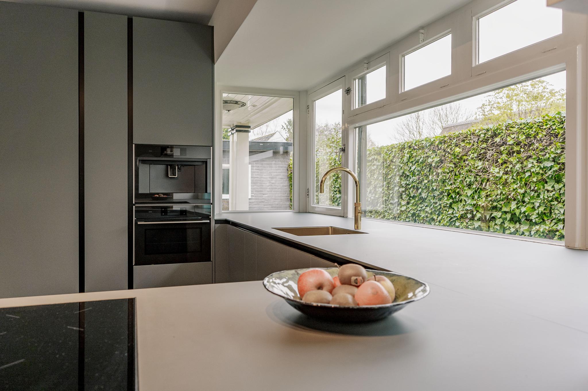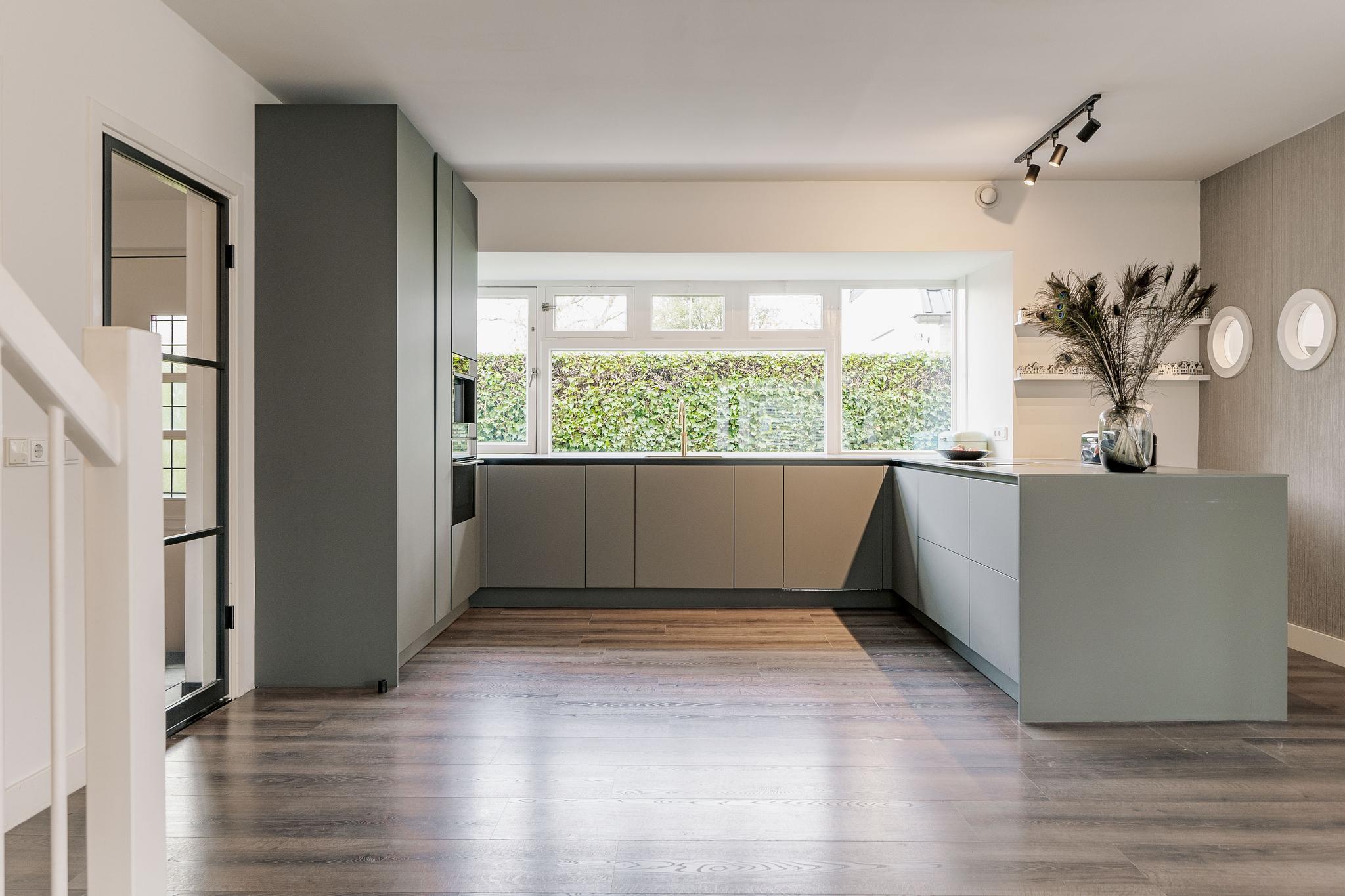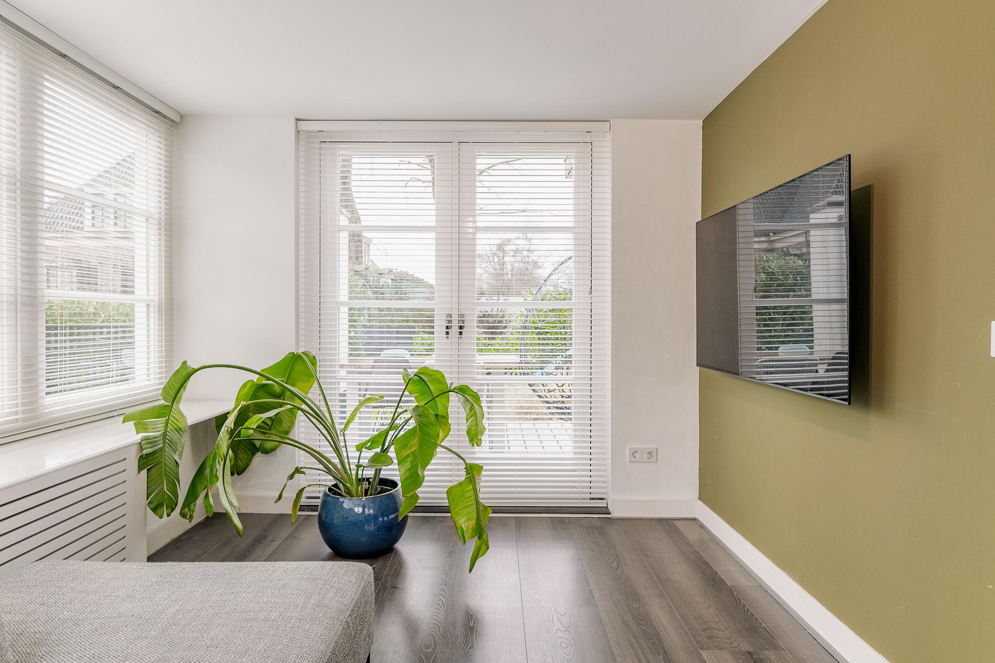 Begane grond: Bij binnenkomst word je verwelkomd in een ruime hal met garderobe en een toilet met fontein. De royale woonkamer, voorzien van een sfeervolle houtkachel, sluit aan op een lichte open keuken. De gezellige zitkamer heeft openslaande deuren naar een terras, terwijl de aparte werkkamer eveneens via openslaande deuren toegang biedt tot de tuin. Aan de voorzijde van de woning bevindt zich een aparte werk- of televisiekamer.