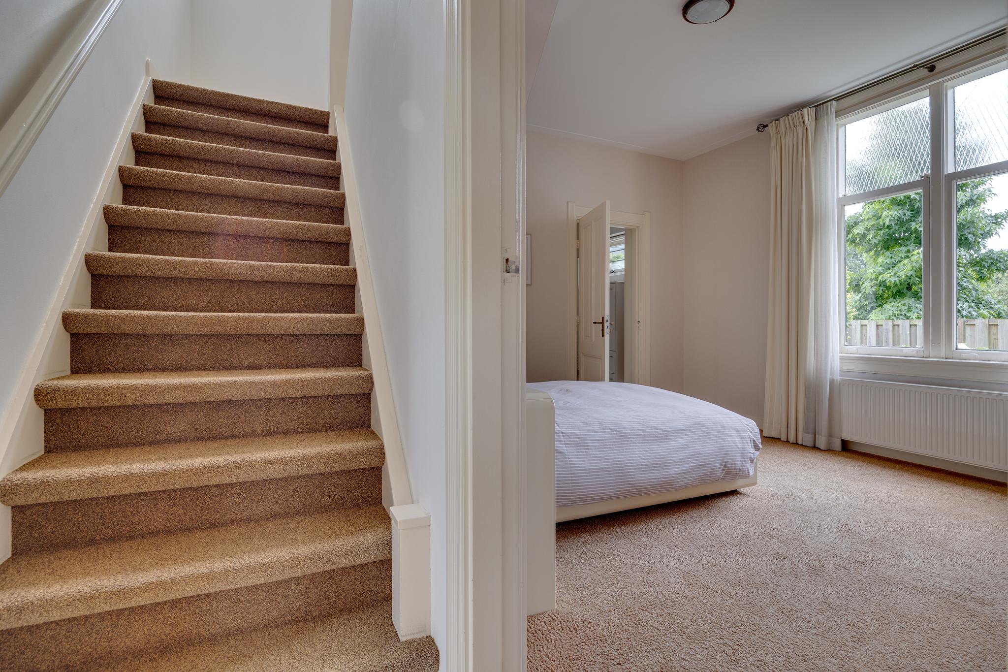 Begane grond: bij binnenkomst in de hal treft u een toilet met fonteintje. De ruime woonkamer, met originele raampartijen, straalt sfeer en karakter uit. De master bedroom is voorzien van een en-suite badkamer met toilet, douche en wastafel. De royale leefkeuken, die uitkijkt op de achtertuin, grenst aan een bijkeuken waar zich de wasmachine opstelling bevindt. De keuken is voorzien van diverse inbouwapaprtauur zoals: 5-pits gasfornuis, afzuigkap, vaatwasser en koelkast. Vanuit de keuken is tevens een ruime stahoge kelder bereikbaar.