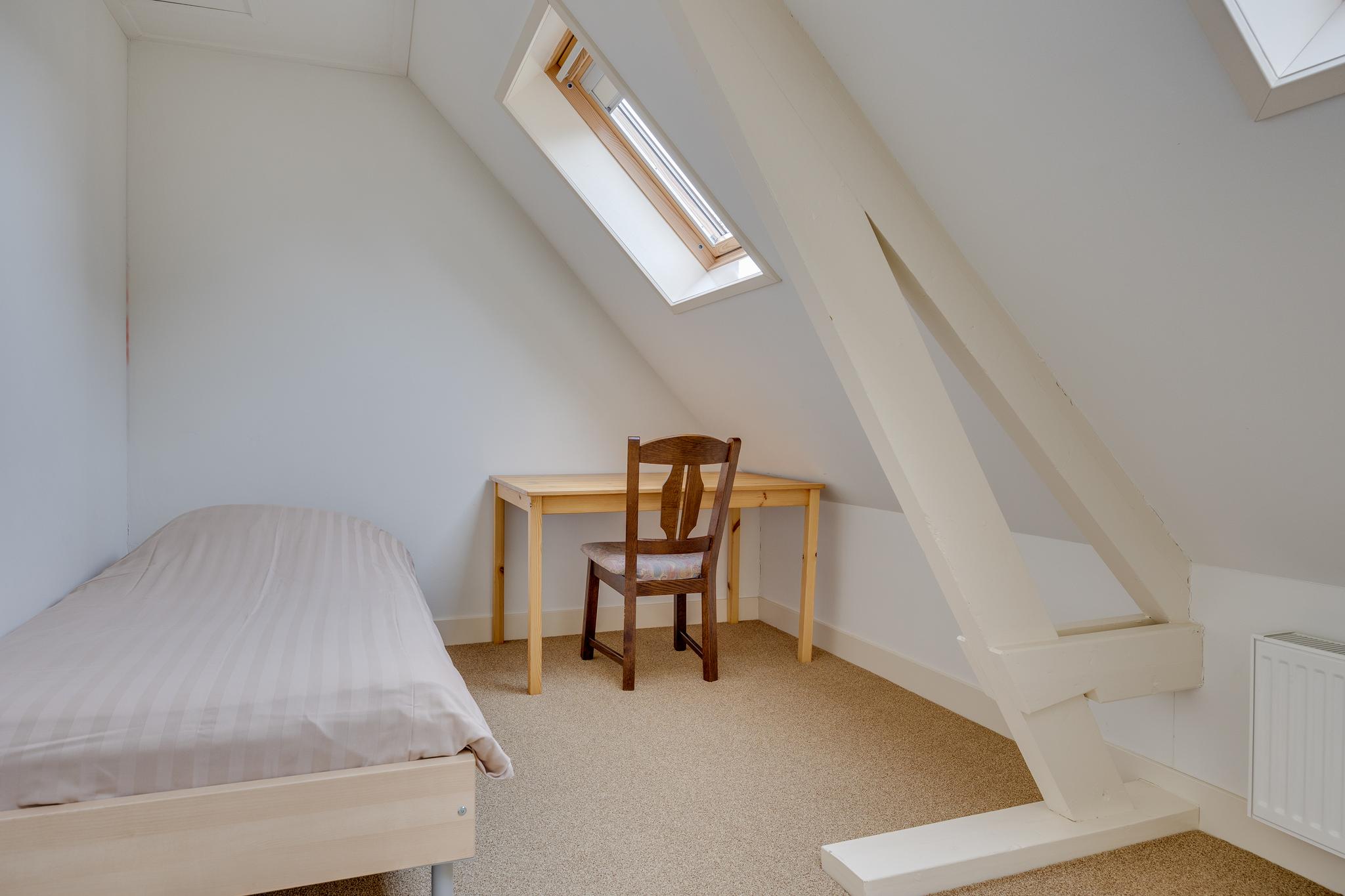 Eerste verdieping: de overloop biedt toegang tot twee slaapkamers van verschillende afmetingen en een badkamer met douche/ligbad en wastafel. Er is volop bergruimte en de indeling kan eenvoudig worden aangepast om extra slaapkamers te creëren.