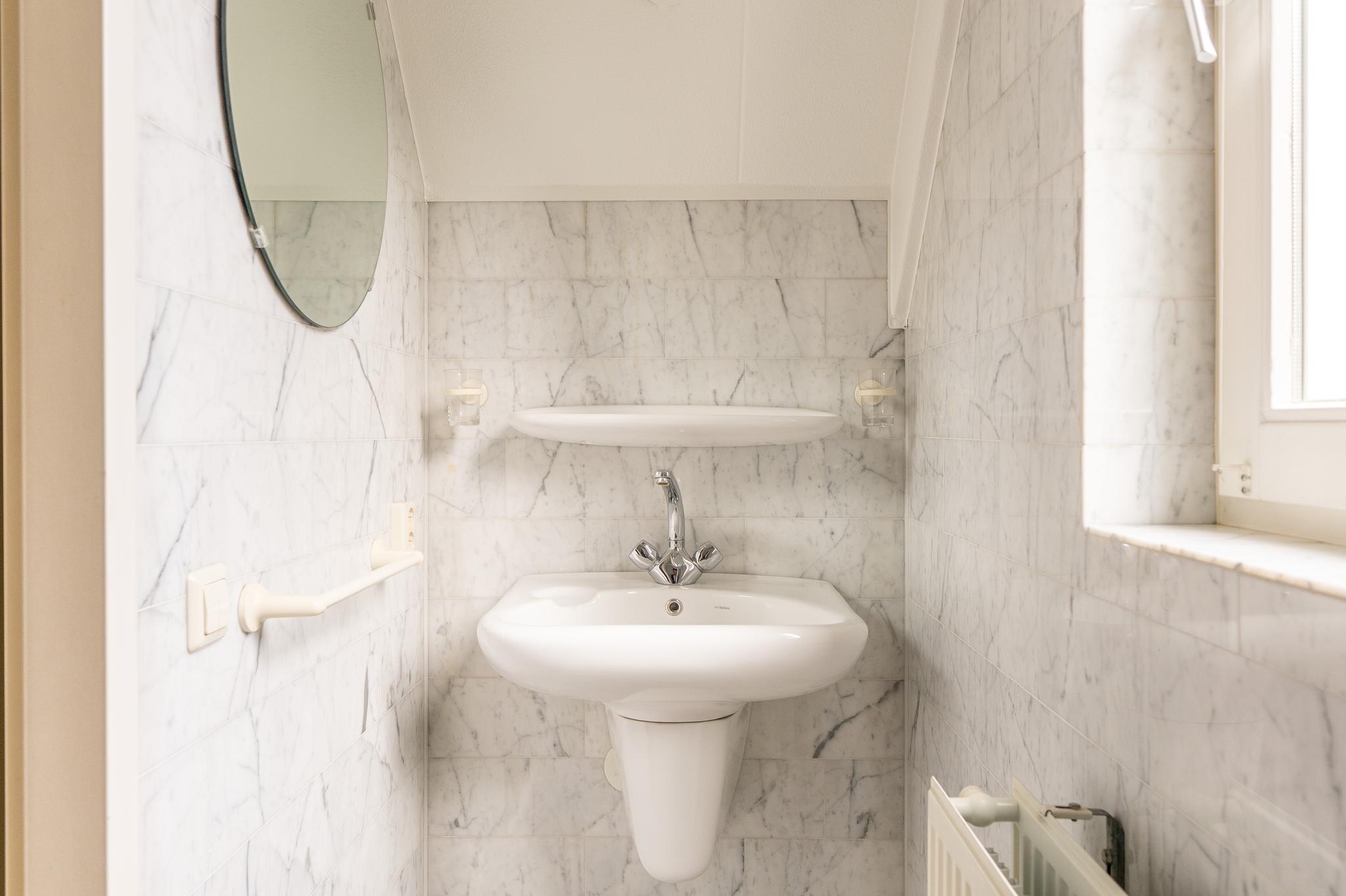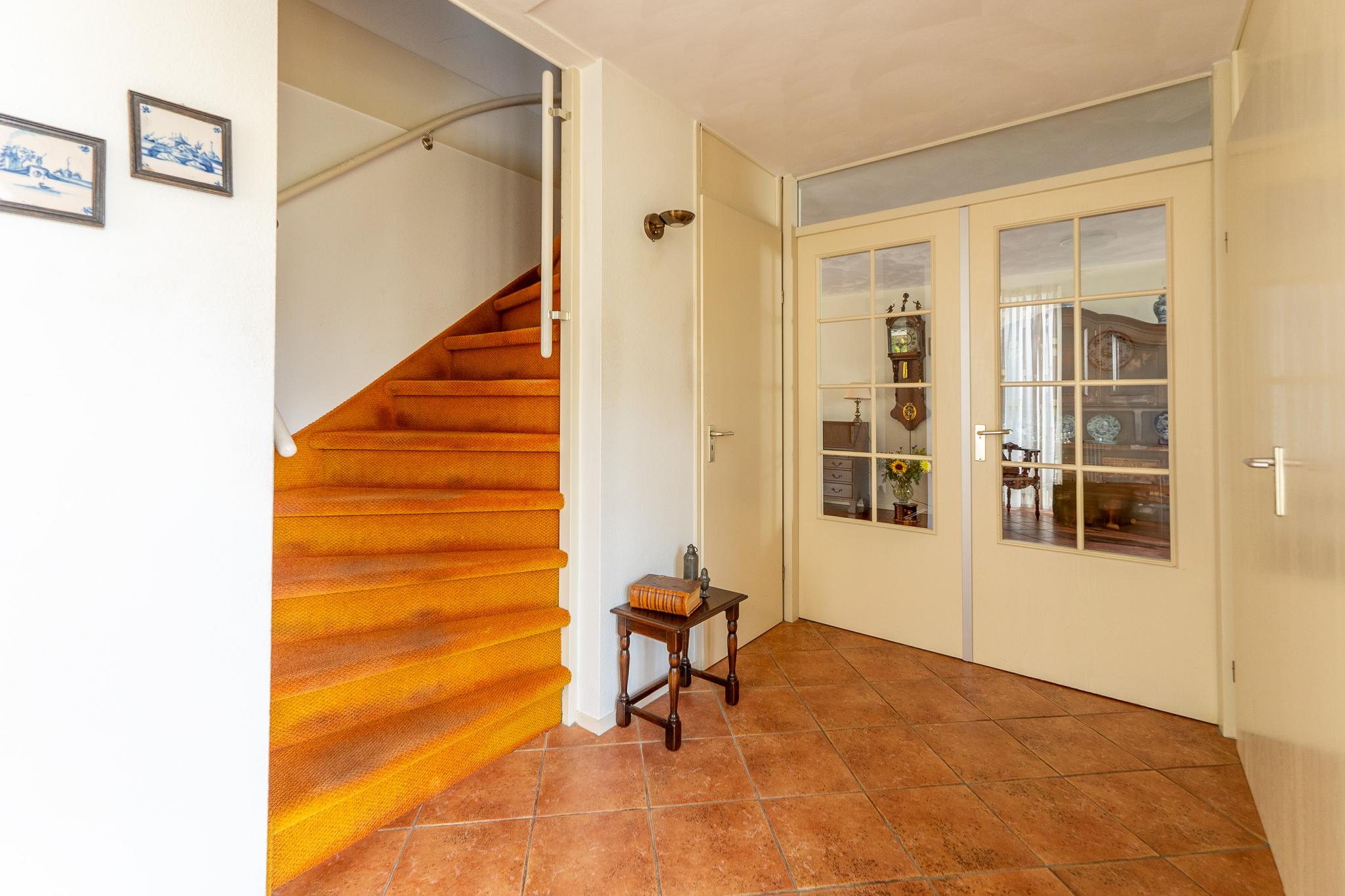 Via de ruime entree/hal betreedt u de woning. Hier vindt u de meterkast, een royale garderobekast en een separaat toilet. Onder de trap naar de eerste verdieping bevindt zich extra kastruimte.
