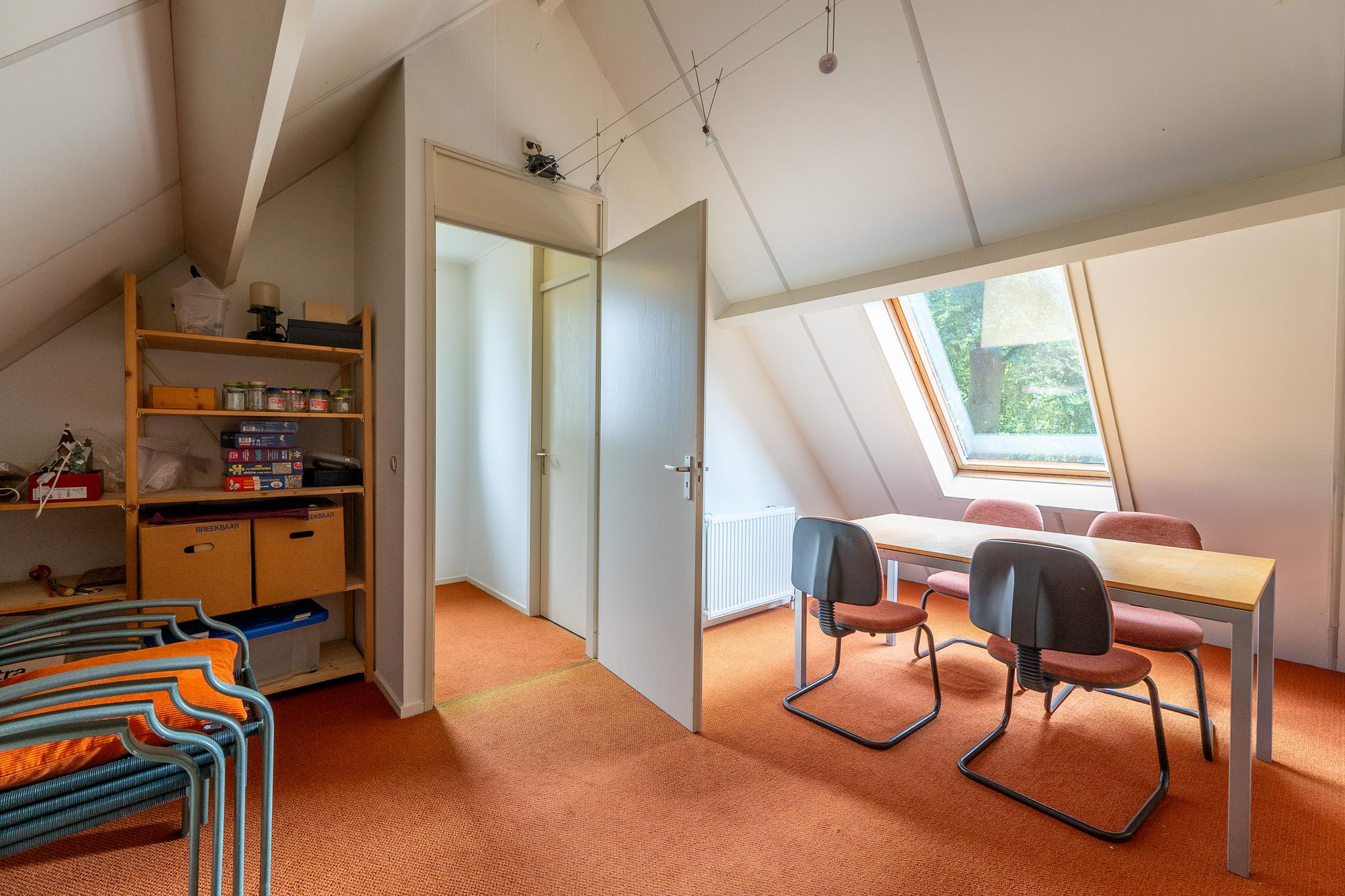 Tweede verdieping: middels een vaste trapopgang bereikt u de ruime zolderkamer (vierde slaapkamer) met dakraam. Daarnaast is er een separate bergruimte met de CV-ketel.