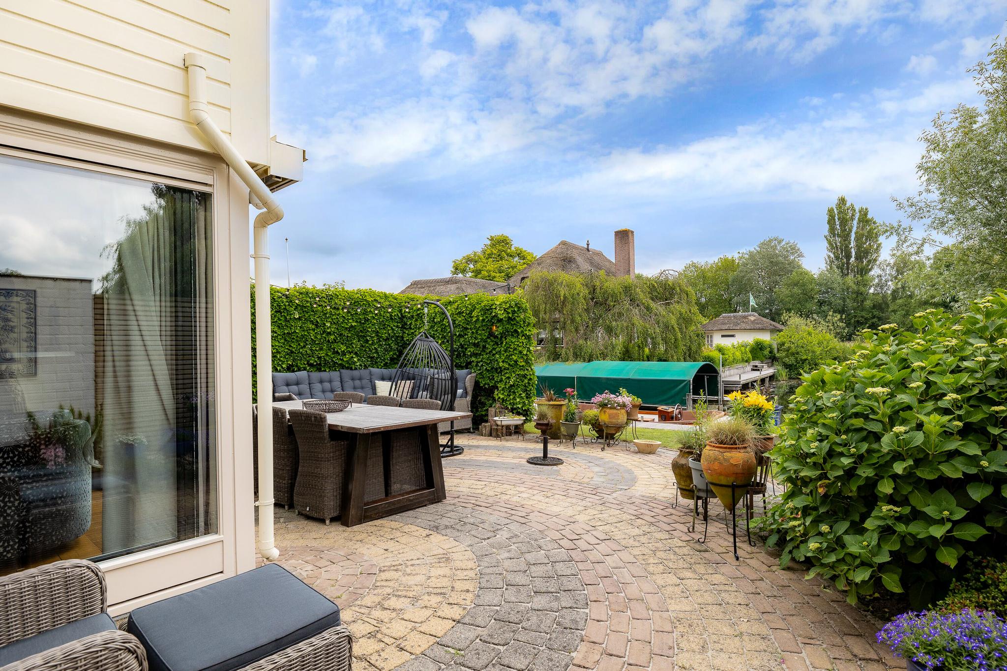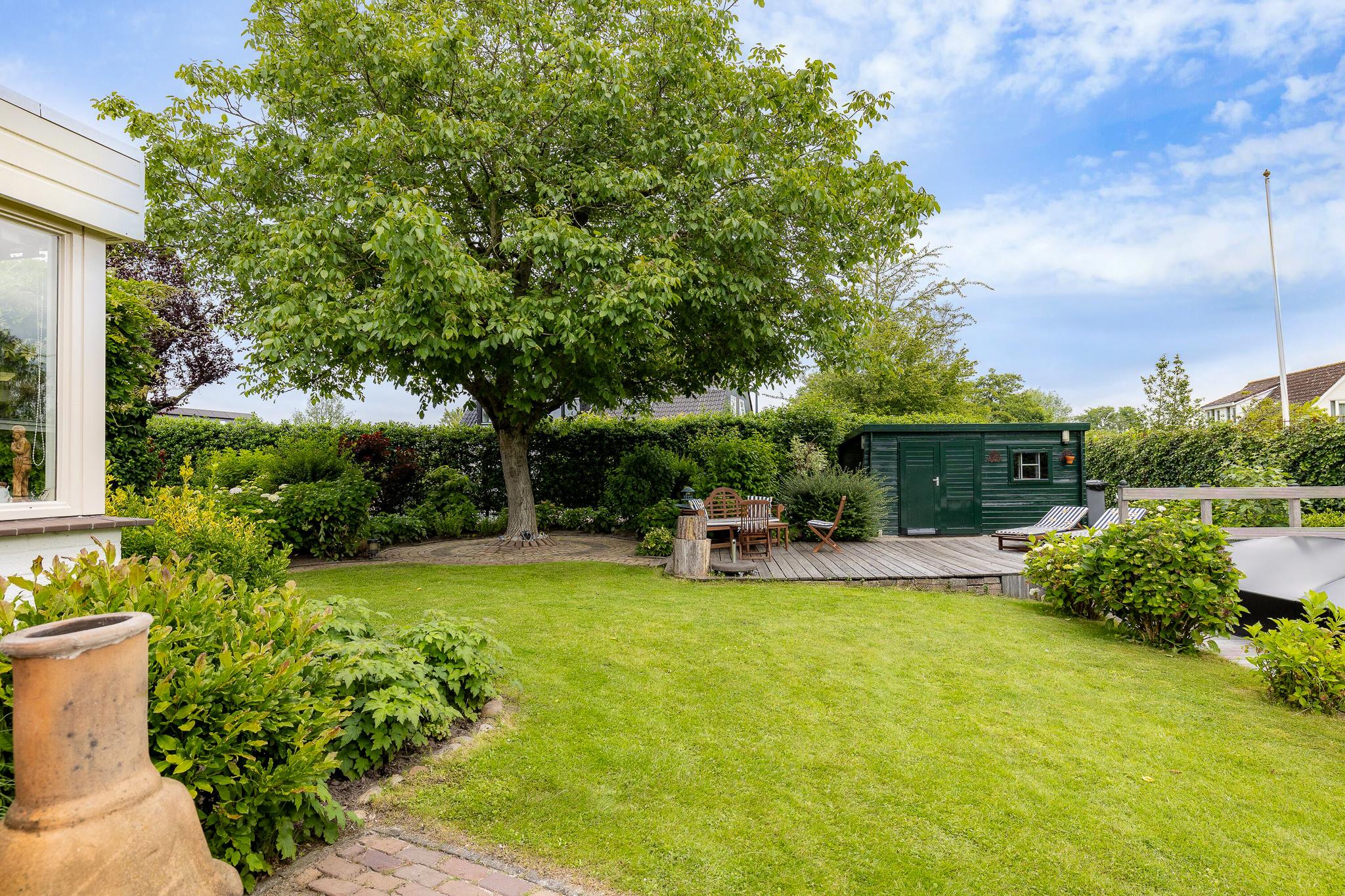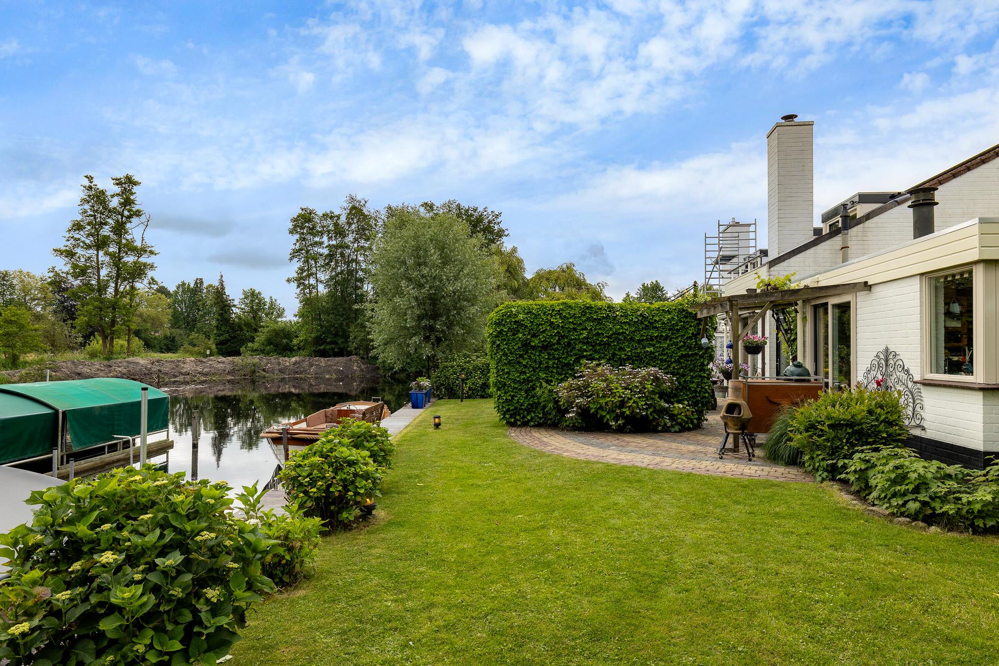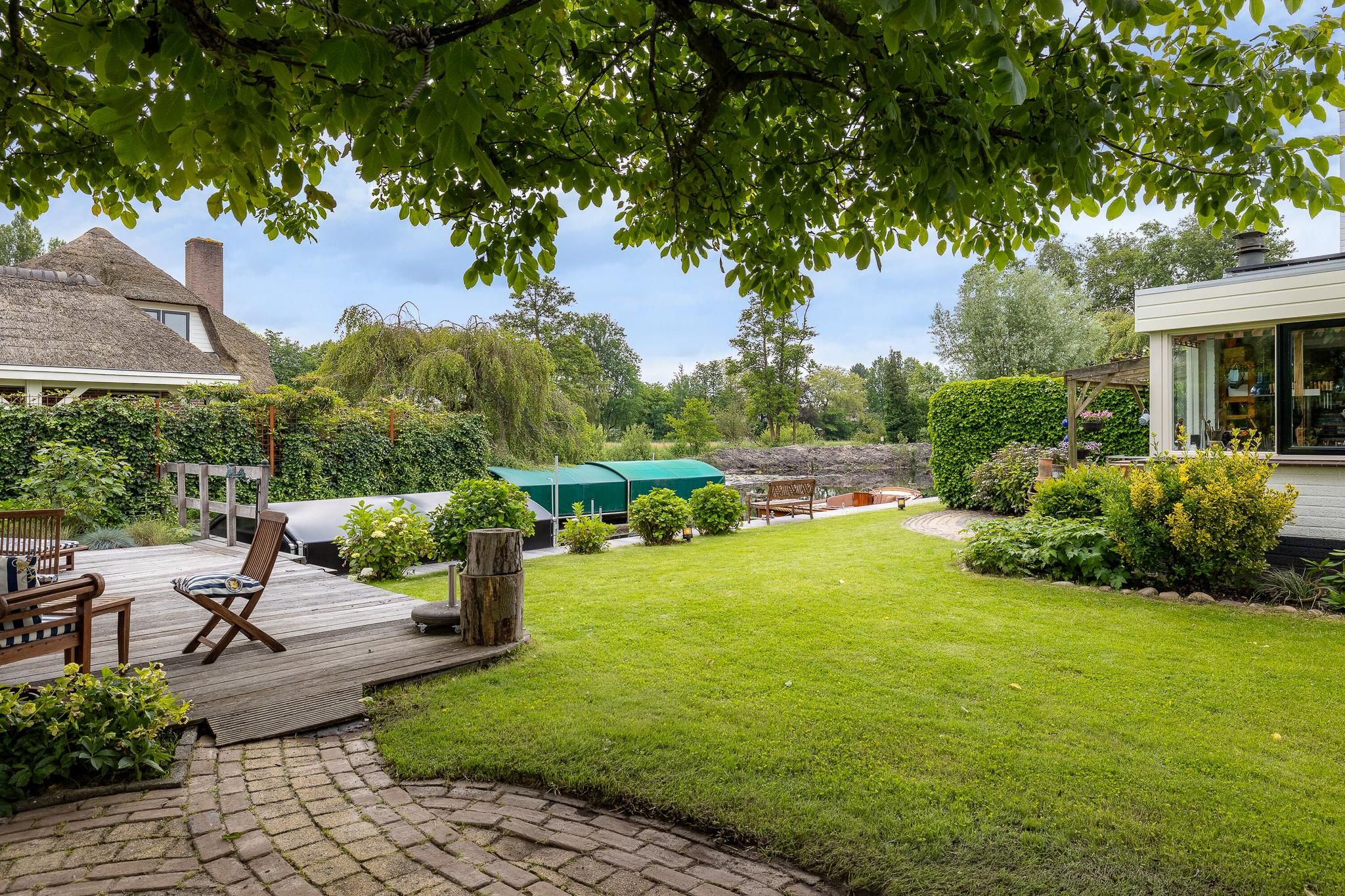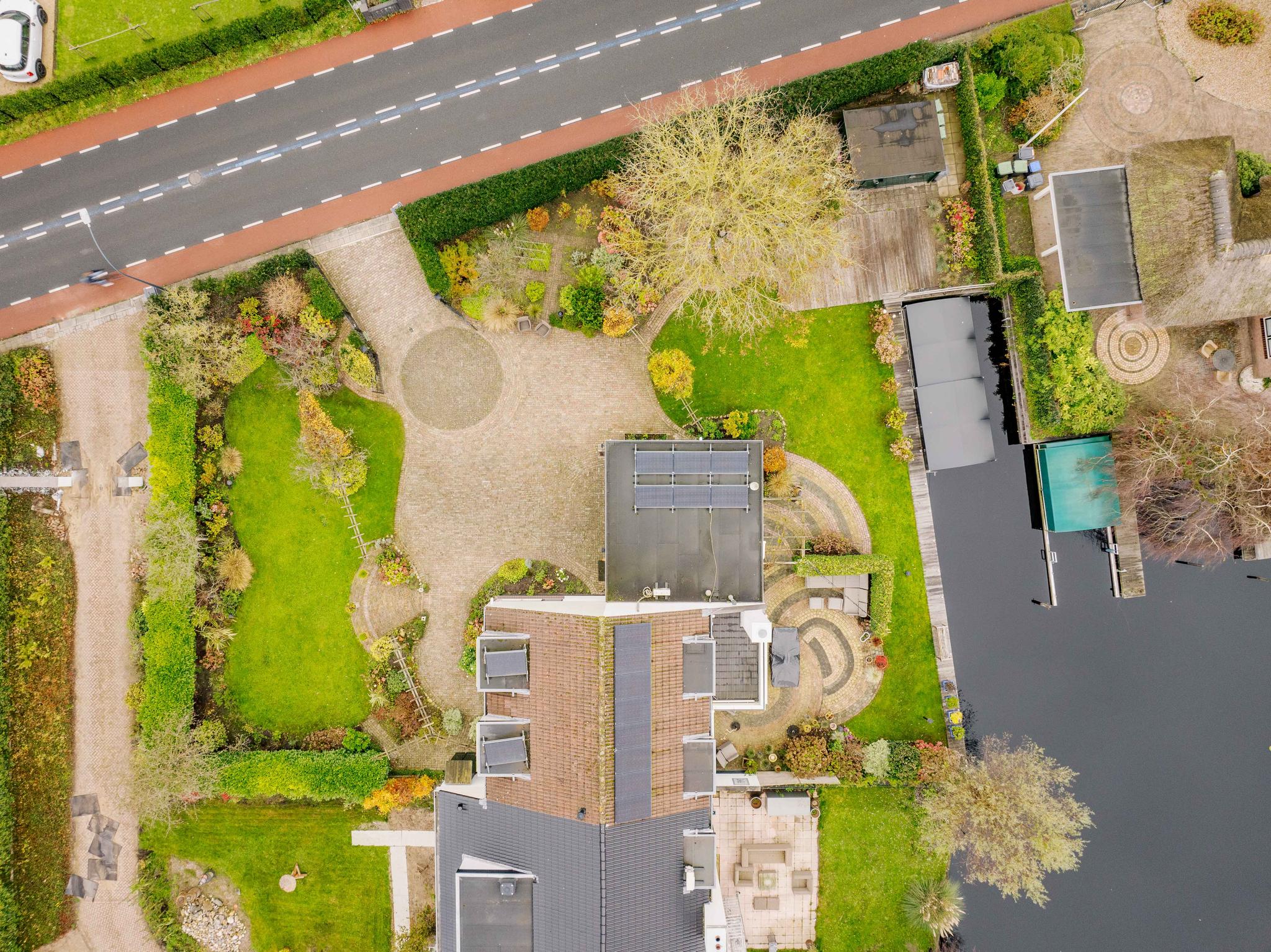 Perceel: in de tuin zijn diverse terrassen gecreëerd zowel aan de waterzijde als grenzend aan de woning. Hierdoor is altijd een plekje in de zon of schaduw te vinden. Aan de waterzijde is een steiger gecreëerd met "boatsaver" waardoor het mogelijk is uw boot overdekt te leggen. Het perceel biedt tevens de mogelijkheid voor het parkeren van meerdere auto's en is afsluitbaar middels elektrische poort.