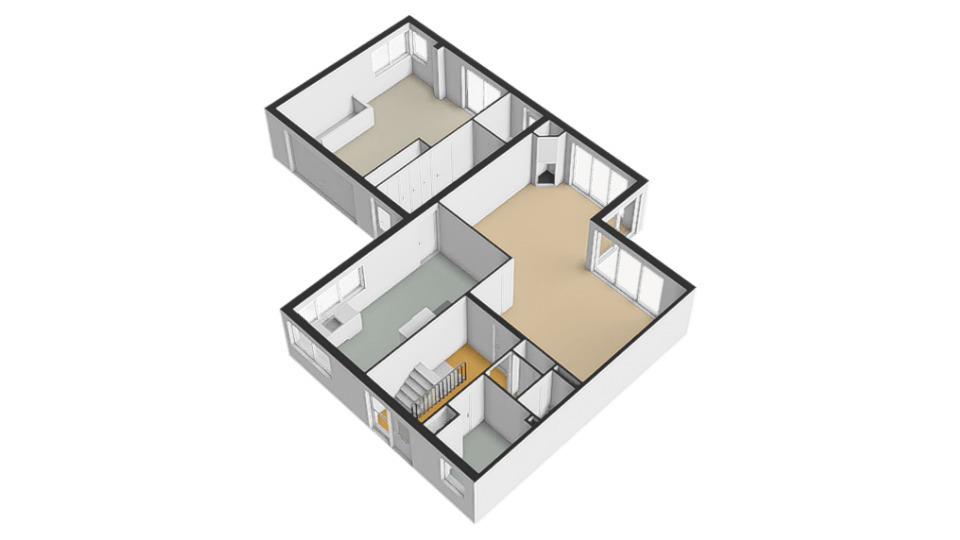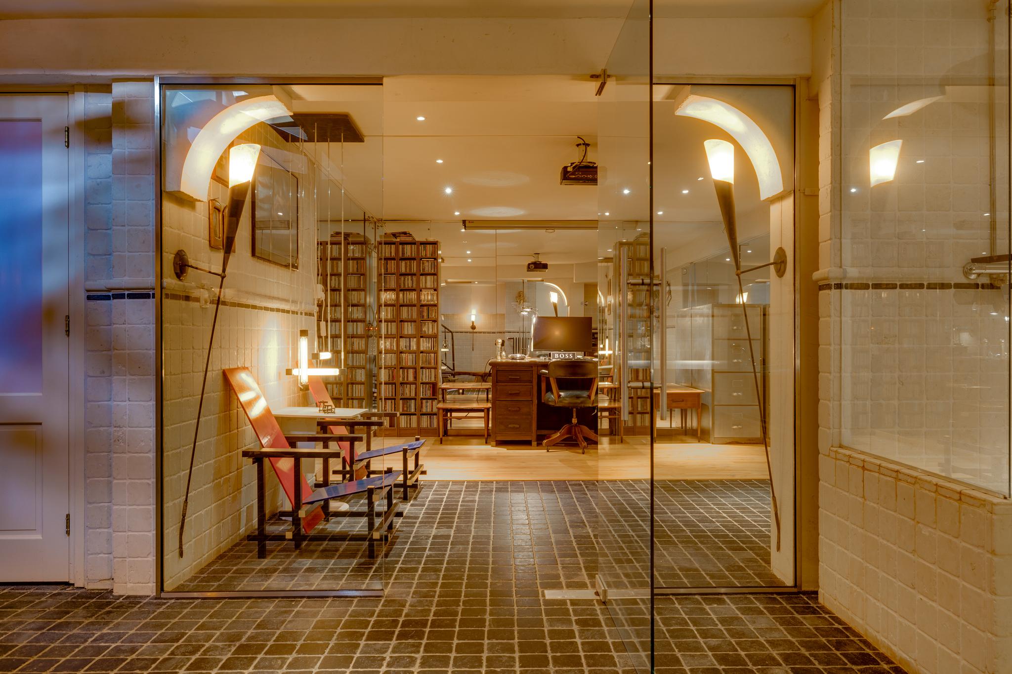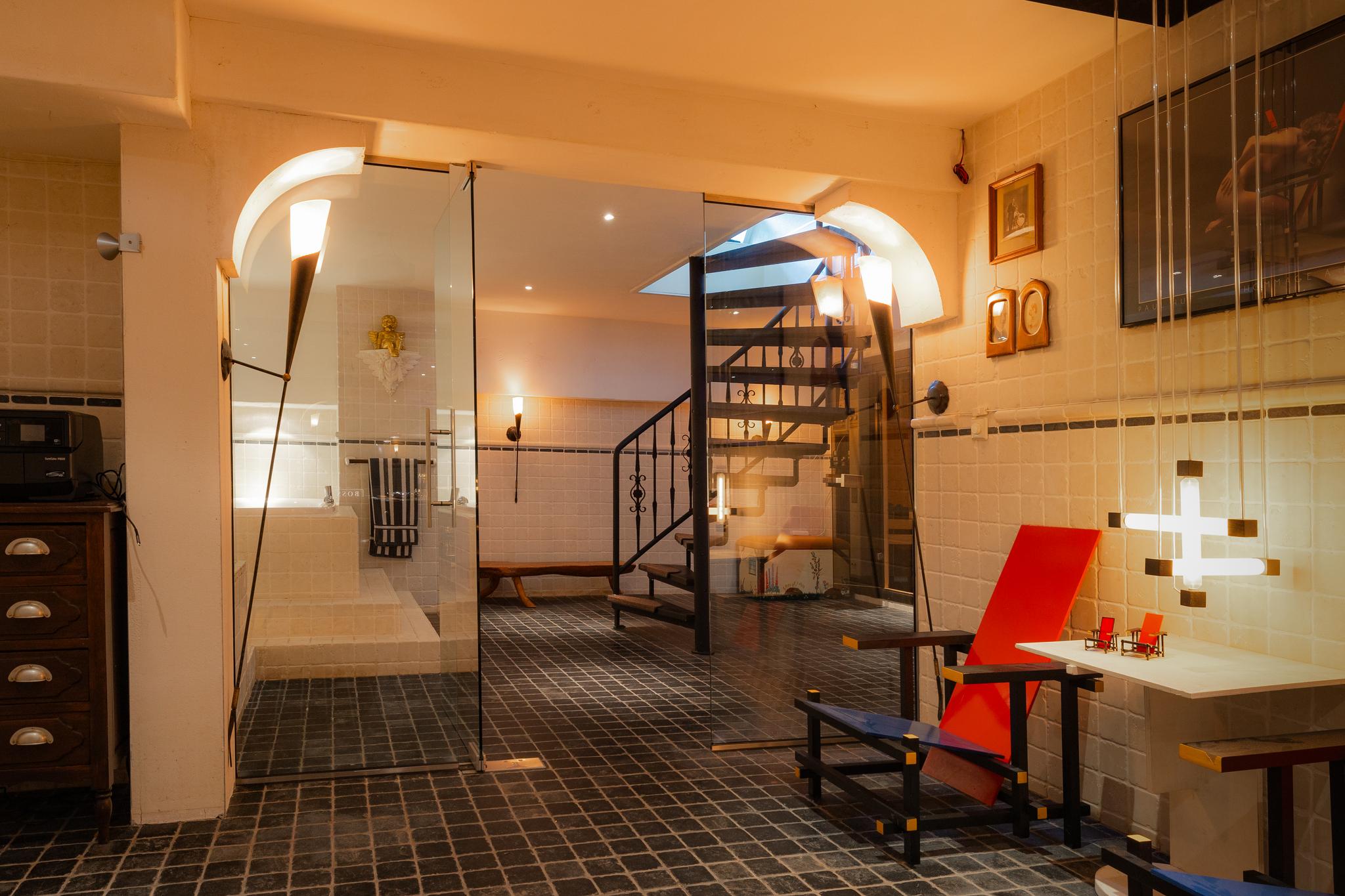 Het kantoor is middels de spa te bereiken, door de spiegelwand is deze ook goed in te richten als bijvoorbeeld een gym aan huis.