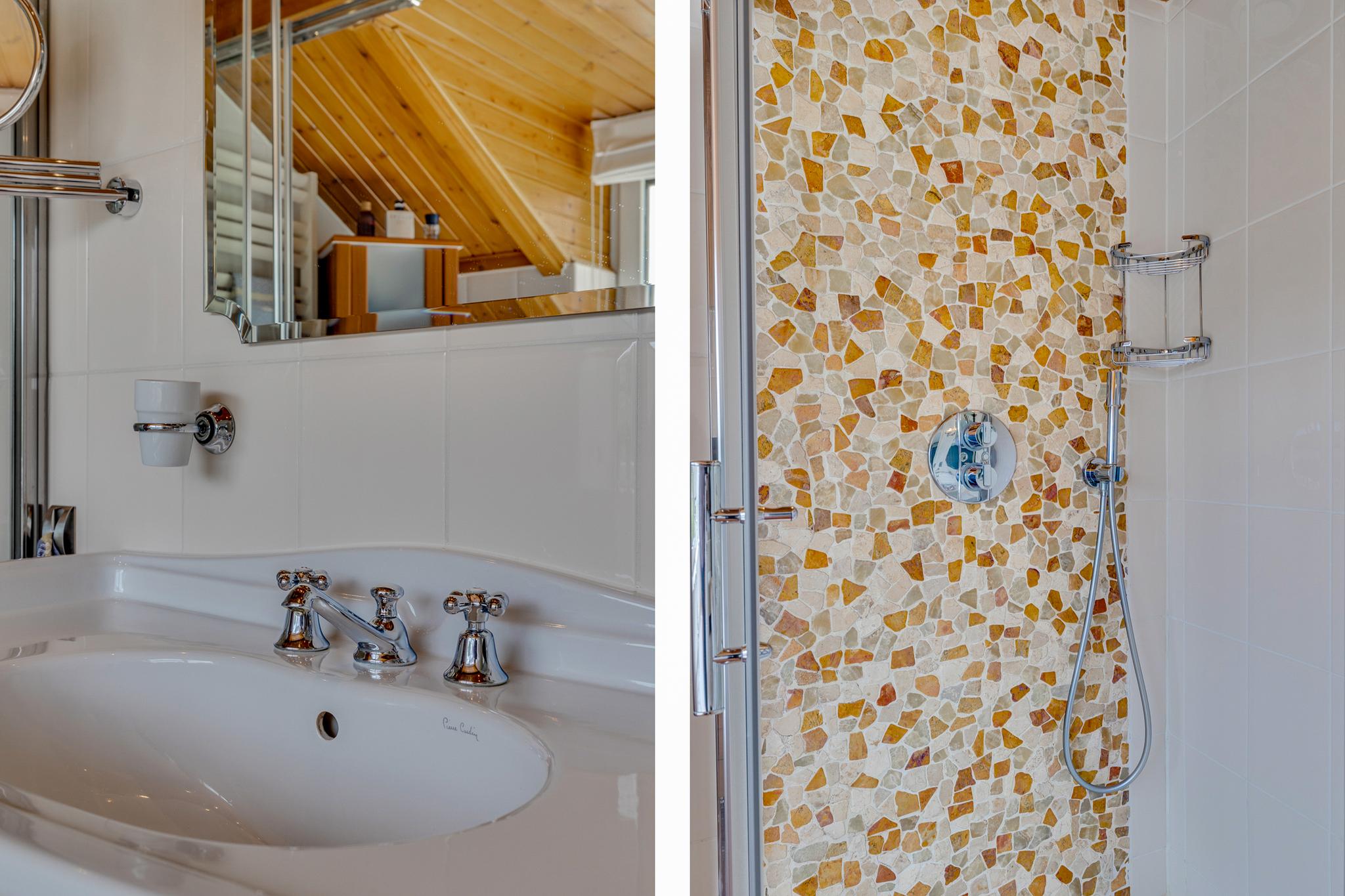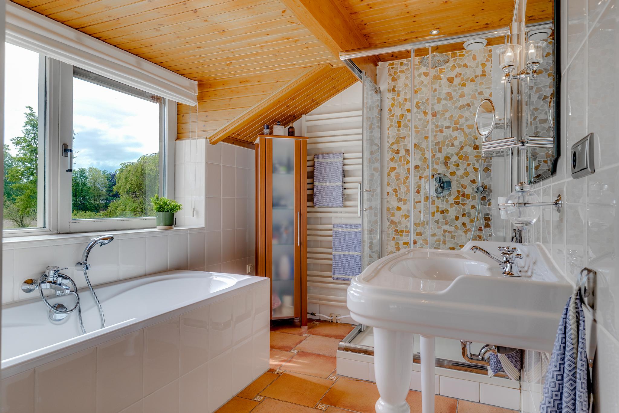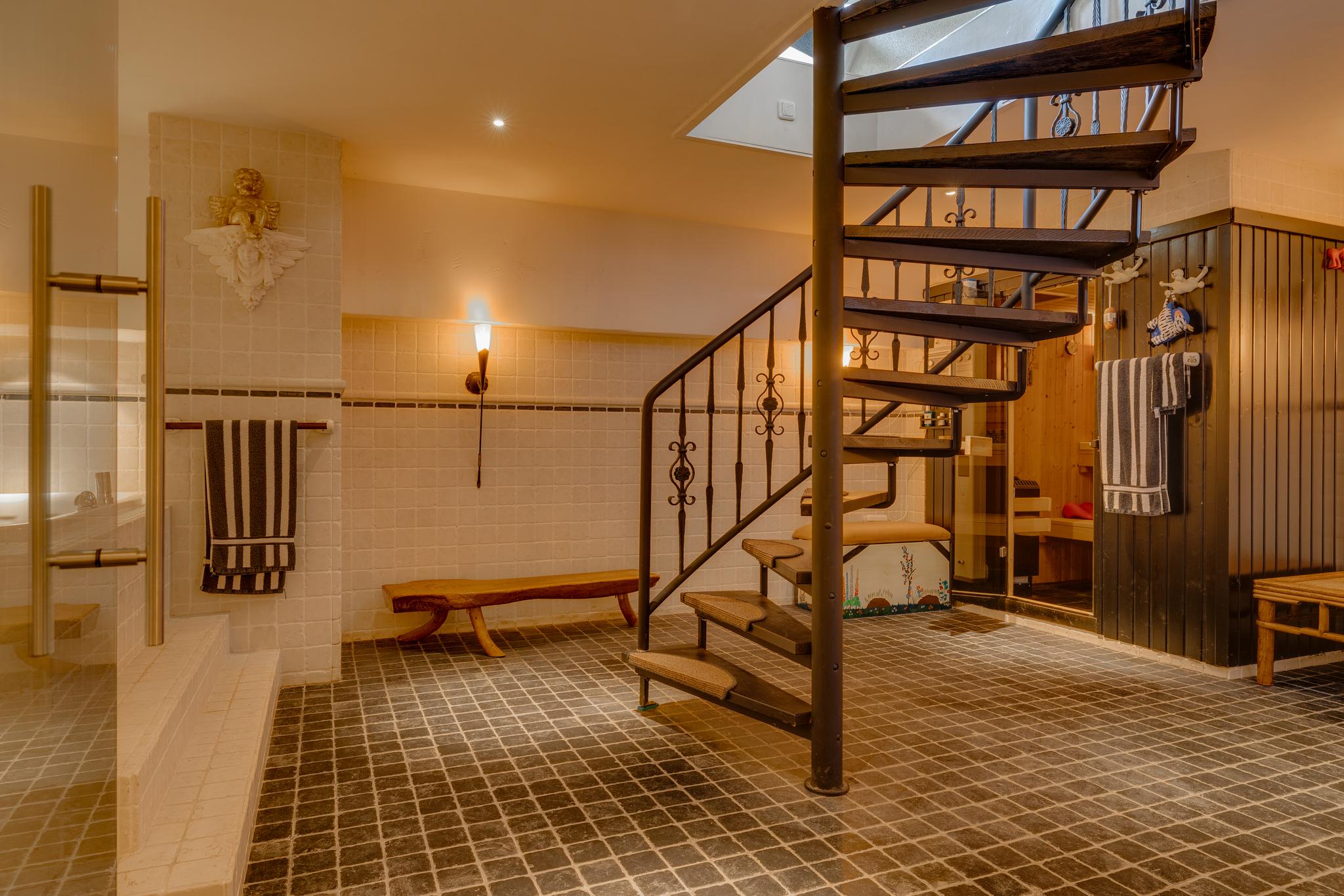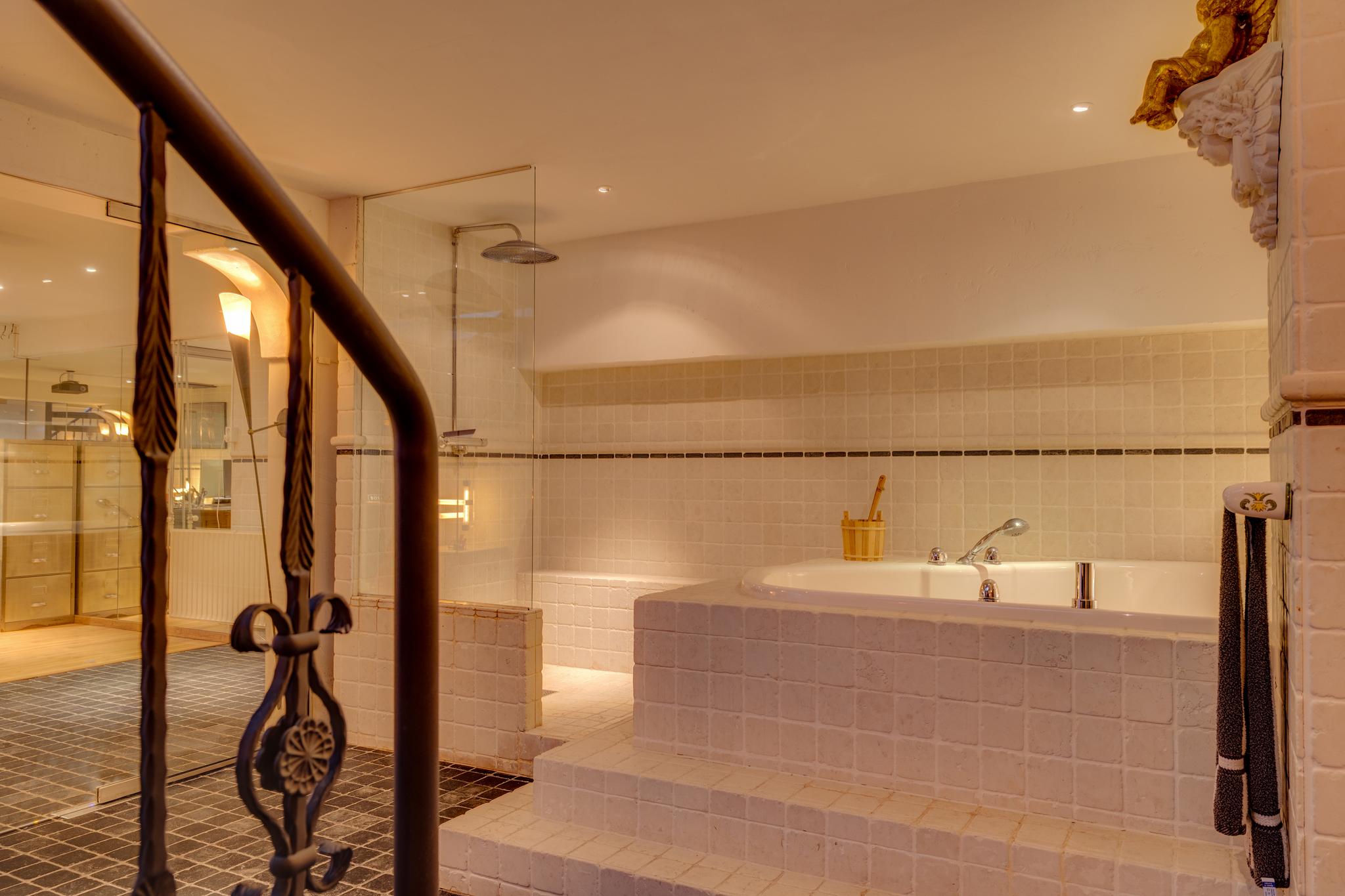 Voor wat meer rust kunt u terecht in de spa met regendouche, jacuzzi en sauna van ca. 2x2. Ook het toilet bevindt zich hier.