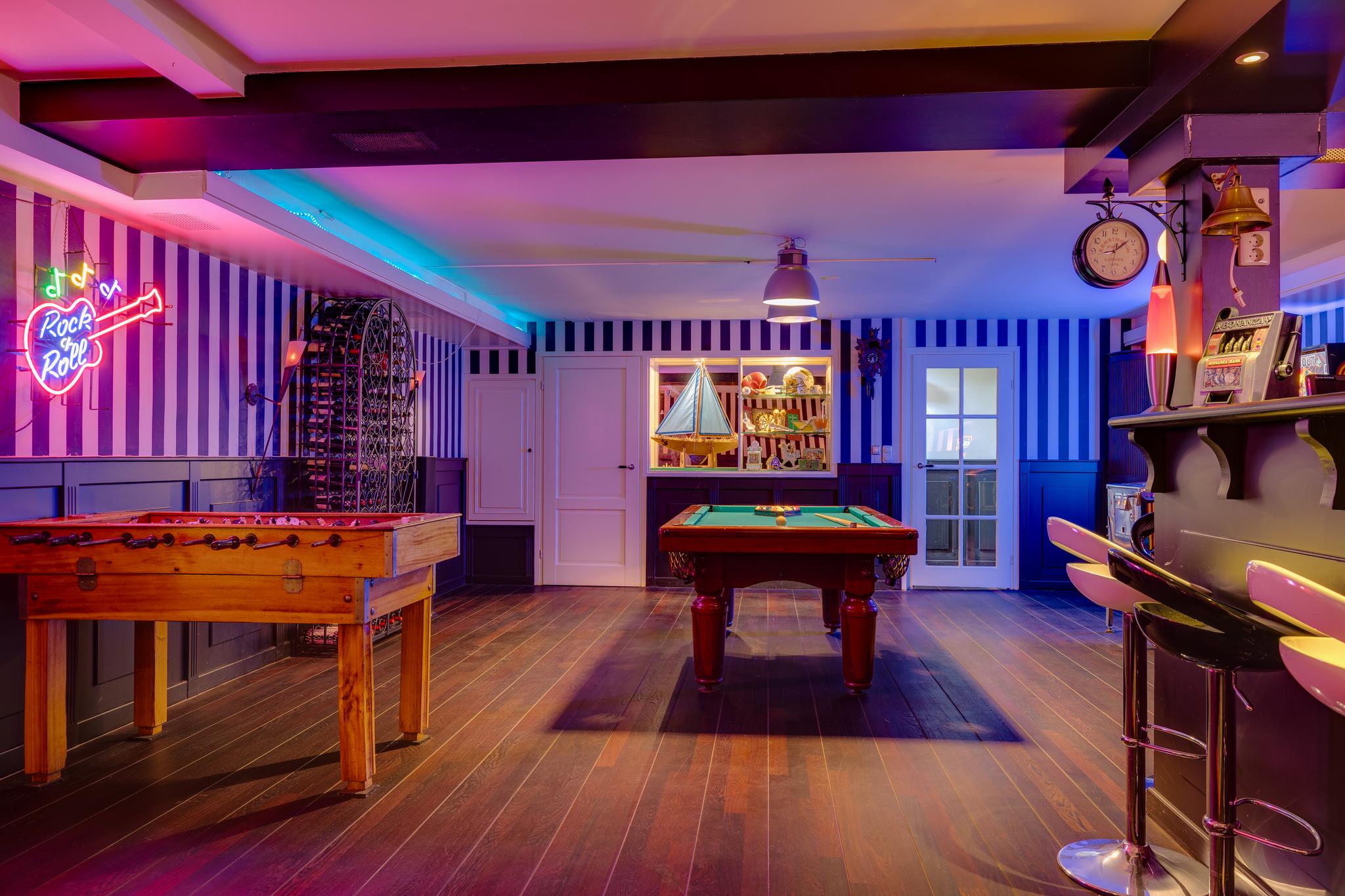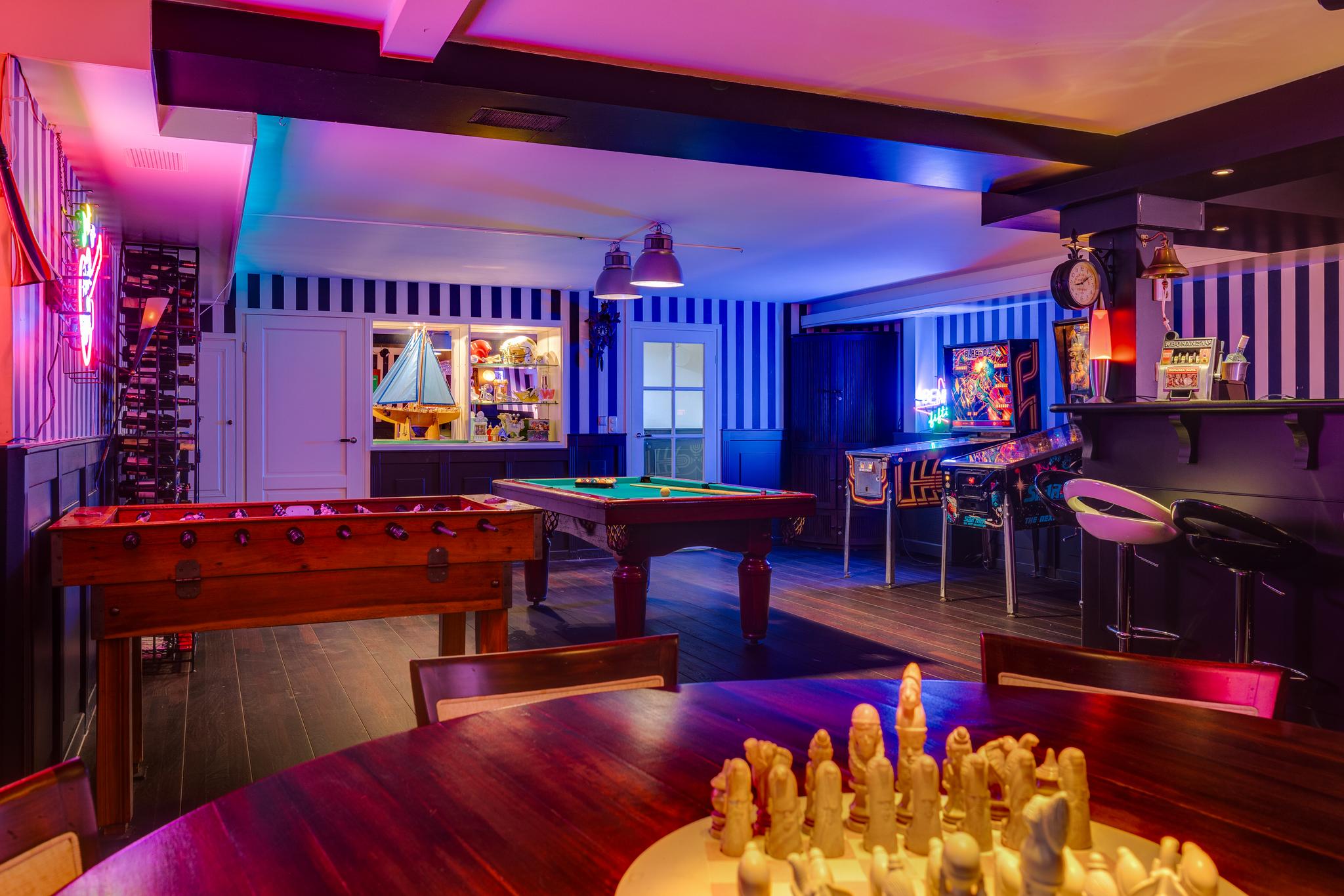 De hardstenen bar is op maat gemaakt en compleet uitgerust met o.a. een magnetron, vaatwasser, spoelbak en koelkast, ideaal voor gezellige avonden met vrienden en familie. Uiteraard is deze ruimte ook geschikt voor eventuele andere doeleinden zoals een eventuele werkruimte.