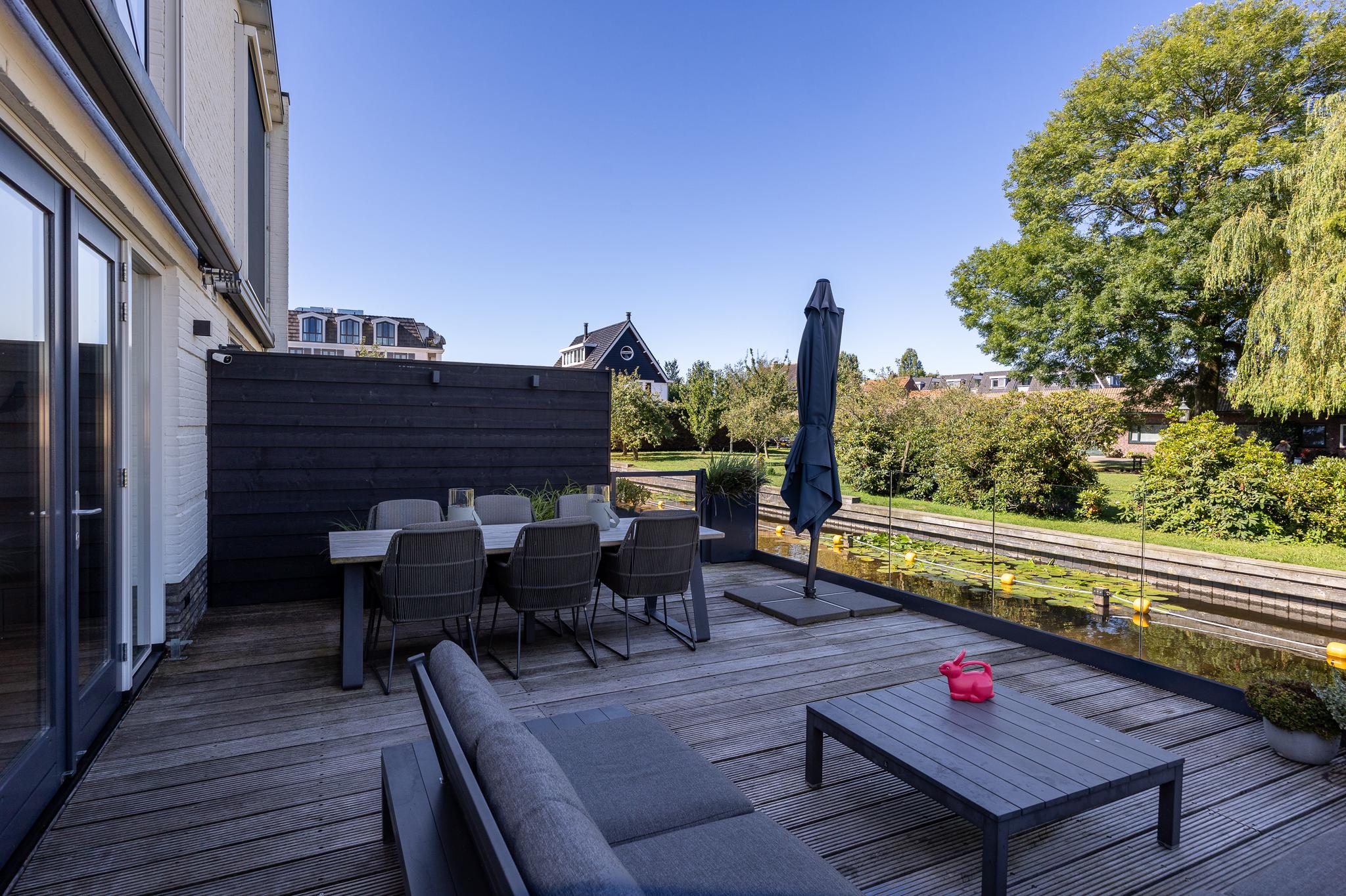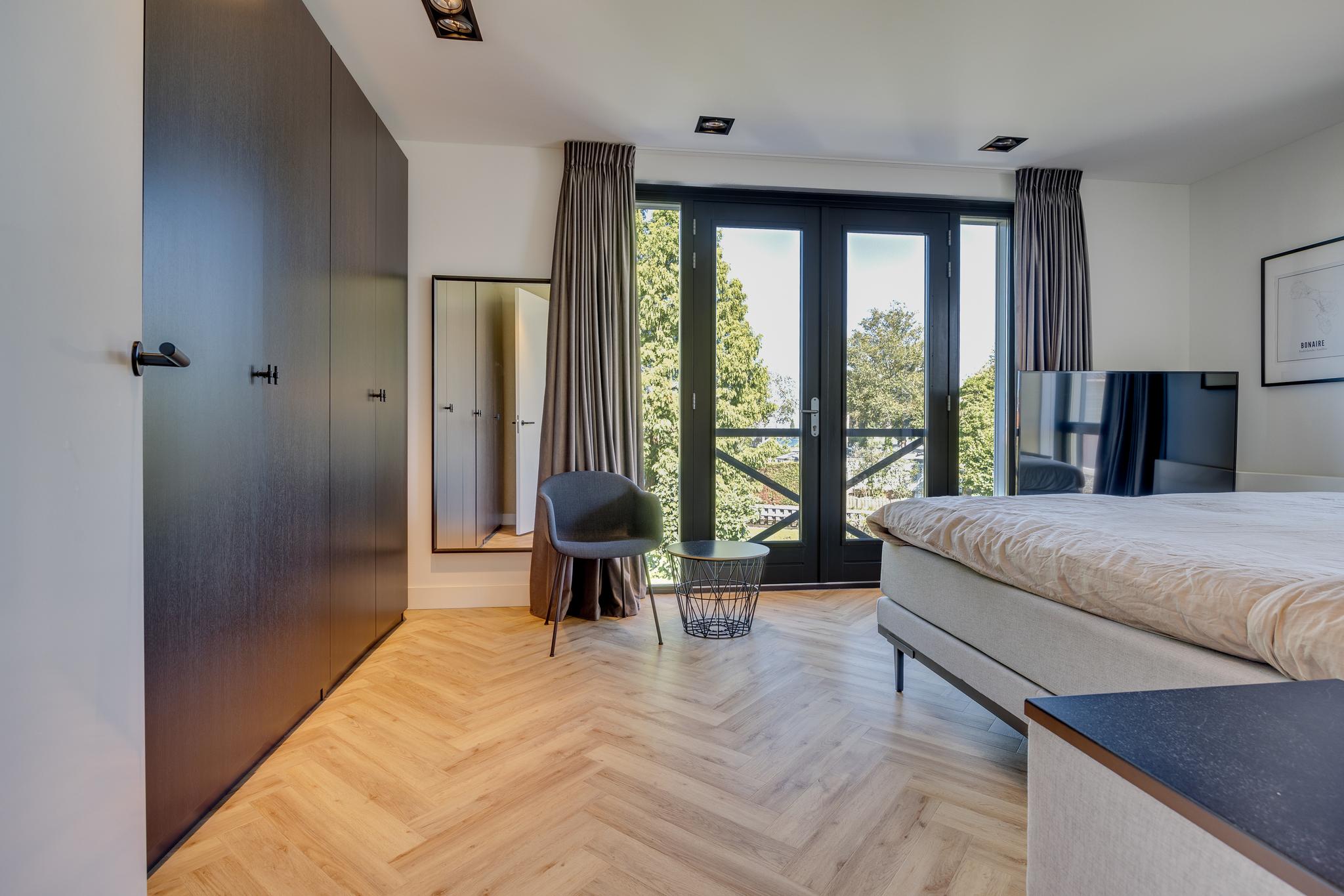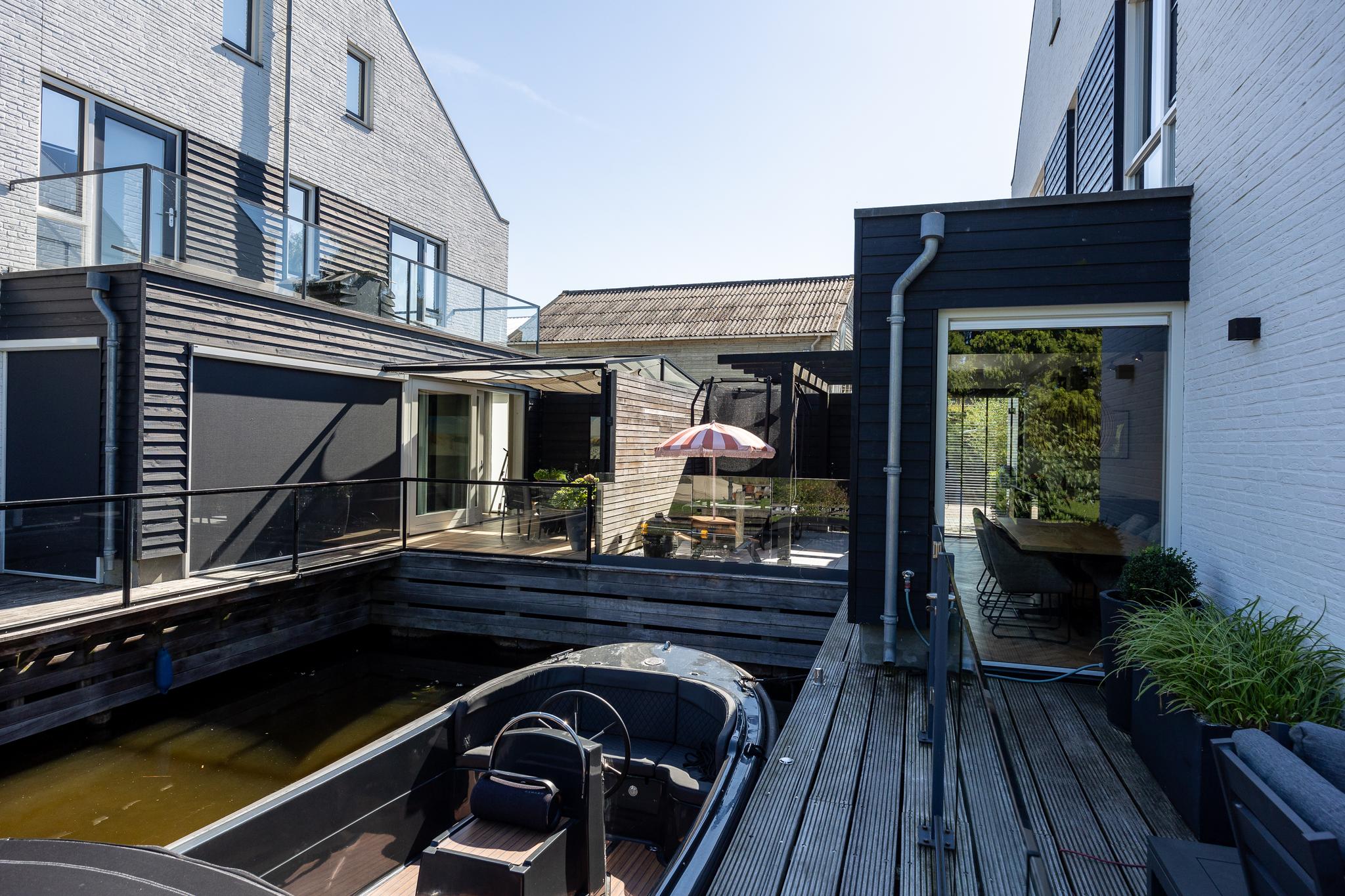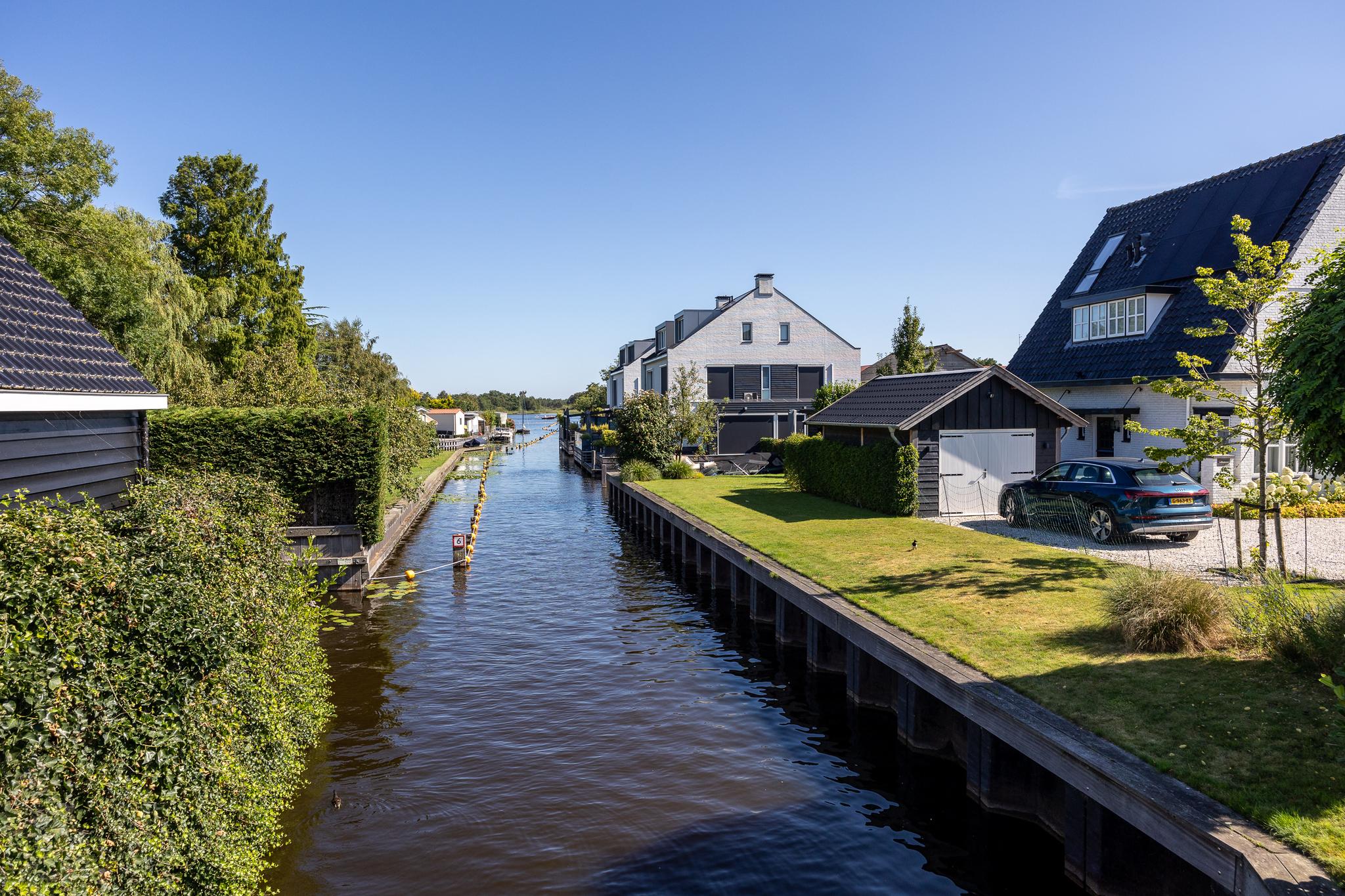 Through the entrance you enter a spacious hall with wardrobe, meter cupboard, luxury toilet, staircase and access to a large storage room. The spacious living room, accessible via French doors, has a gas fireplace and attractive built-in spotlights. The open kitchen is equipped with high-quality built-in appliances, such as a climate-controlled fridge, Quooker, combi/steam oven, coffee machine, dishwasher, induction hob with extractor fan, large fridge and freezer. From the living room and kitchen you have beautiful views of the water. French doors in the living room and sliding doors in the kitchen give access to a spacious terrace with safety glass and private jetty.