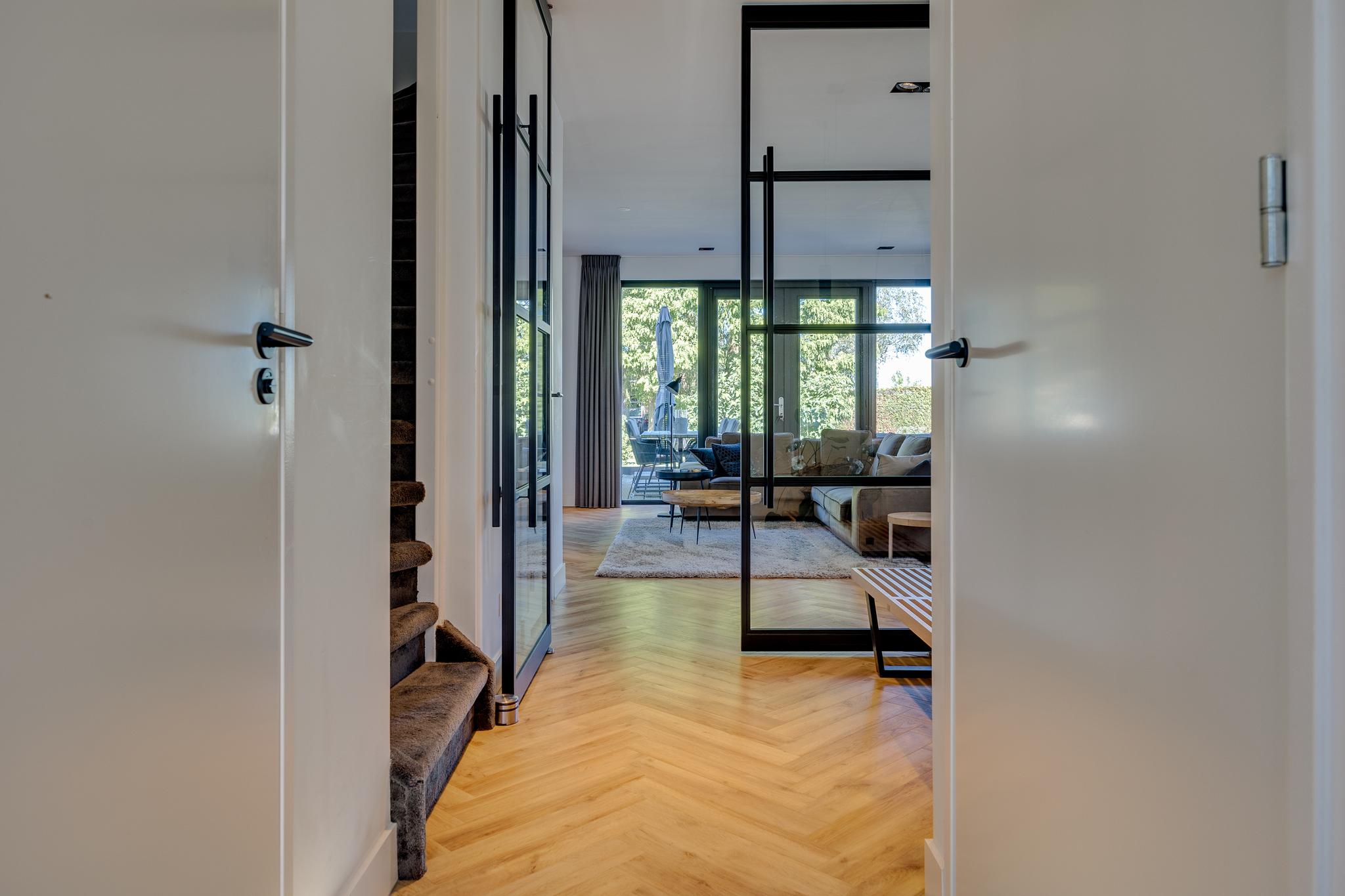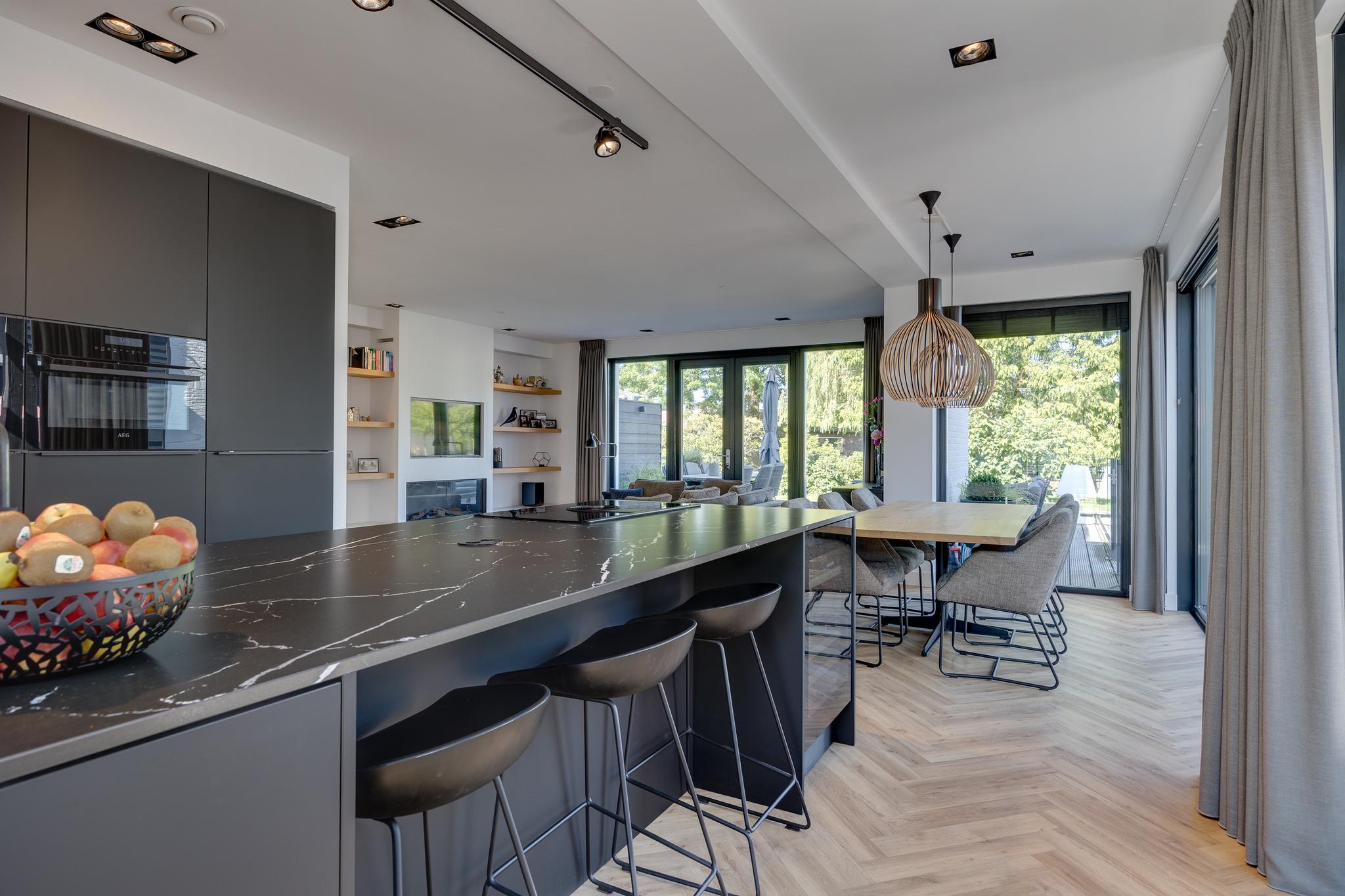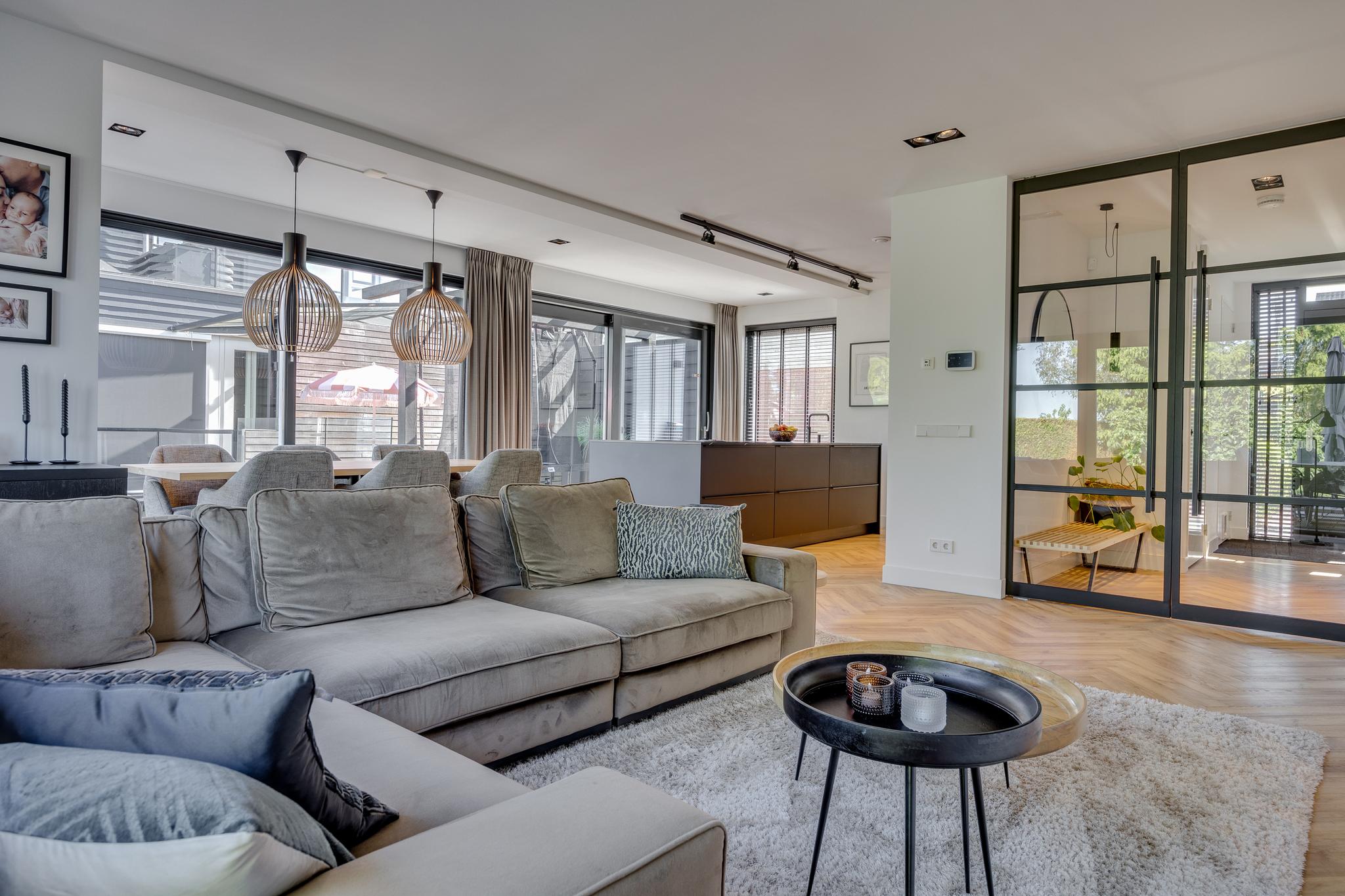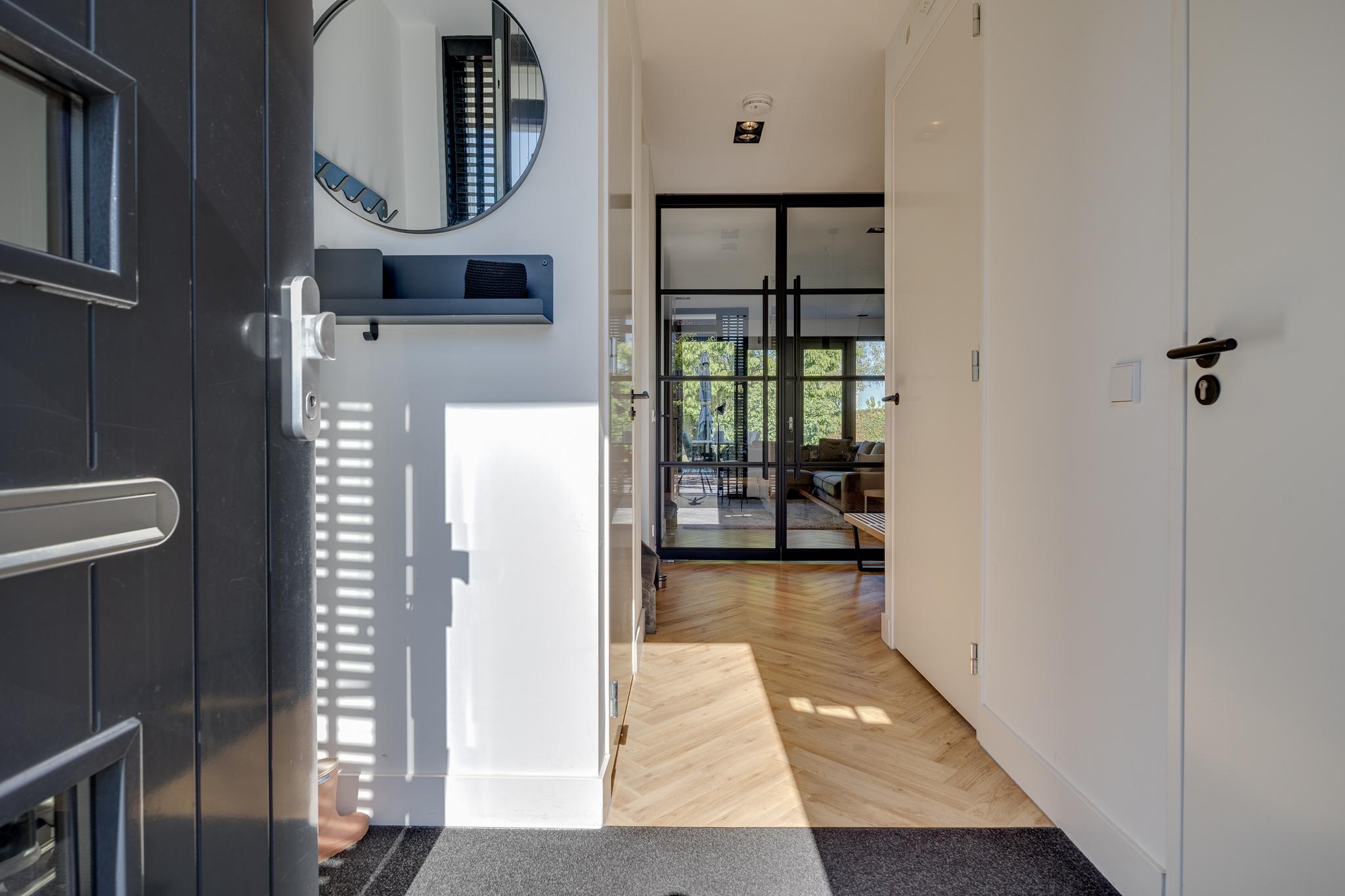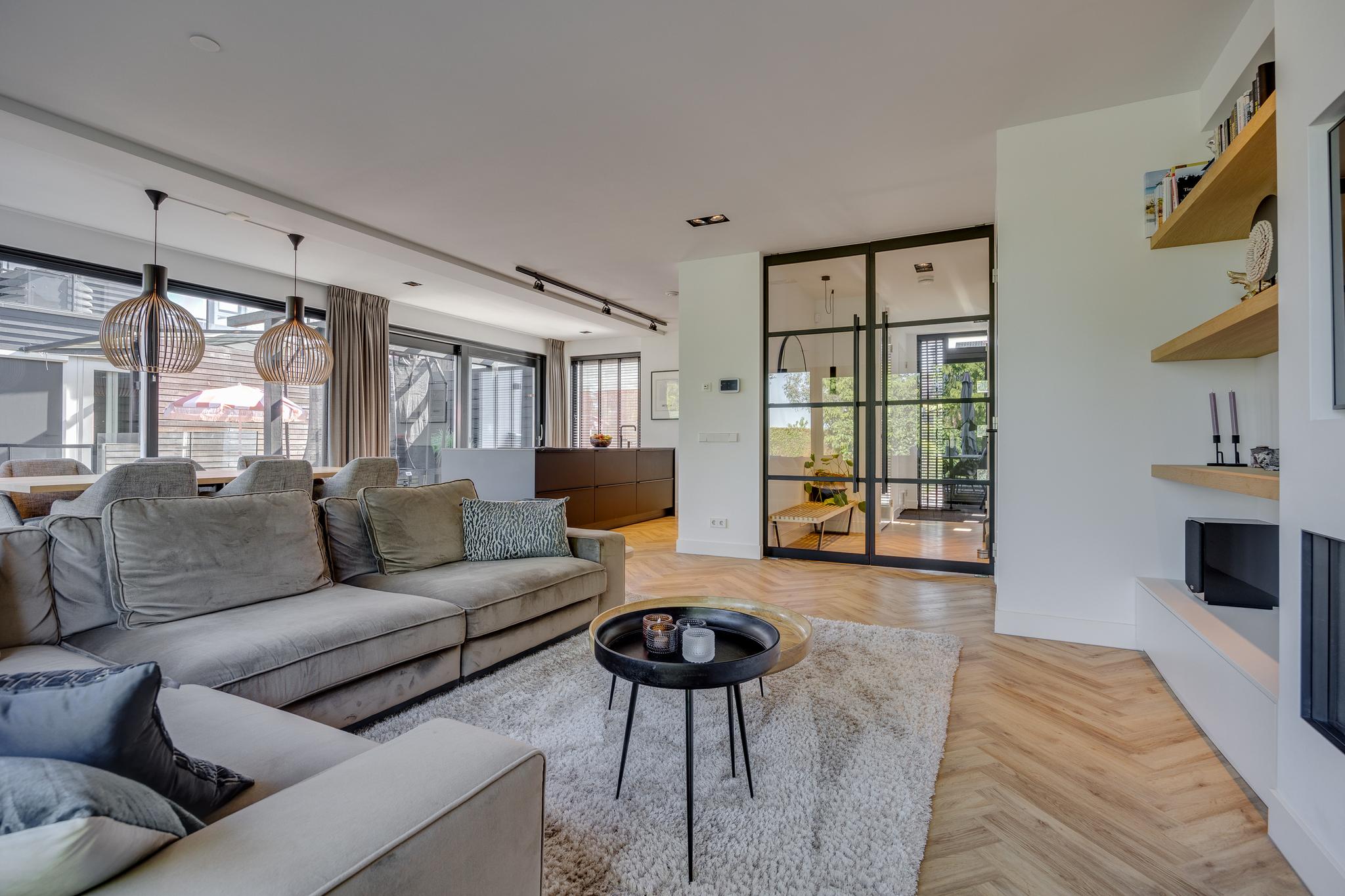 Through the entrance you enter a spacious hall with wardrobe, meter cupboard, luxury toilet, staircase and access to a large storage room. The spacious living room, accessible via French doors, has a gas fireplace and attractive built-in spotlights. The open kitchen is equipped with high-quality built-in appliances, such as a climate-controlled fridge, Quooker, combi/steam oven, coffee machine, dishwasher, induction hob with extractor fan, large fridge and freezer. From the living room and kitchen you have beautiful views of the water. French doors in the living room and sliding doors in the kitchen give access to a spacious terrace with safety glass and private jetty.