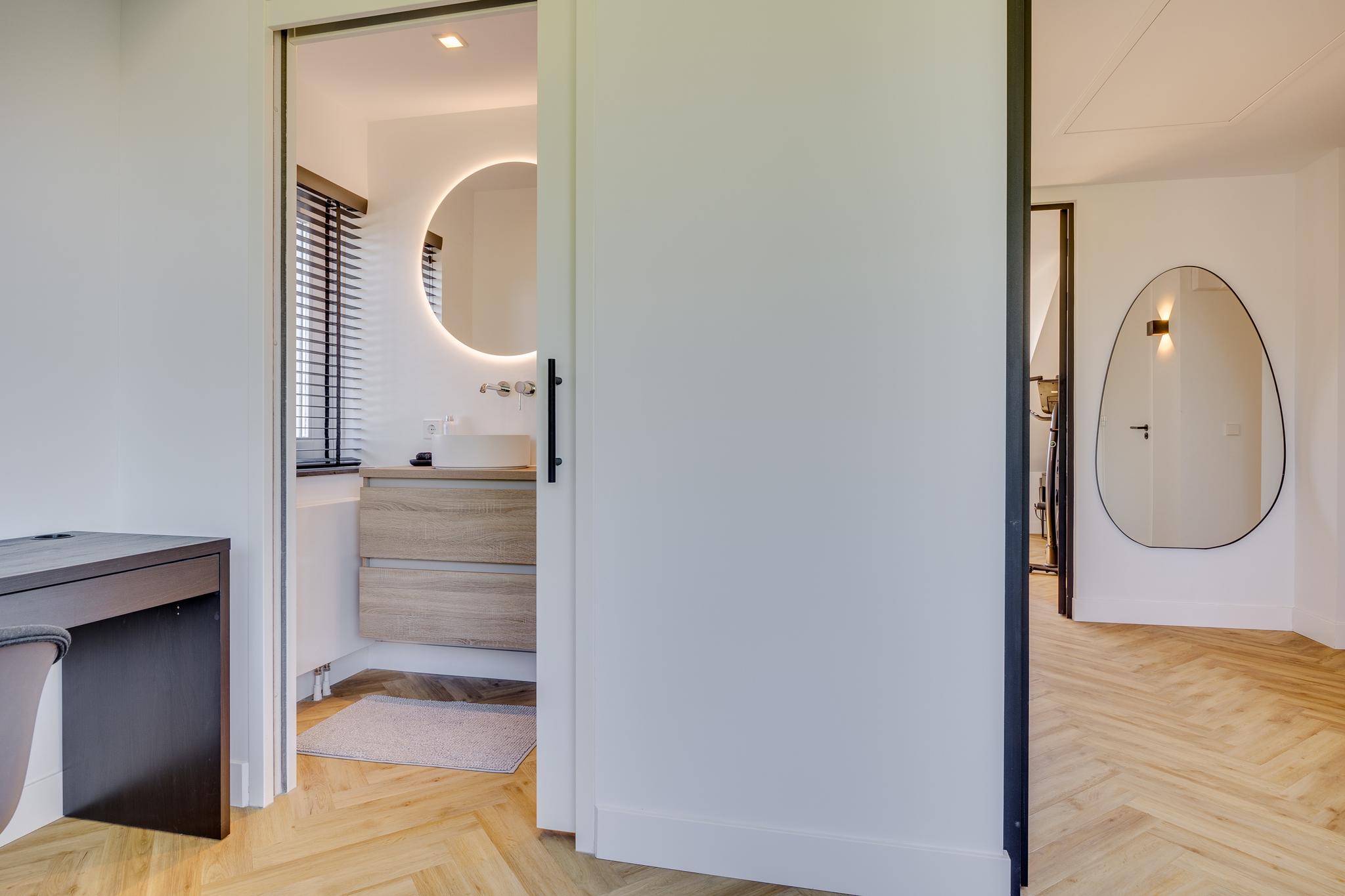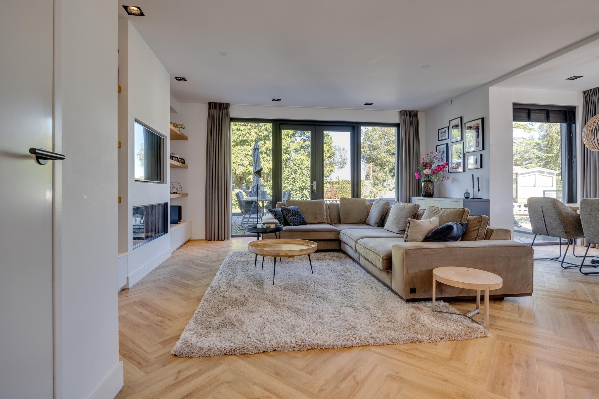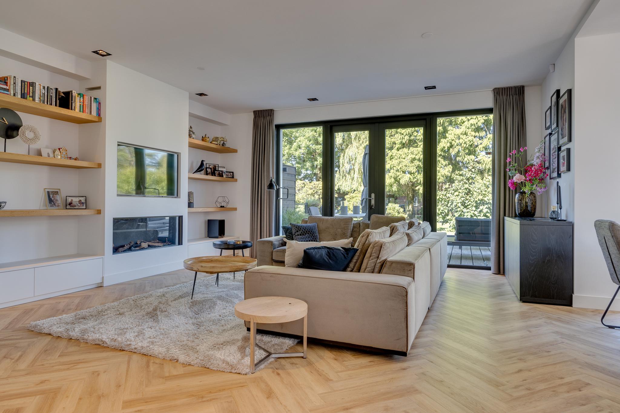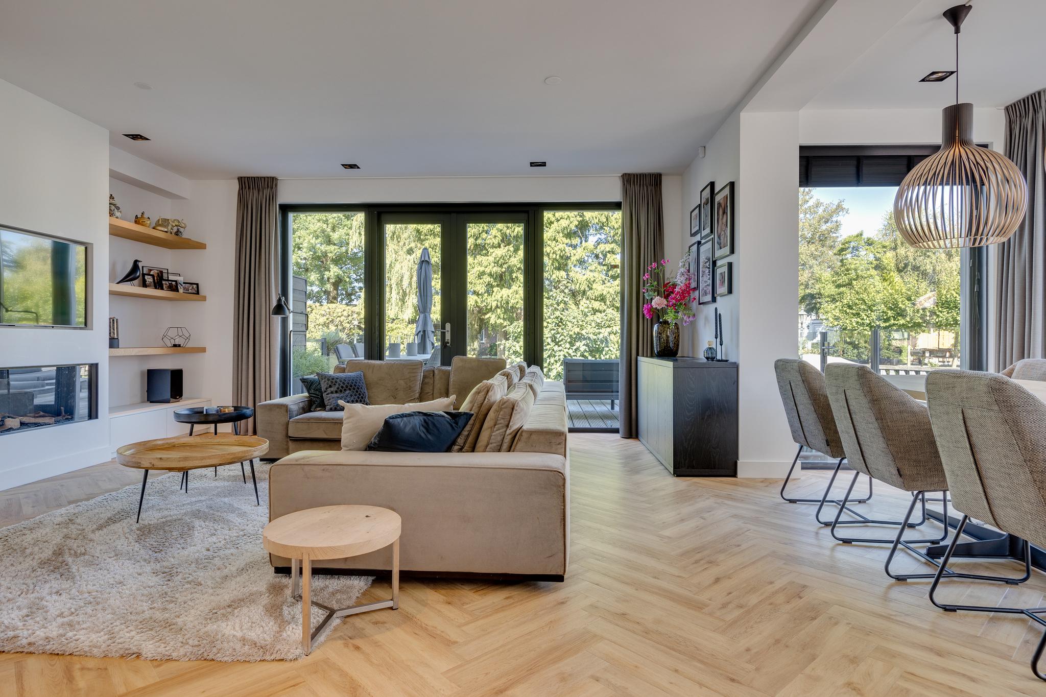 Through the entrance you enter a spacious hall with wardrobe, meter cupboard, luxury toilet, staircase and access to a large storage room. The spacious living room, accessible via French doors, has a gas fireplace and attractive built-in spotlights. The open kitchen is equipped with high-quality built-in appliances, such as a climate-controlled fridge, Quooker, combi/steam oven, coffee machine, dishwasher, induction hob with extractor fan, large fridge and freezer. From the living room and kitchen you have beautiful views of the water. French doors in the living room and sliding doors in the kitchen give access to a spacious terrace with safety glass and private jetty.