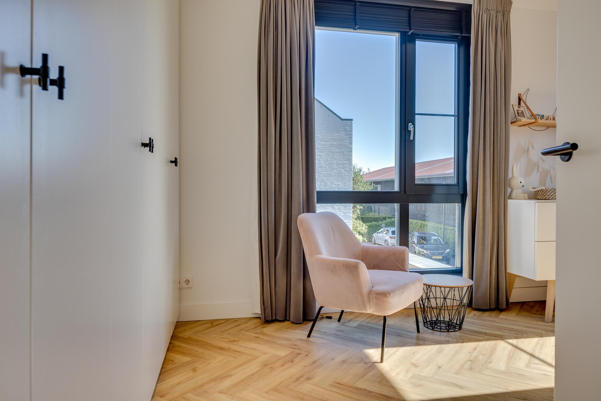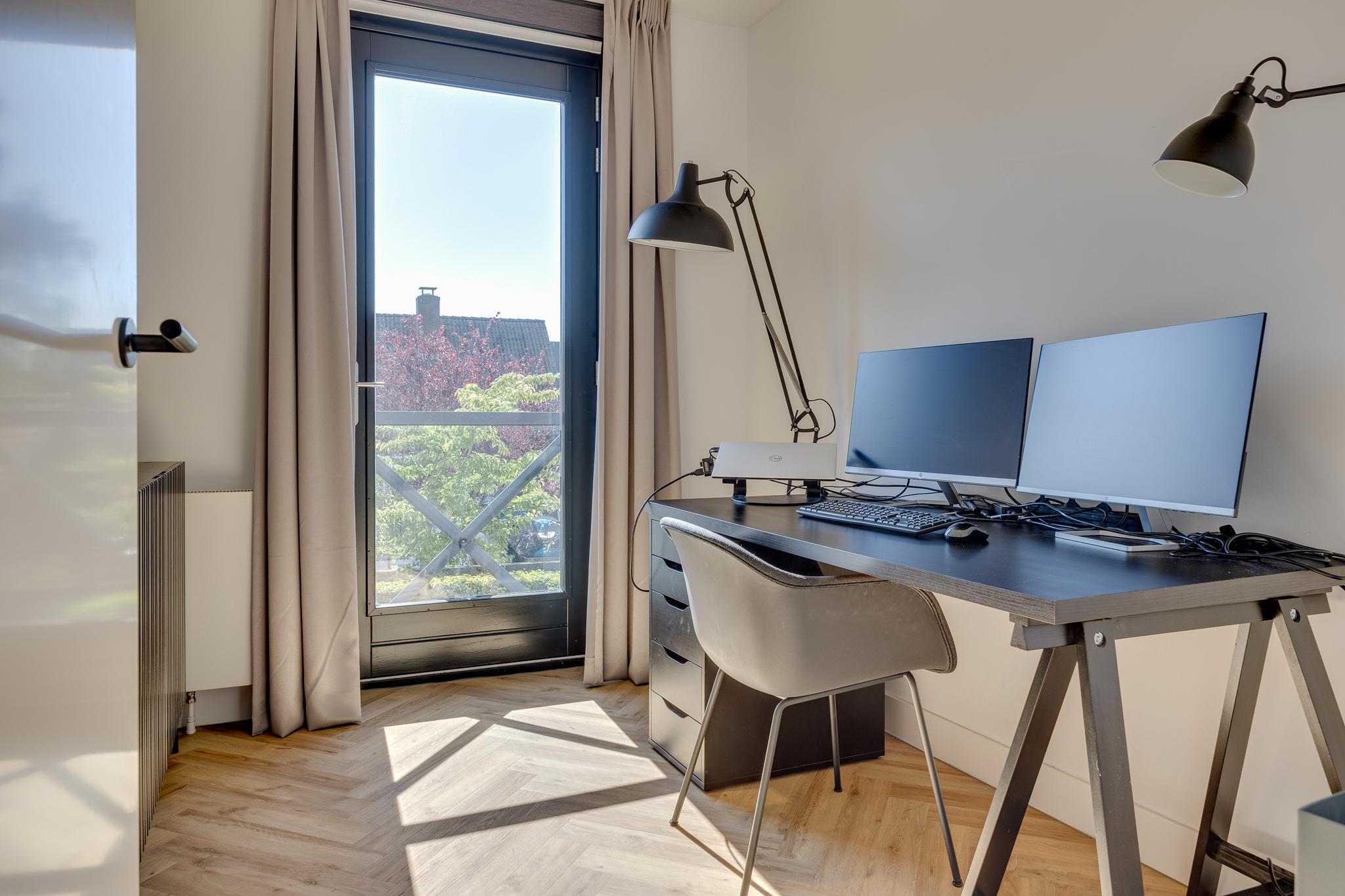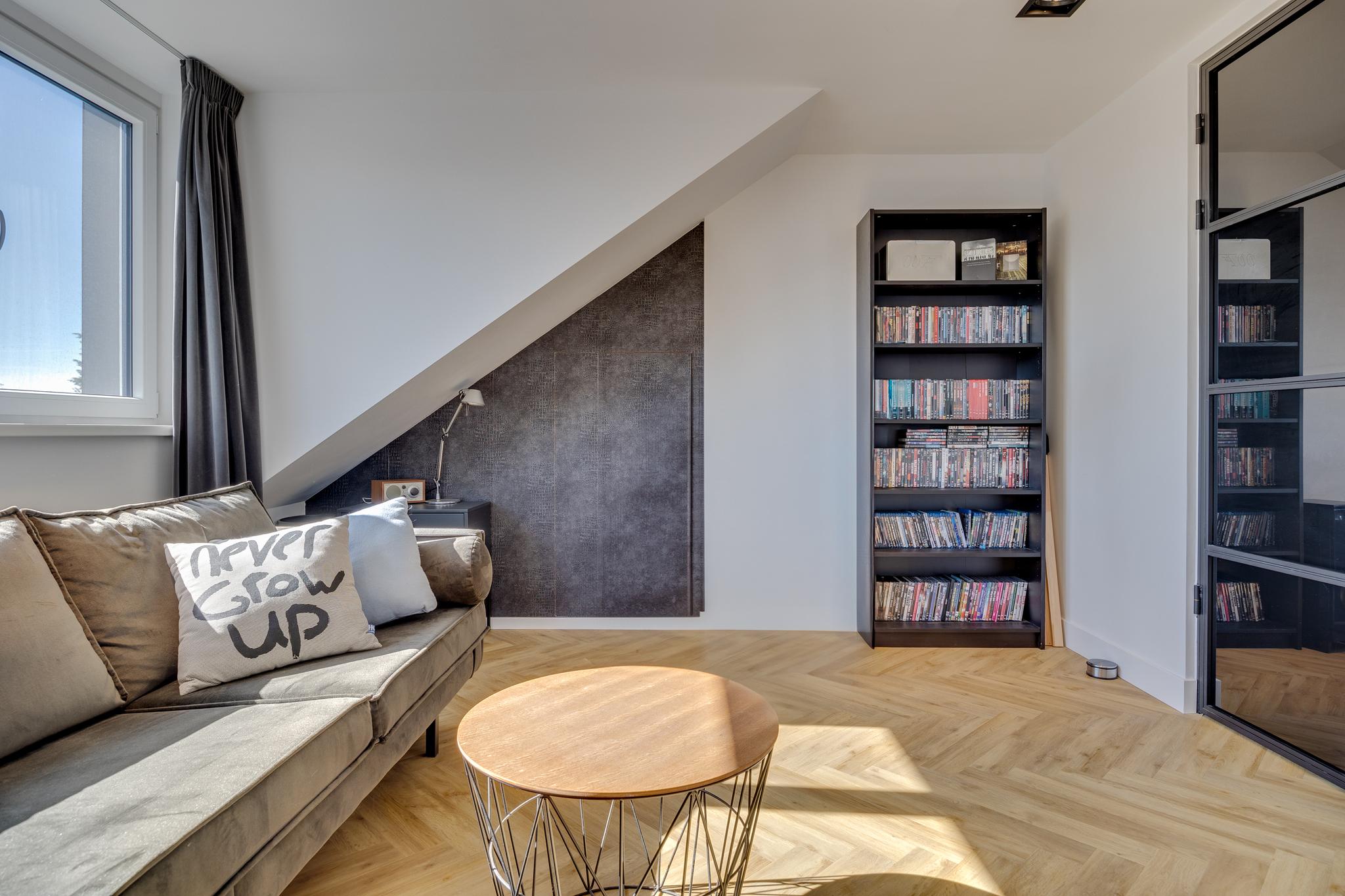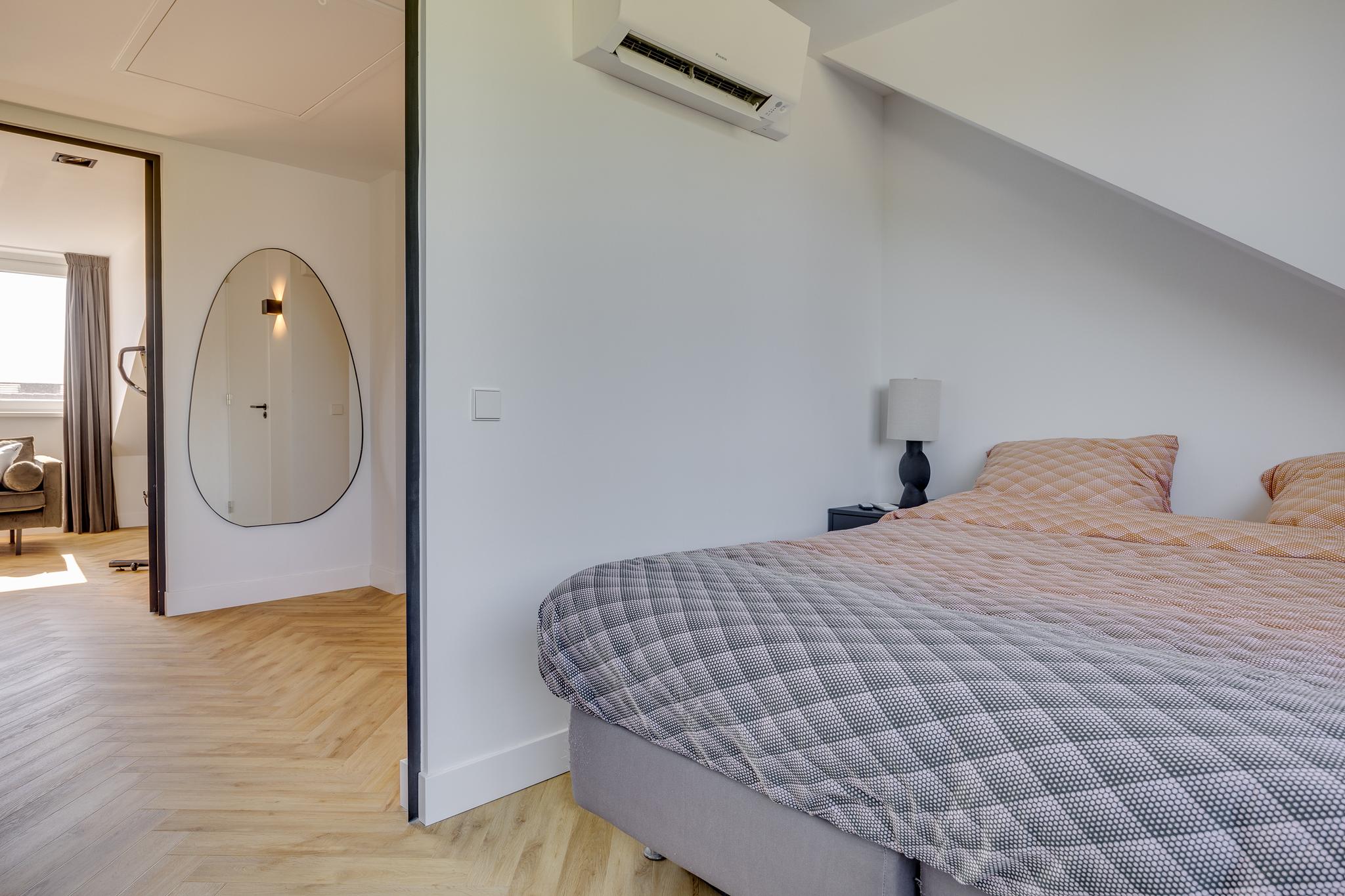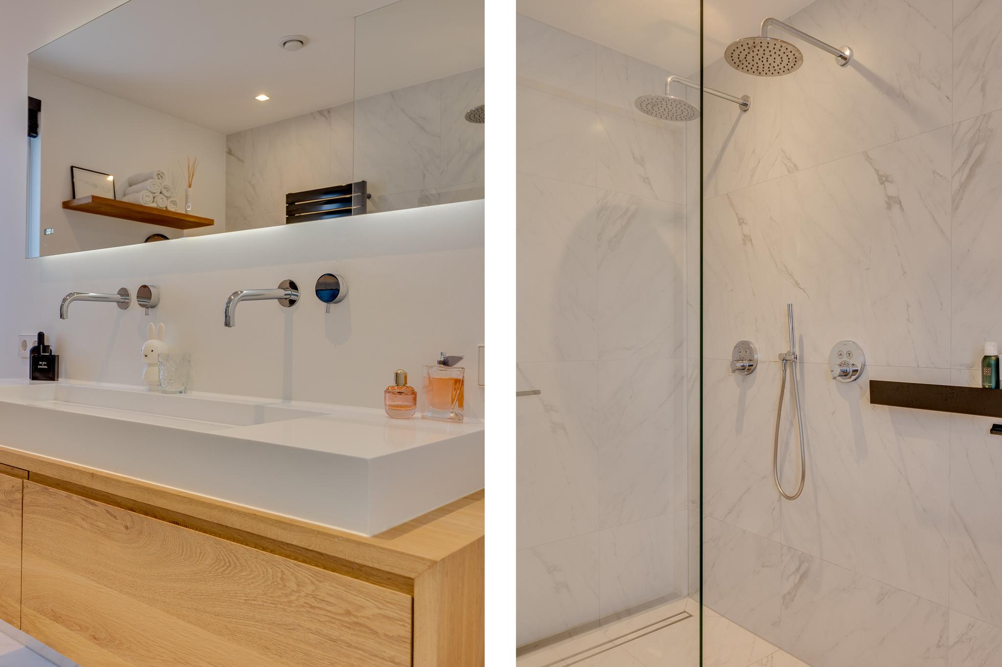 There are three bedrooms on the first floor. The master bedroom at the rear and room at the front both have French balcony doors. The luxurious bathroom is equipped with a freestanding bathtub, walk-in shower, double washbasin, underfloor heating and design radiator. There is also a separate toilet.