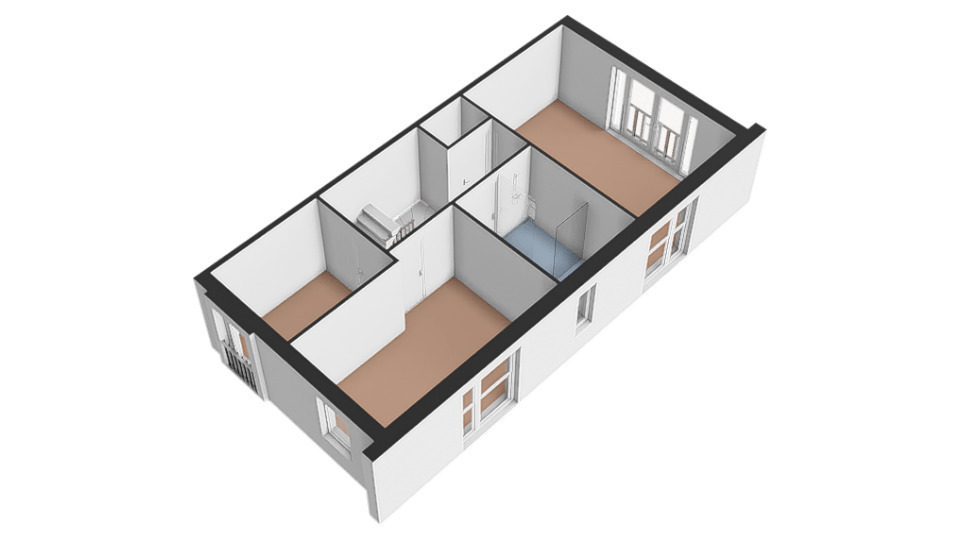 The second floor offers a fourth and fifth (bedroom) room. The room at the back has air conditioning and an en suite bathroom with shower and washbasin, a separate toilet is located on the landing. Also created here is a handy space where the central heating and washing machine are cleverly concealed.