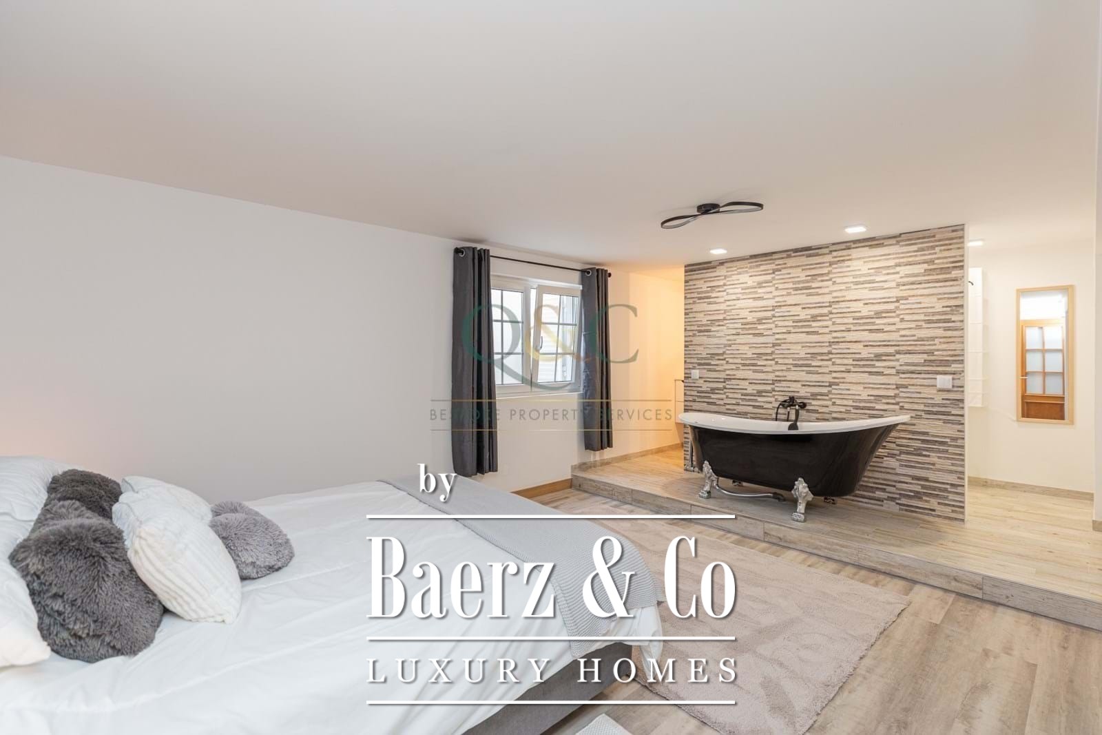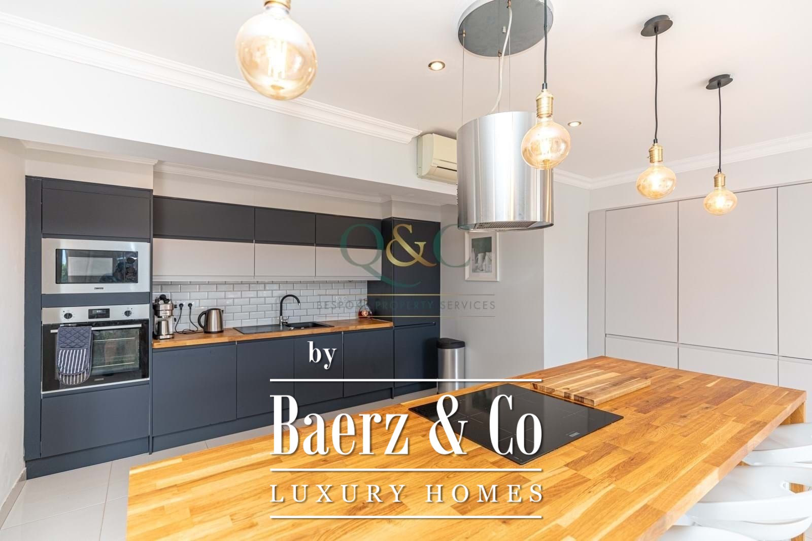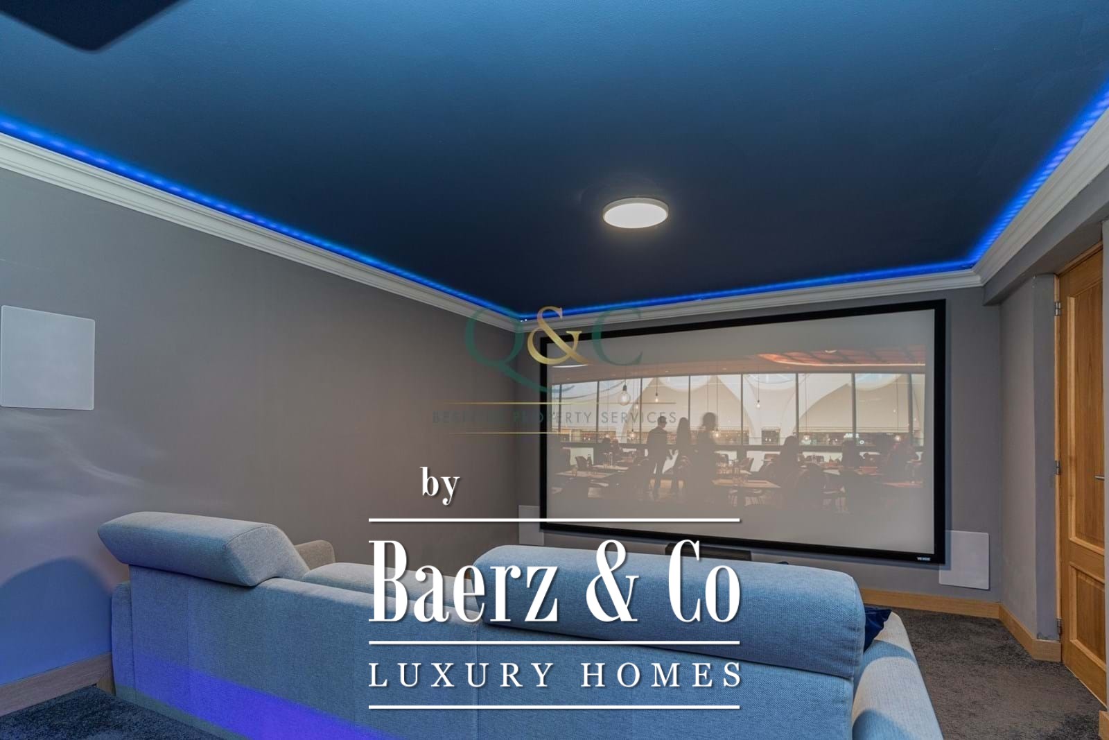 This elegant south facing five bedroom villa is well located to the south of Loule, a short drive to all amenities, beautiful beaches and the resorts of Vale de Lobo and Villamoura. The property which has three storeys has been recently completely renovated creating a pristine, comfortable modern home. The ground floor, which comprises a large open plan living area, is bathed in natural light from the terrace doors which give direct access to the pool and garden, and consists of a splendid new fully fitted kitchen with central aisle, dining and lounge. There is also another separate lounge / tv room on this level, along with two bedrooms and a bathroom. On the first floor are two generous suites which benefit from a spacious south facing terrace overlooking the pool and garden. Back down to the lower level you have a wonderful guest suite with a roll top bath as well as a shower and walk in wardrobe. Adjacent to this suite is a fantastic cinema room with 4k projector, surround sound and luxurious recliner seating. Set in the grounds of the villa is an 8 x 5 heated pool surrounded by a patio with outdoor shower and a fully irrigated fenced garden. The entrance to the property via electric gates offers ample parking on the calcada driveway and access to the garage. This very well presented property offers great potential as a full time family home, a holiday home or as a rental investment.