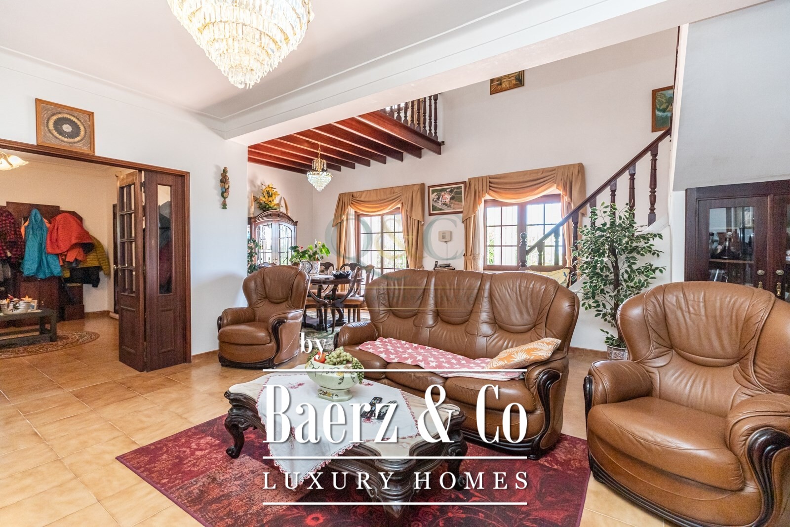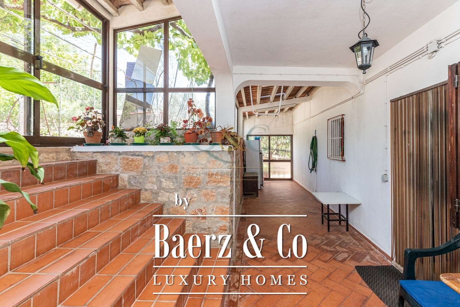 There are three individual garages and expansive parking space, as well as a variety of fruit trees such as the Carob, Almond, Olive, Roman, Plum, Apple, and more, adorning the sprawling landside.
