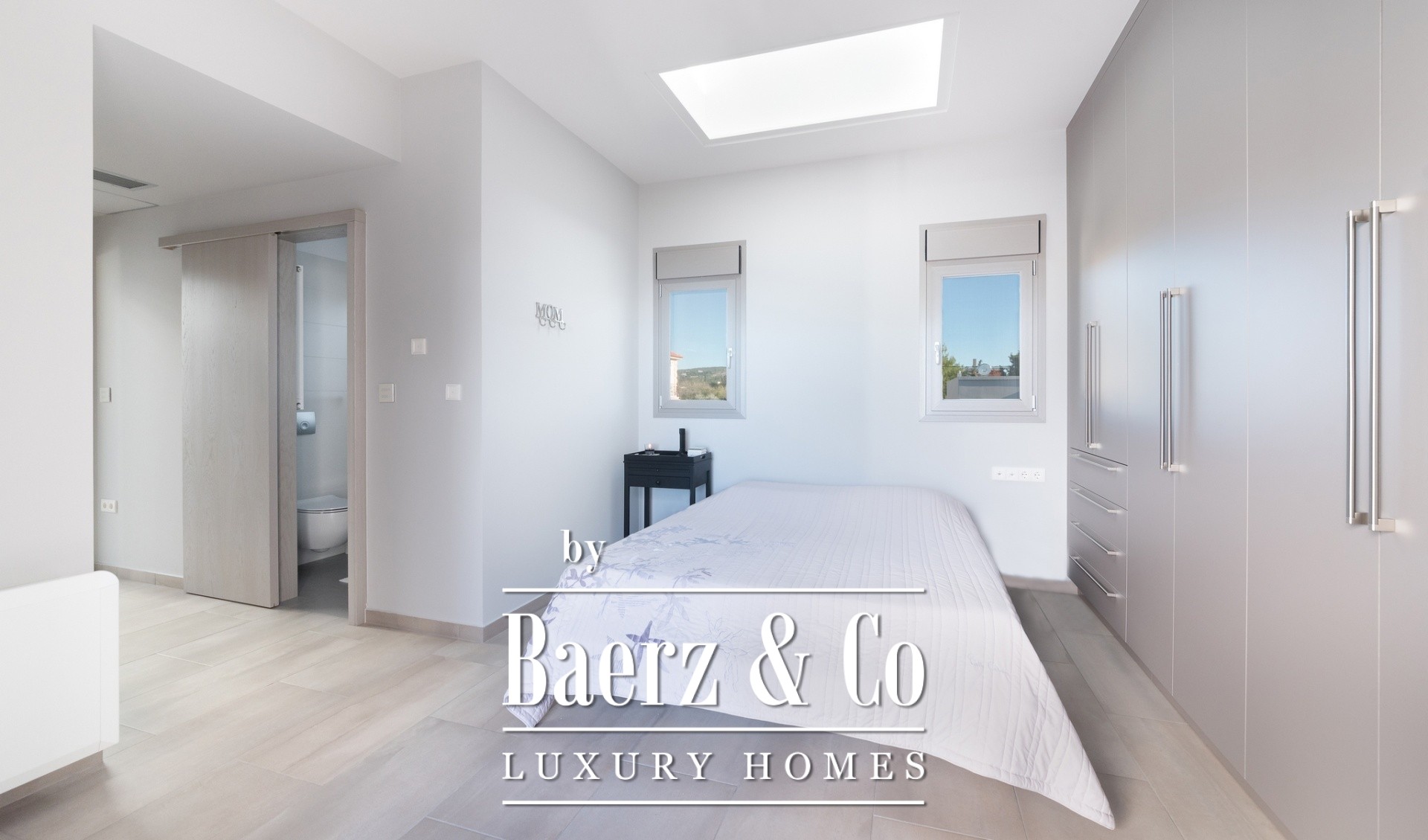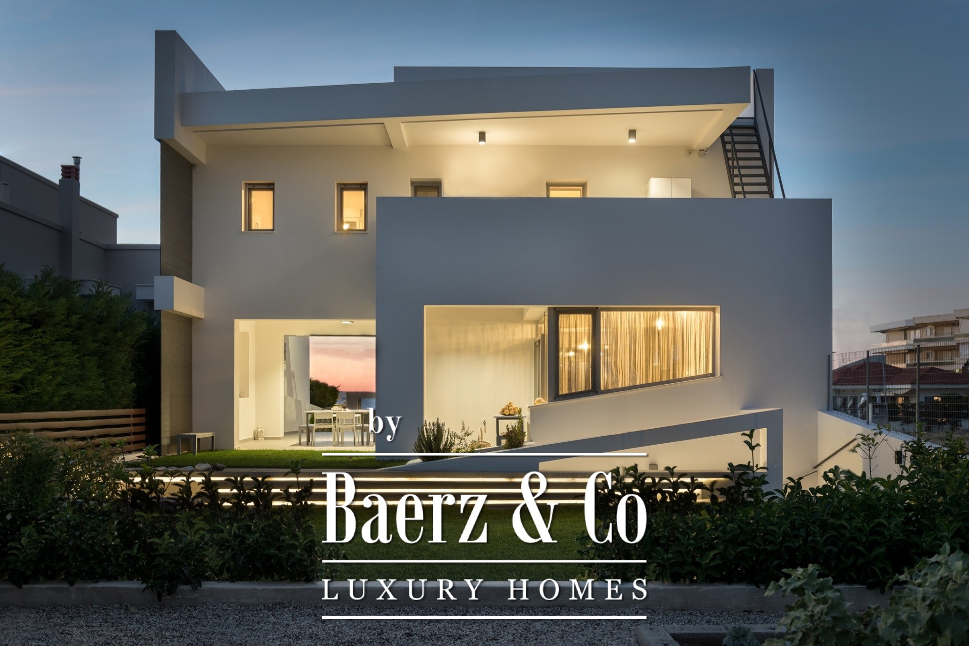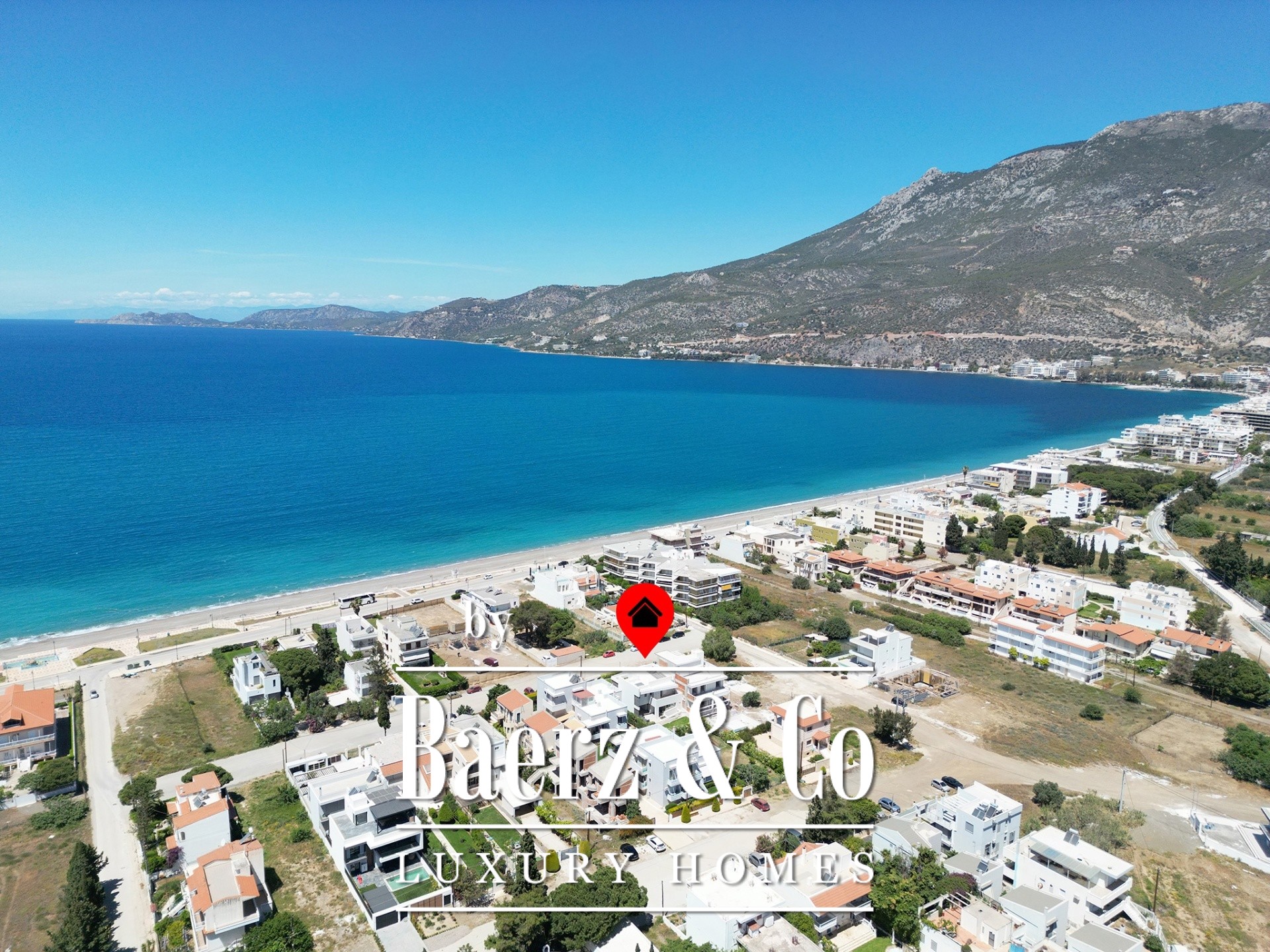 storage spaces, and notable is the specialized lighting study, both indoors and outdoors. There is complete fencing, and all internal doors are oak. The energy supply is highly efficient thanks to the MITSUBISHI ZUPADAN heat pump and the COMMERLING window frames with double glazing. Furthermore, the construction materials are certified for coastal environments, and the insulation according to KENAK ensures excellent thermal insulation. Regarding the electrical installation, the house features a BASS SIEMENS smart home system as well as SIEMENS touch switches, resulting in extremely low energy needs for the house. Additionally, there is suitable infrastructure for installing an elevator, which will connect all 3 levels, as well as provision for constructing a pool in the front part of the garden. Additionally, there is the possibility of acquiring an adjacent plot (401m²) offering additional building square meters. Within close proximity (1km) is the Club Hotel Casino Loutraki, (5km) the Loutraki Thermal spa, while the Athens International Airport is just a 1-hour drive away.
