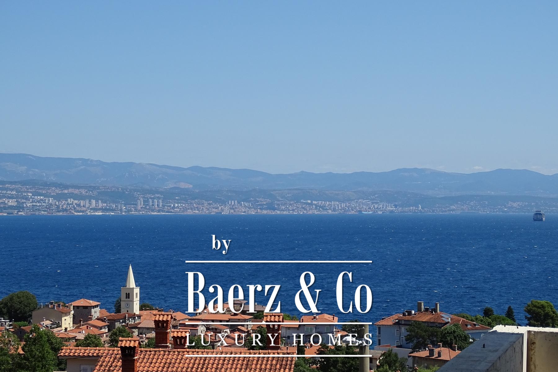 Penthouse apartment Lovran offers a measured approach to coastal living, set just three hundred meters from the Adriatic’s edge. This residence spans 204.78m², shaping light and horizon into a home defined by clarity and ease. Large terraces and a private garden create a passage between sky and sea, while the southwest-oriented living area – just under 50m² – frames panoramic views over Kvarner Bay, with the silhouettes of islands, Lovran, and Rijeka extending beyond.