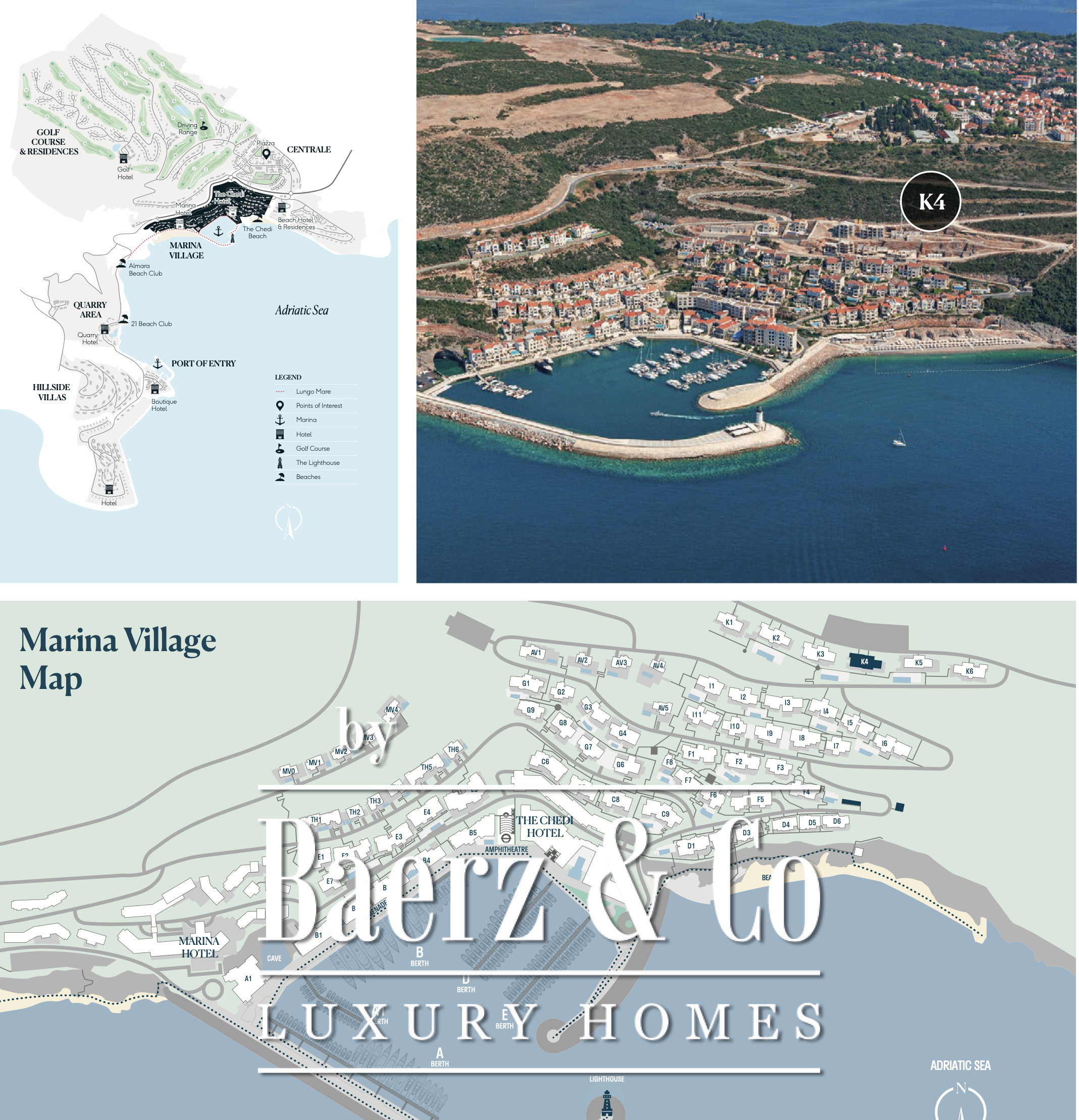 Marina Village, with its stone houses, fasade of subtle colors and blue shutters delivers on the promise of a true Mediterranean experience on the seafront. Revel in the simplicity and harmony of life on the Adriatic, enjoyed from each home, terrace, balcony or infinity pool. Or take a short stroll down the cobblestone road to five beautiful beaches or one of the charming seafront bars and restaurants. The anchor of the Marina Village is the five-star The Chedi Luštica Bay hotel, with 111 exceptionally elegant rooms and suites, two high calibre restaurants, two elegant bars, versatile meeting facilities, a private beach, an Asian-inspired Spa, an indoor pool, and an outdoor infinity pool.
