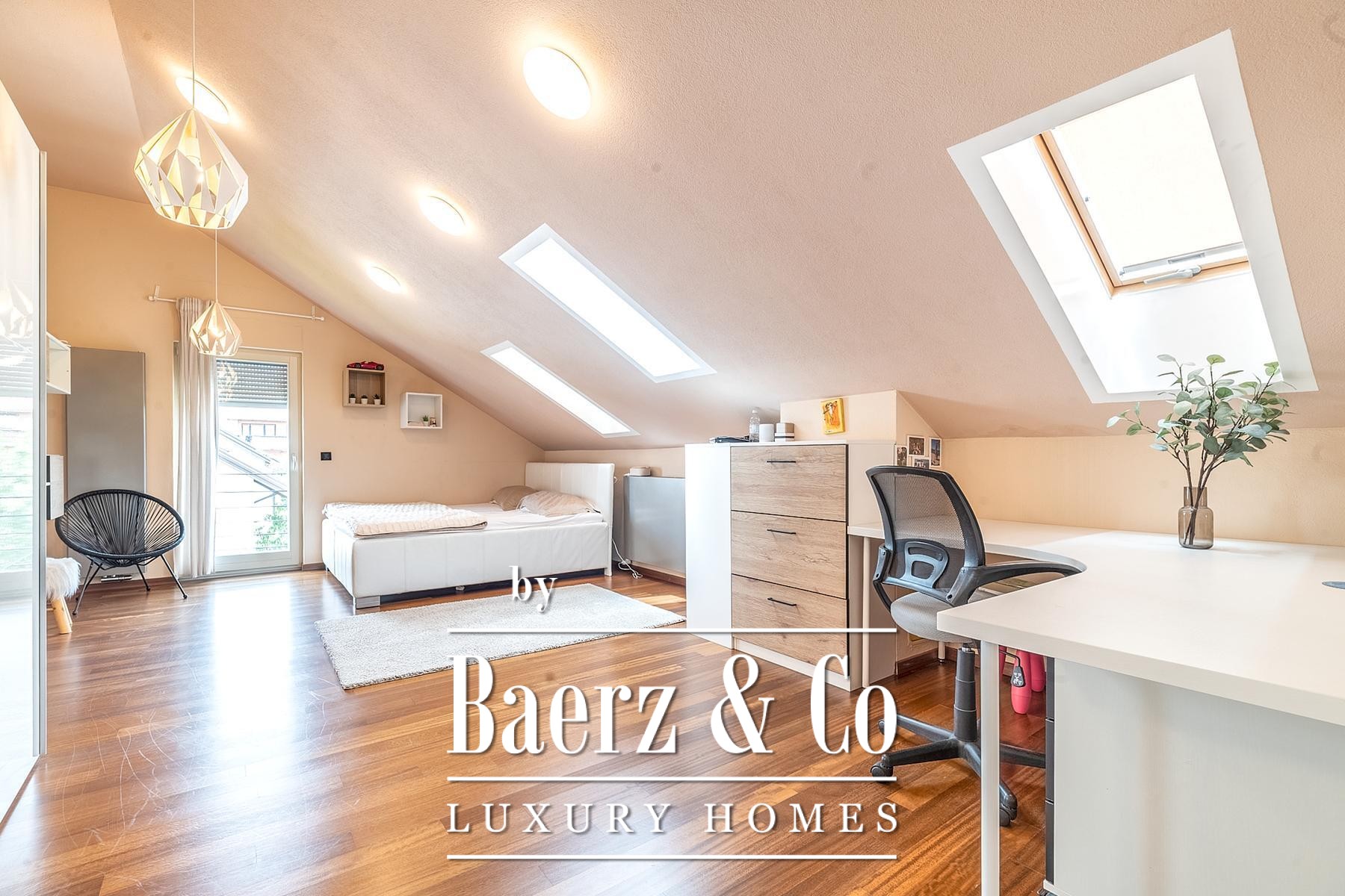Construction is marked by a reinforced concrete base with brick infill for premium sound and thermal insulation, underfloor heating throughout, double-glazed roofing, built-in solar panels, and advanced security. The villa’s immediate surroundings offer proximity to elementary schools, public transport, and the heritage woodlands of Maksimir, with the city center a brief 10-minute drive away. This residence is an invitation to a refined and tranquil urban lifestyle.
