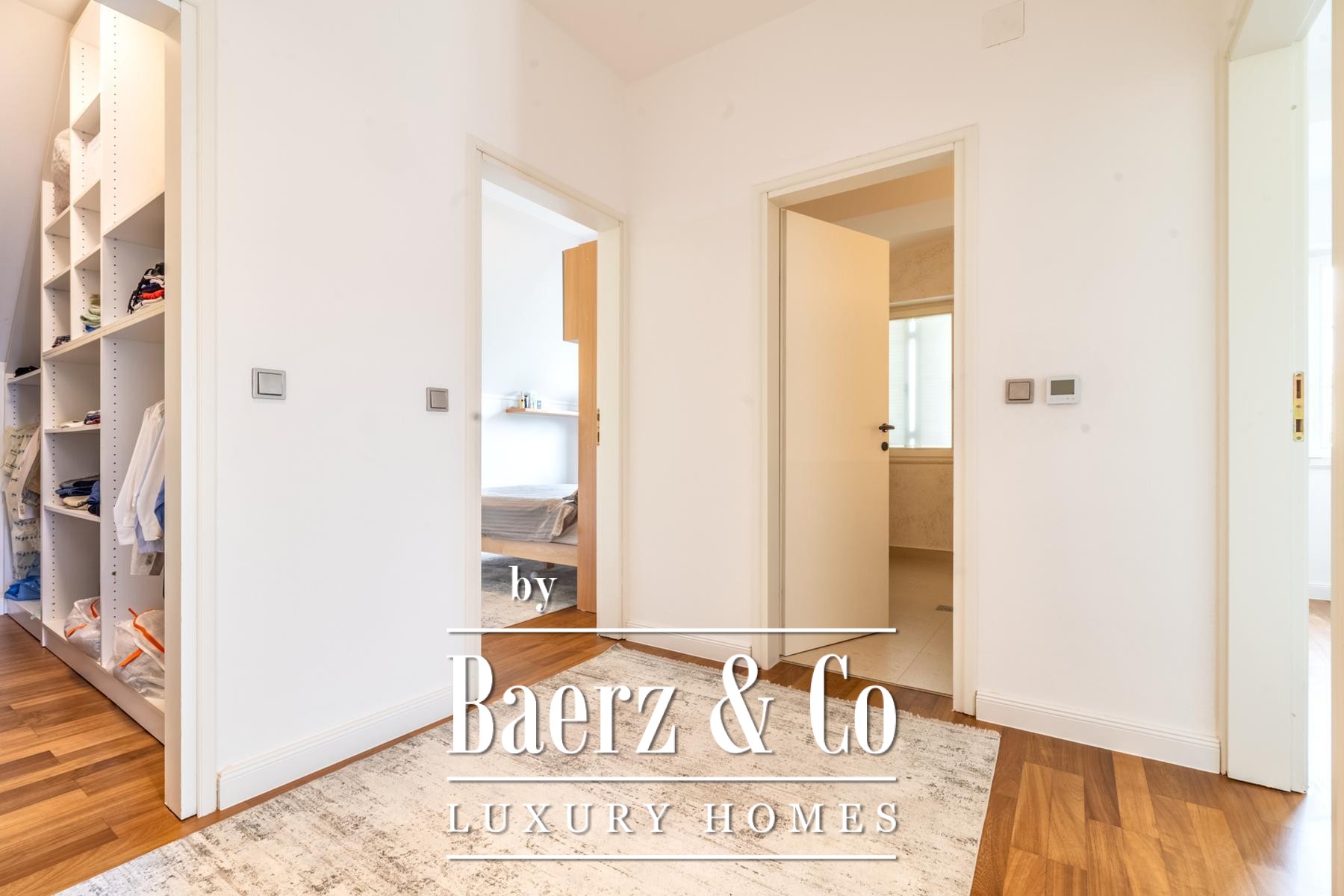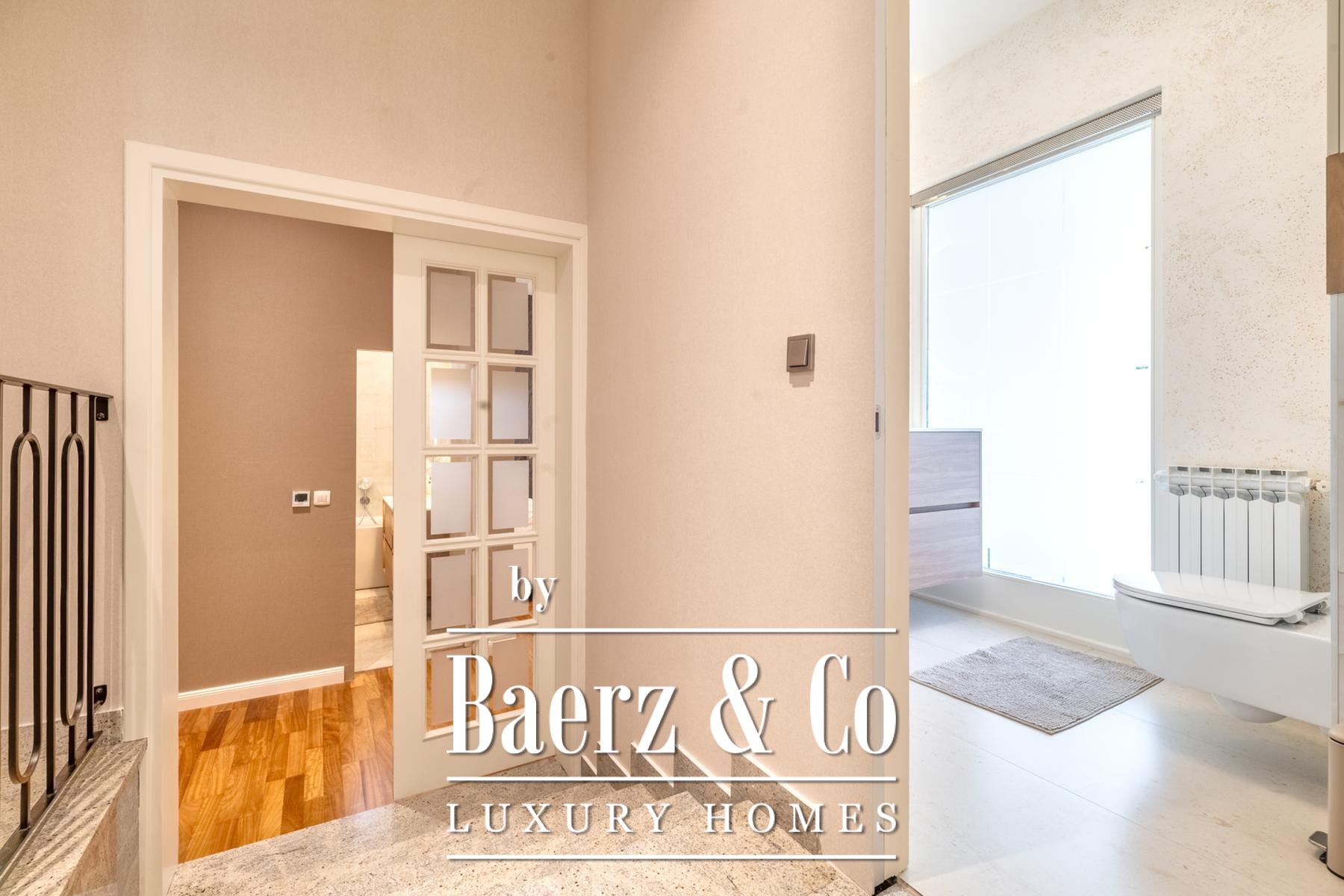On the highest floor there is a master bedroom with walk-in closet and bathroom, two additional bedrooms, a shared bathroom, a study and a video intercom.