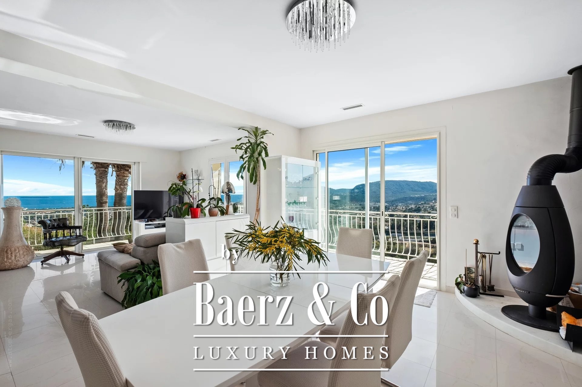 Located in the heights of Mandelieu, in the Termes district, 2 villas facing south, with views of the sea and the Estérel, offering a living area of approximately 350m².
