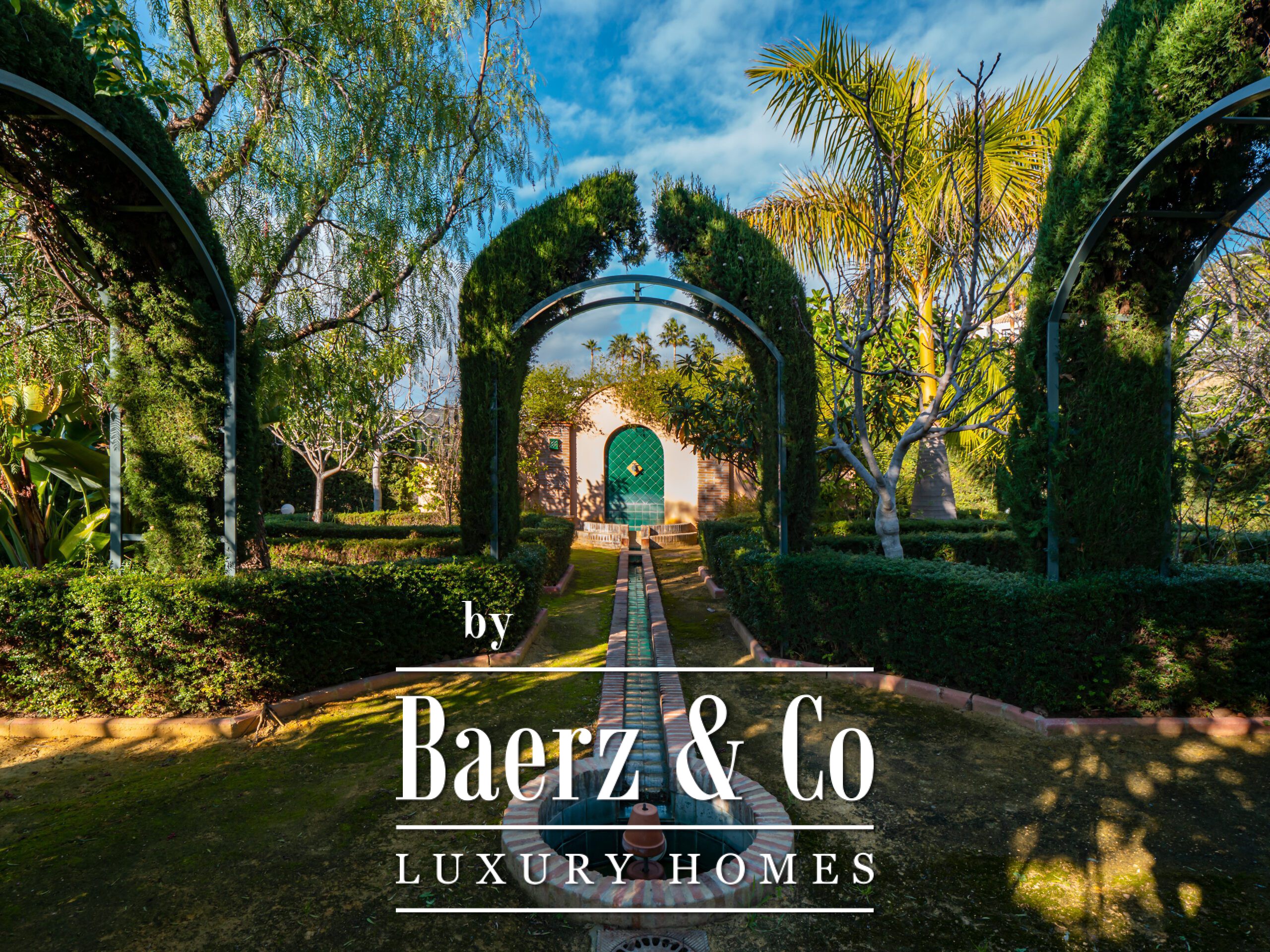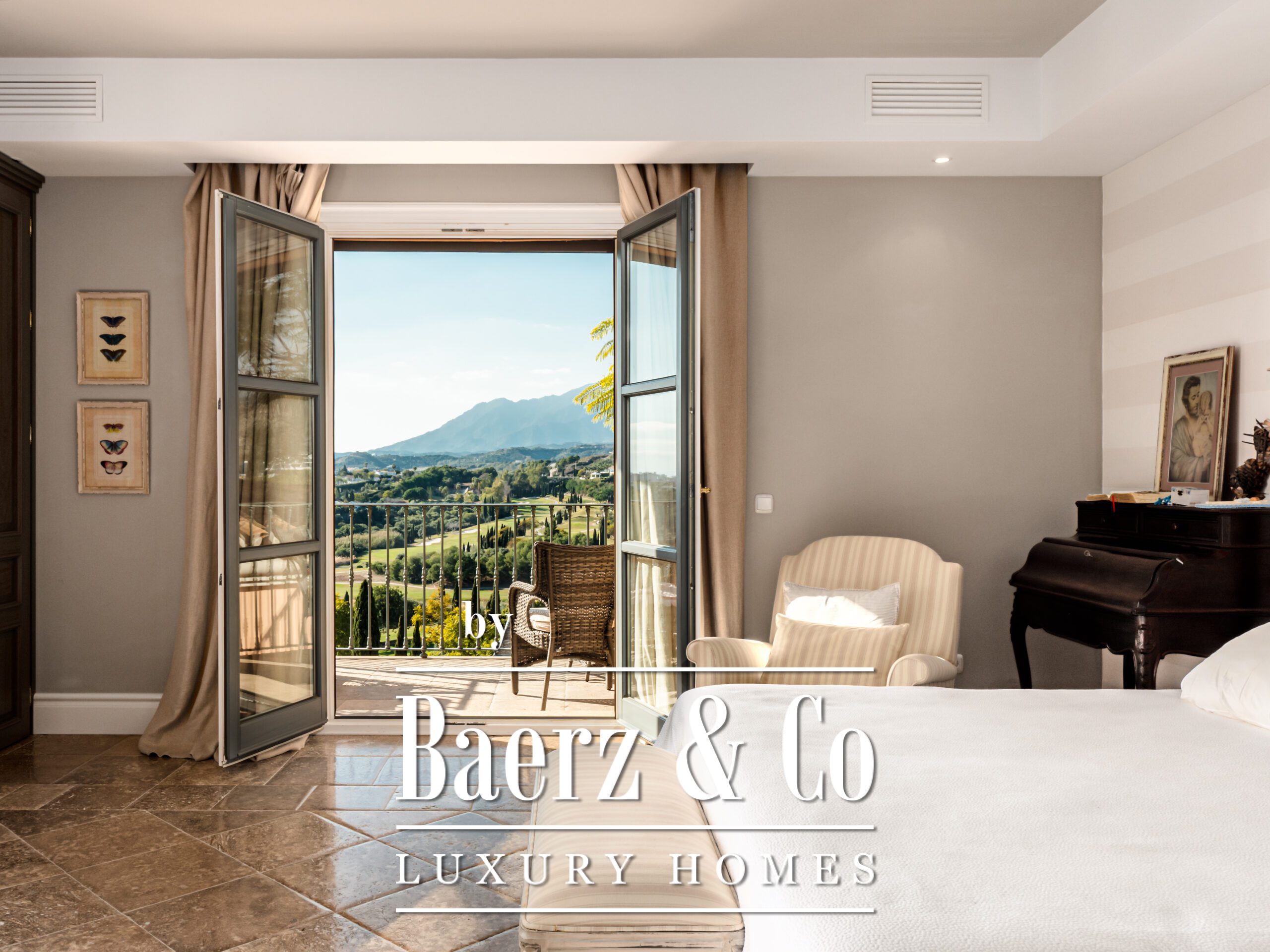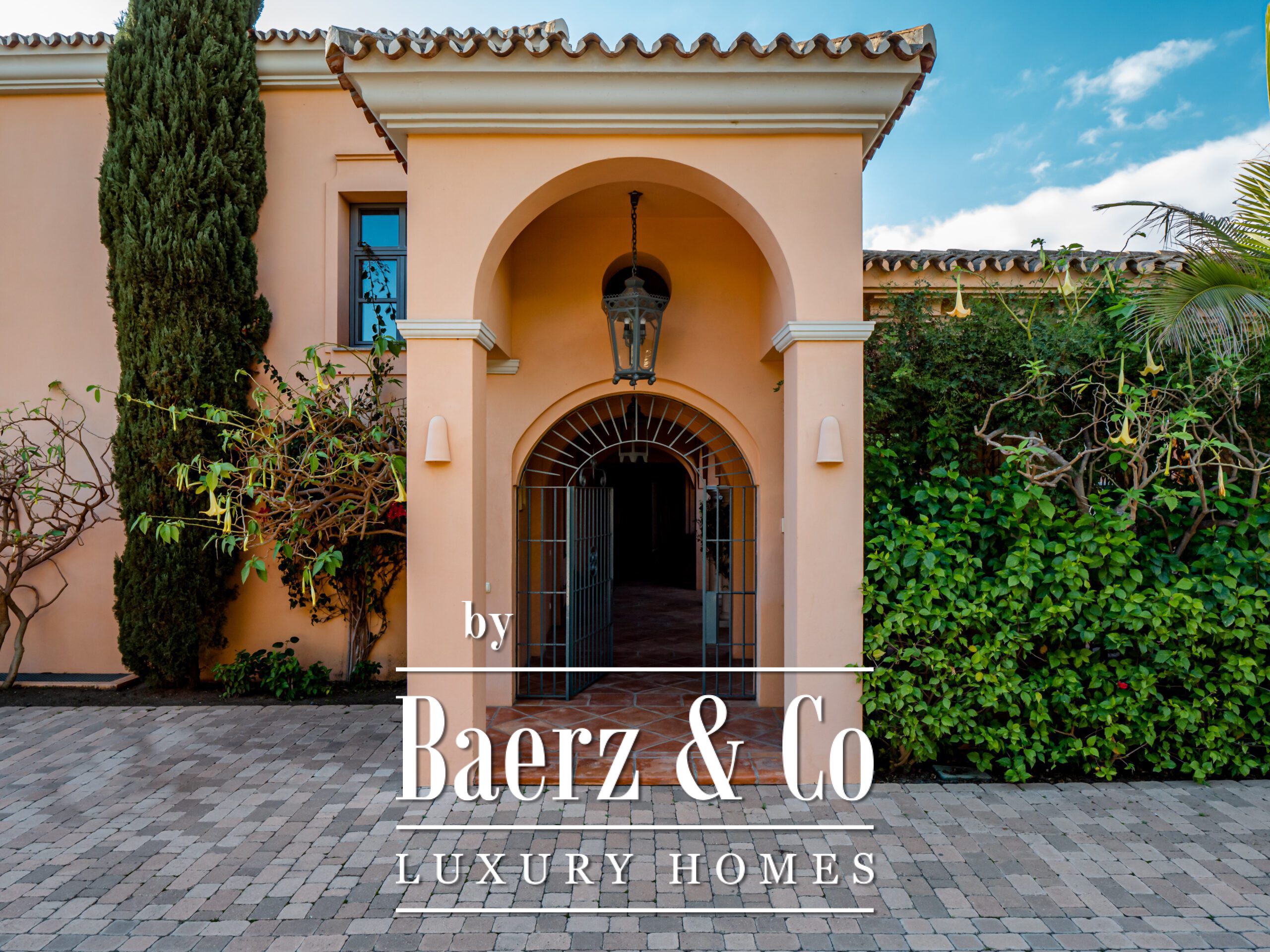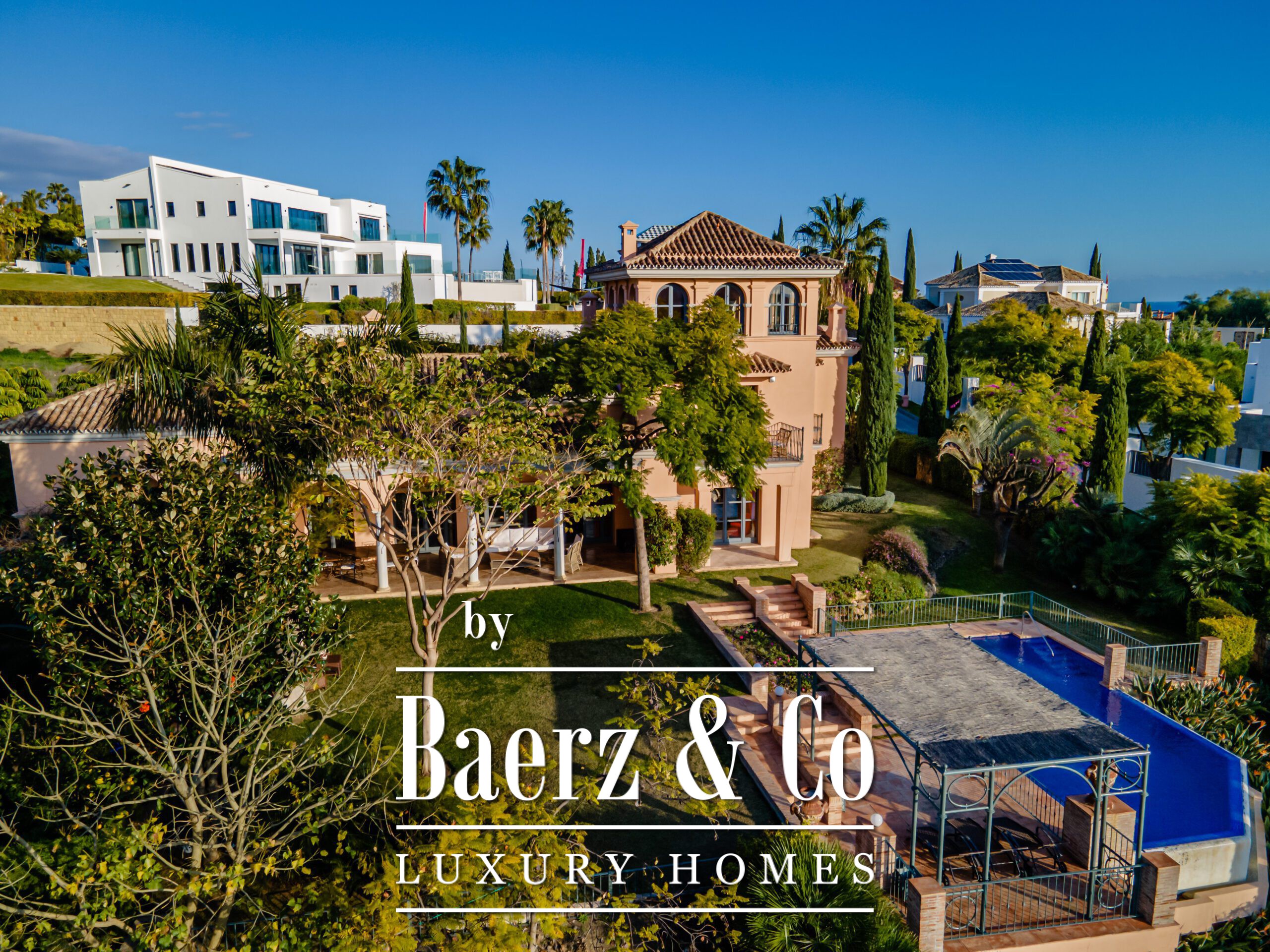 This beautiful Mediterranean-style luxury property for sale is situated in a prestigious area of the Costa del Sol, within exclusive Los Flamingos Golf Resort, Benahavis. It is located close to all facilities and amenities of the New Golden Mile, San Pedro and fabulous Puerto Banus, golf clubs, restaurants and beaches. Its location, amazing views, exquisite design and high-quality specifications make it an ideal home to enjoy the glorious Mediterranean lifestyle. Surrounded with Andalusian nature and similar high-end properties of Los Flamingos, the 4-level house of 1.017 m² is set on a large picturesque plot of 2,253 m². It is facing west and enjoys picture-perfect views to the subtropical gardens, beautifully landscaped greenery, hills and mountains, golf course, and Mediterranean Sea.