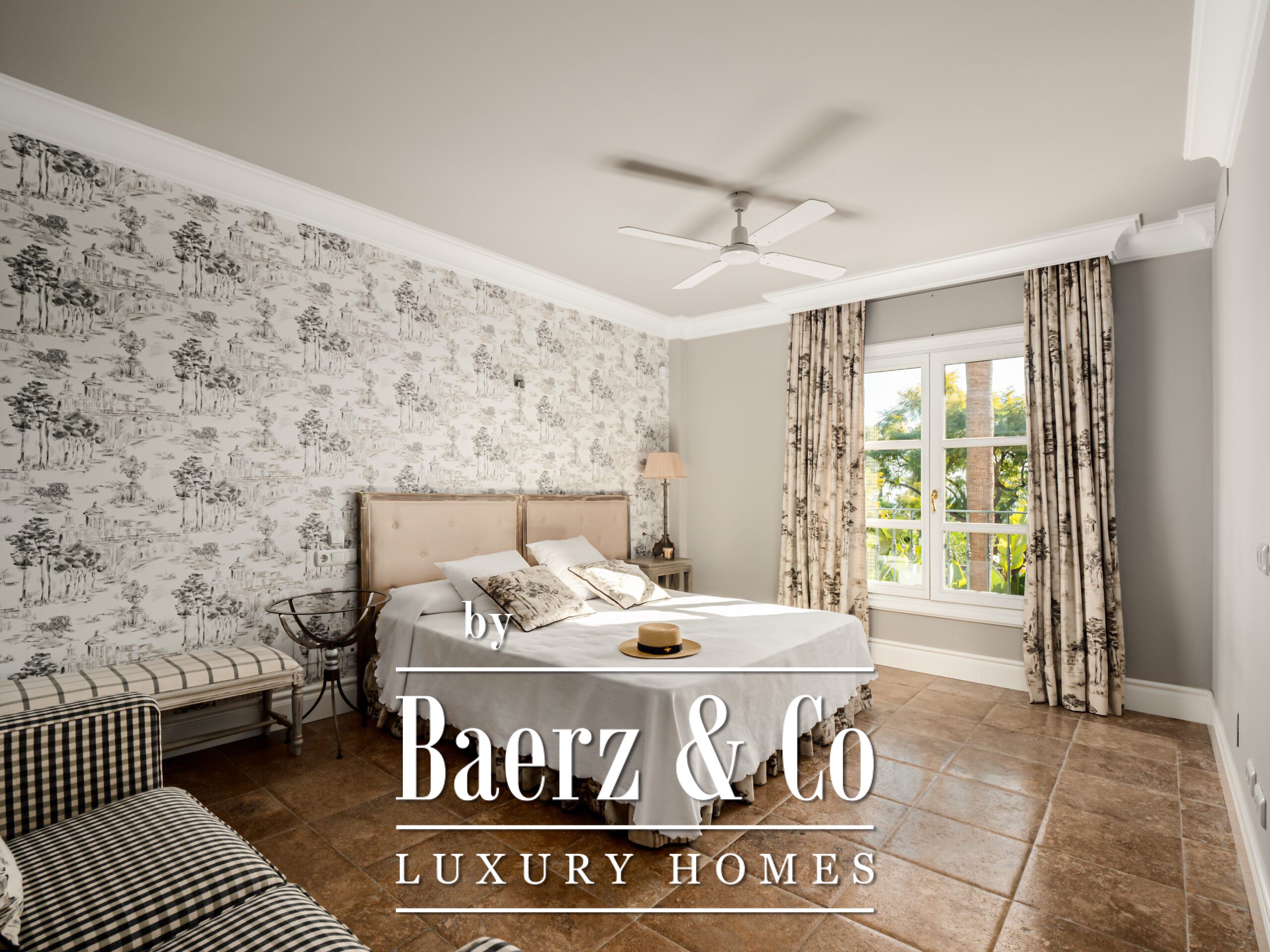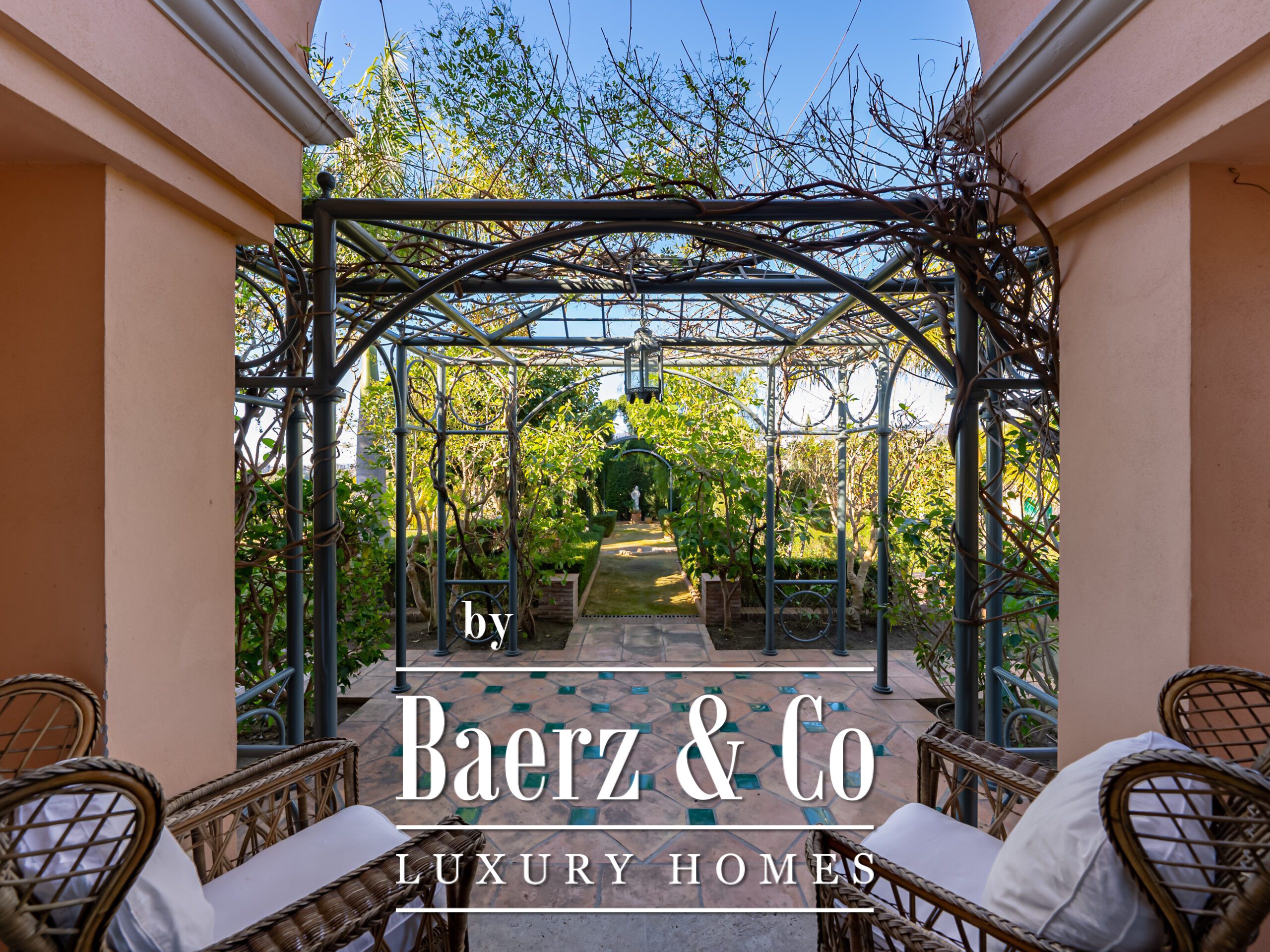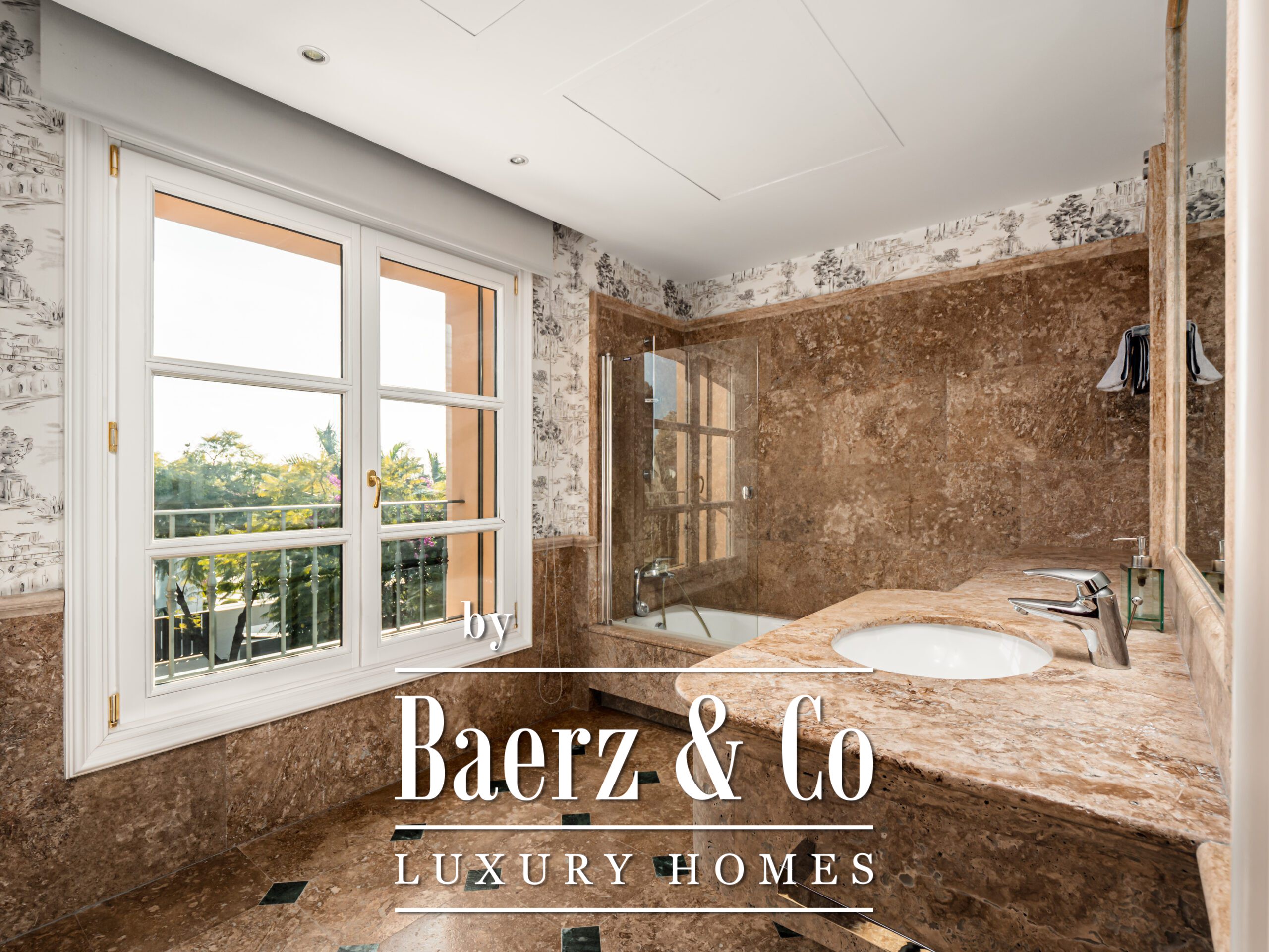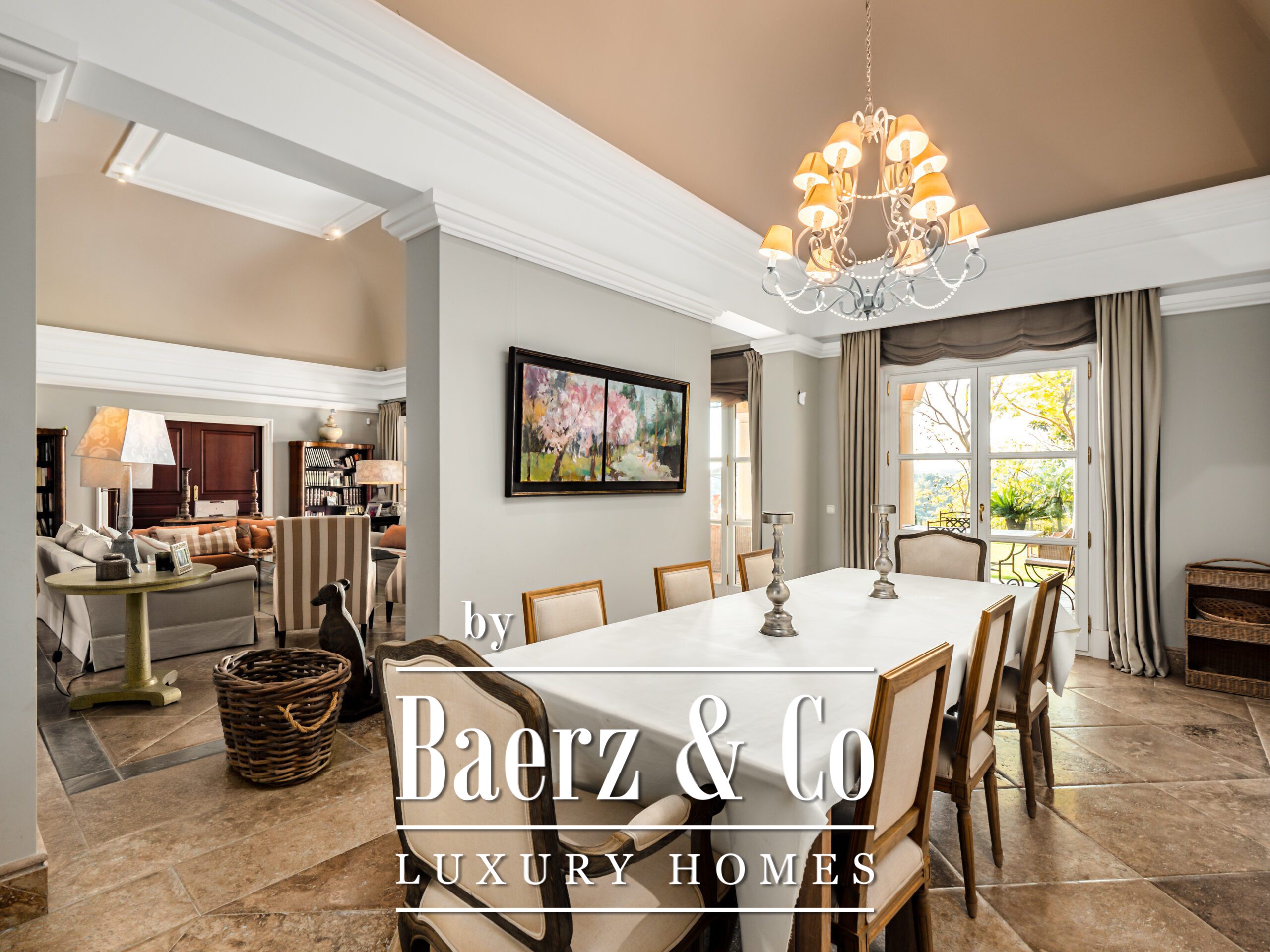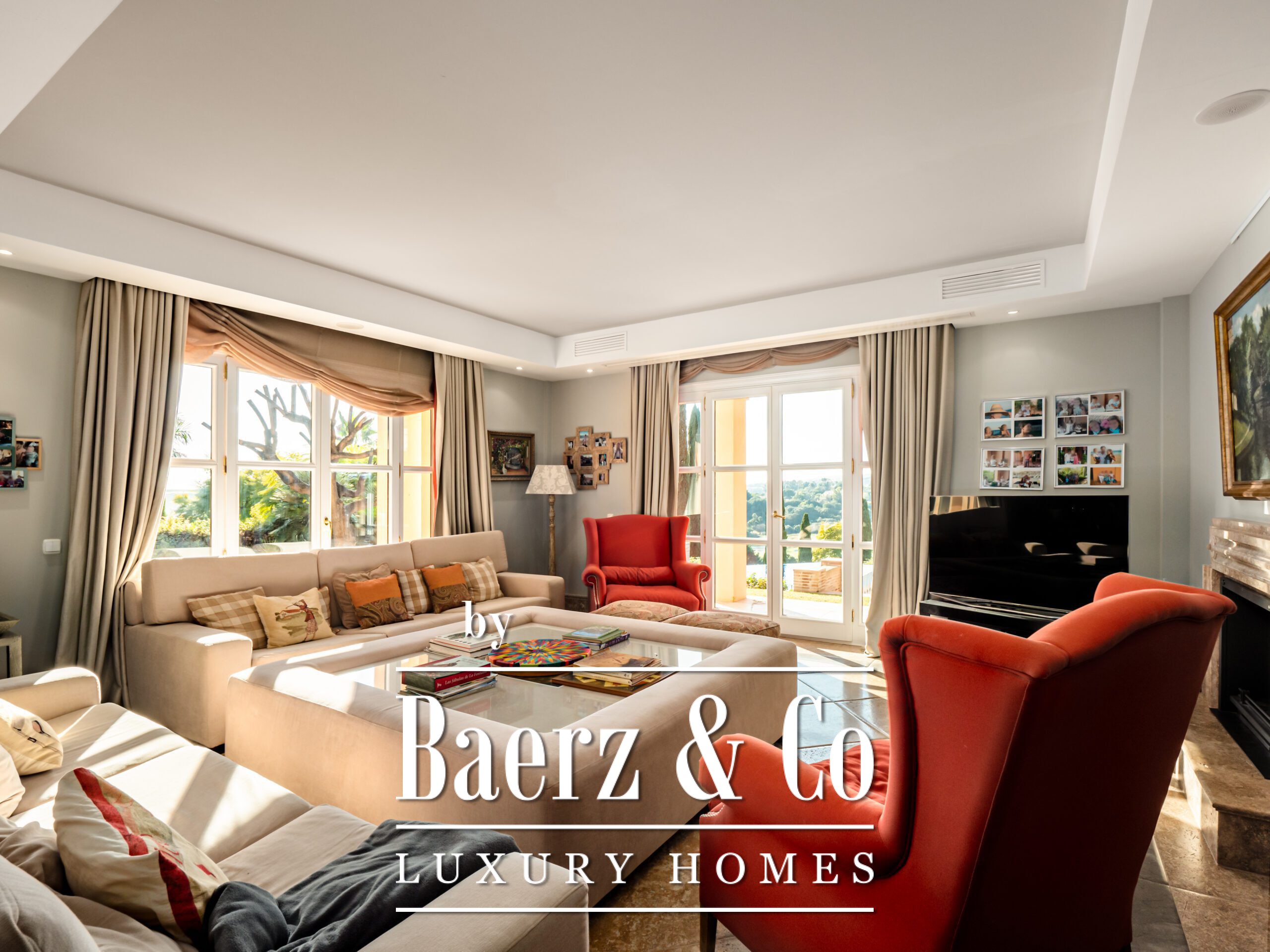 The spectacular mansion features an entrance hall, a timelessly elegant living room with a fireplace and a separate dining room, a fully fitted modern-style, black and white kitchen with a breakfast area, a pantry and laundry area, an office / library with another classic fireplace, a family room, 8 serene bedrooms (7 with en-suite bathrooms), 8 luxurious bathrooms and 1 guest toilet. The living areas of the house lead to the private balconies and wonderful terraces of 174 m² where you have enough space to relax, have BBQ and dine al fresco. At night, outdoor and landscape lighting makes the mansion and its territory look like a fairy-tale setting.