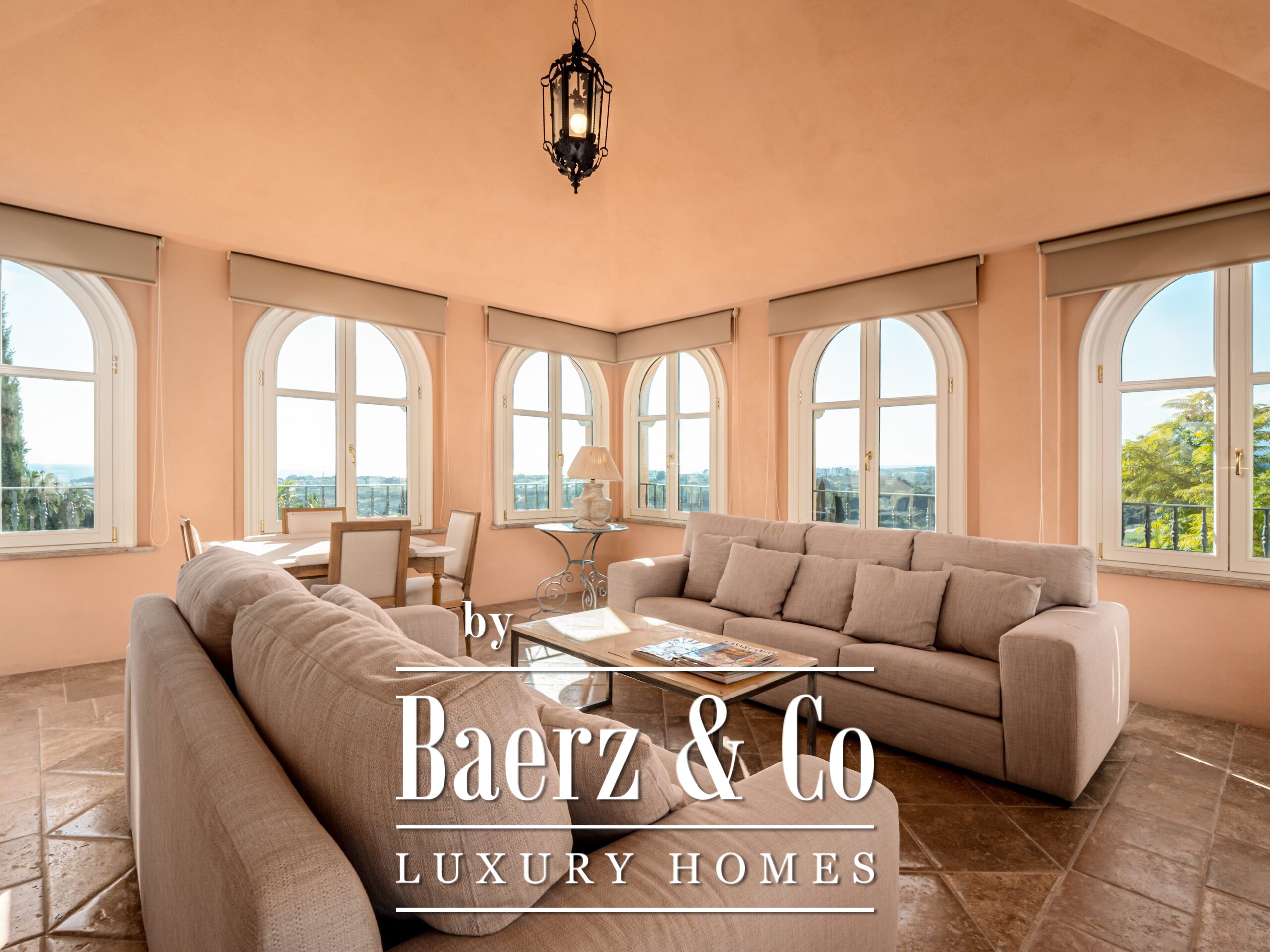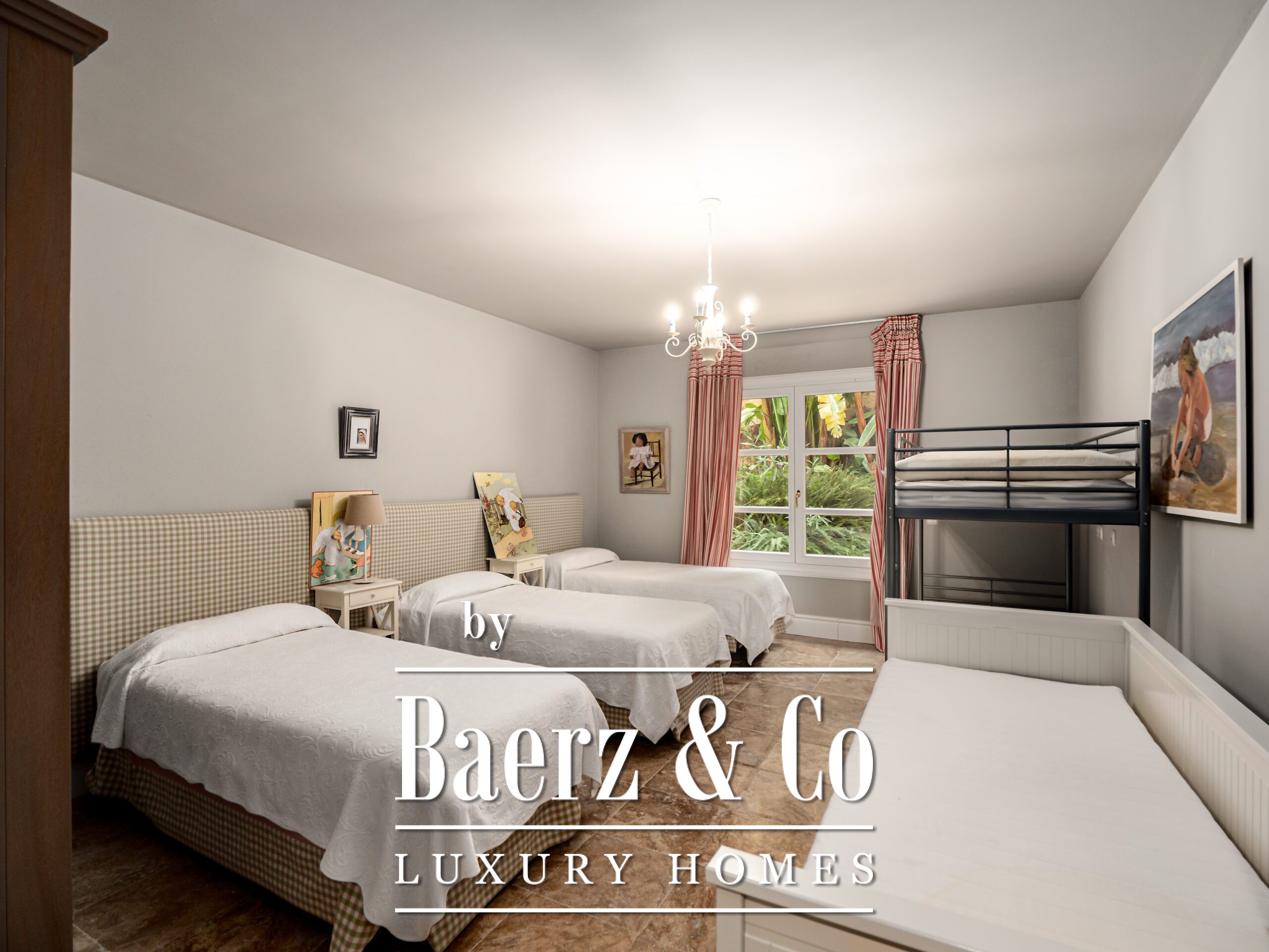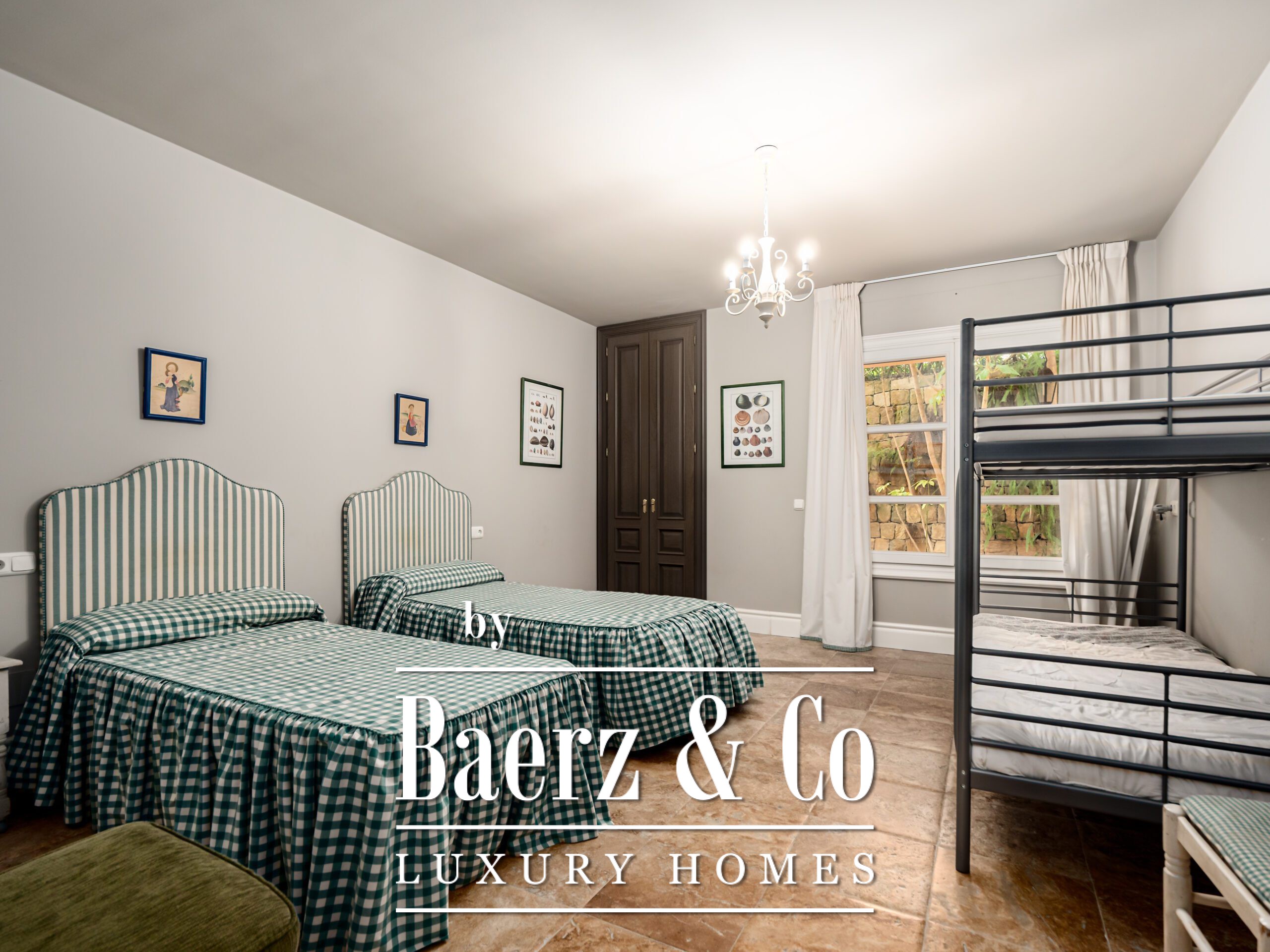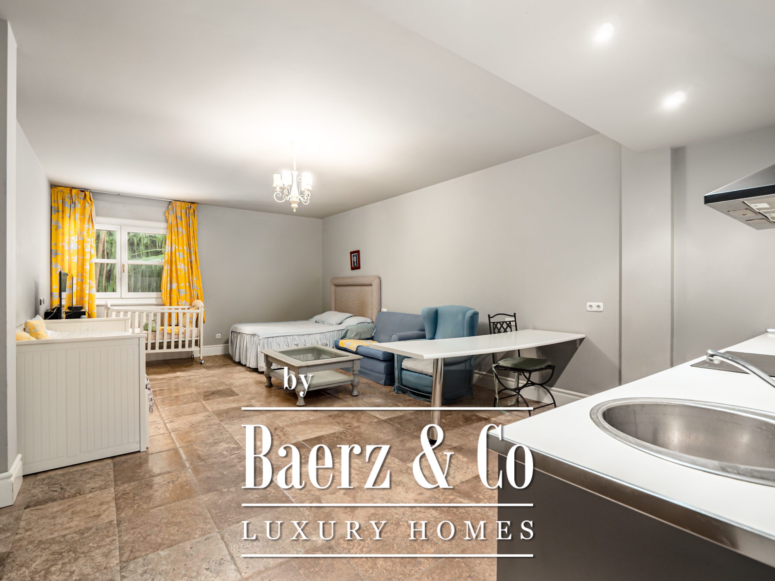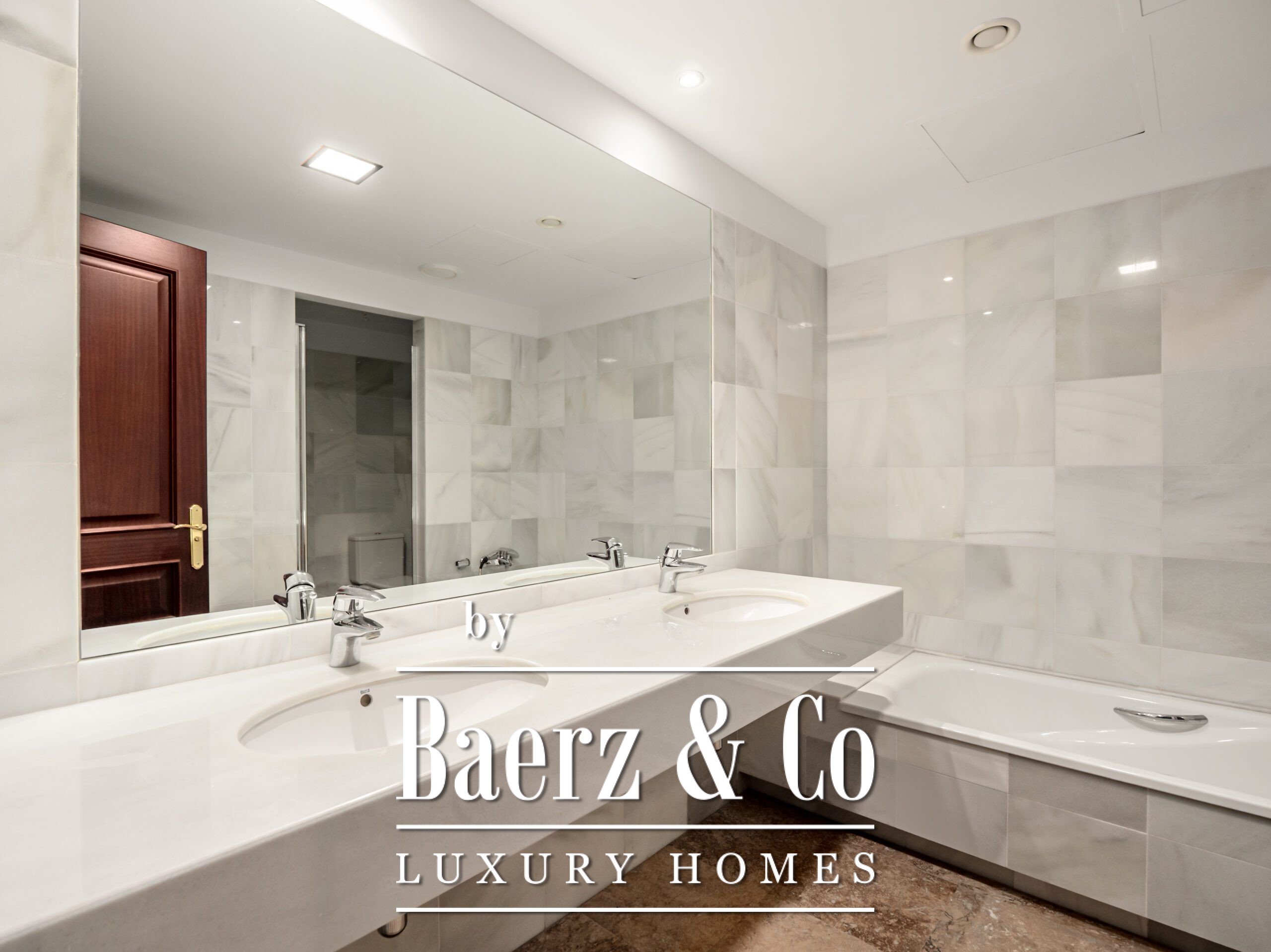 The spectacular mansion features an entrance hall, a timelessly elegant living room with a fireplace and a separate dining room, a fully fitted modern-style, black and white kitchen with a breakfast area, a pantry and laundry area, an office / library with another classic fireplace, a family room, 8 serene bedrooms (7 with en-suite bathrooms), 8 luxurious bathrooms and 1 guest toilet. The living areas of the house lead to the private balconies and wonderful terraces of 174 m² where you have enough space to relax, have BBQ and dine al fresco. At night, outdoor and landscape lighting makes the mansion and its territory look like a fairy-tale setting.